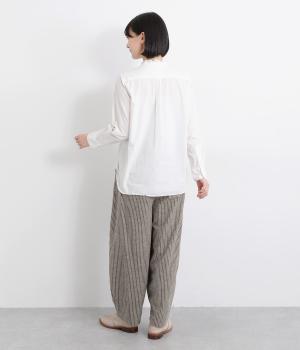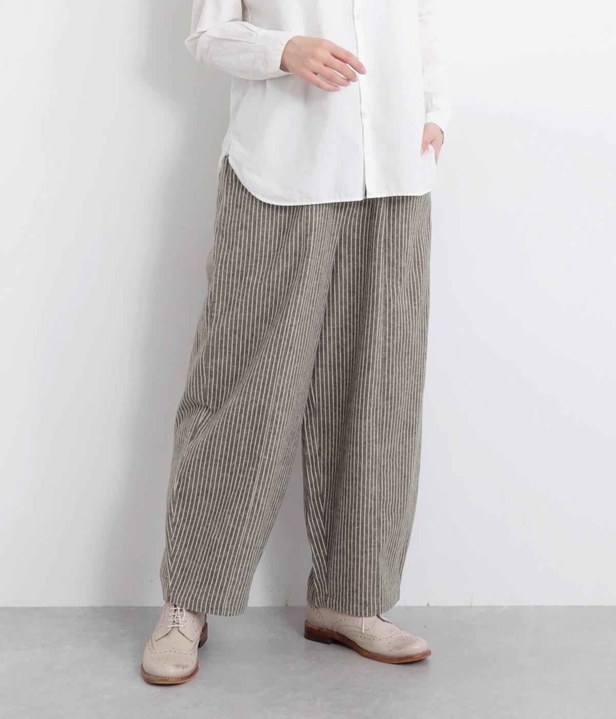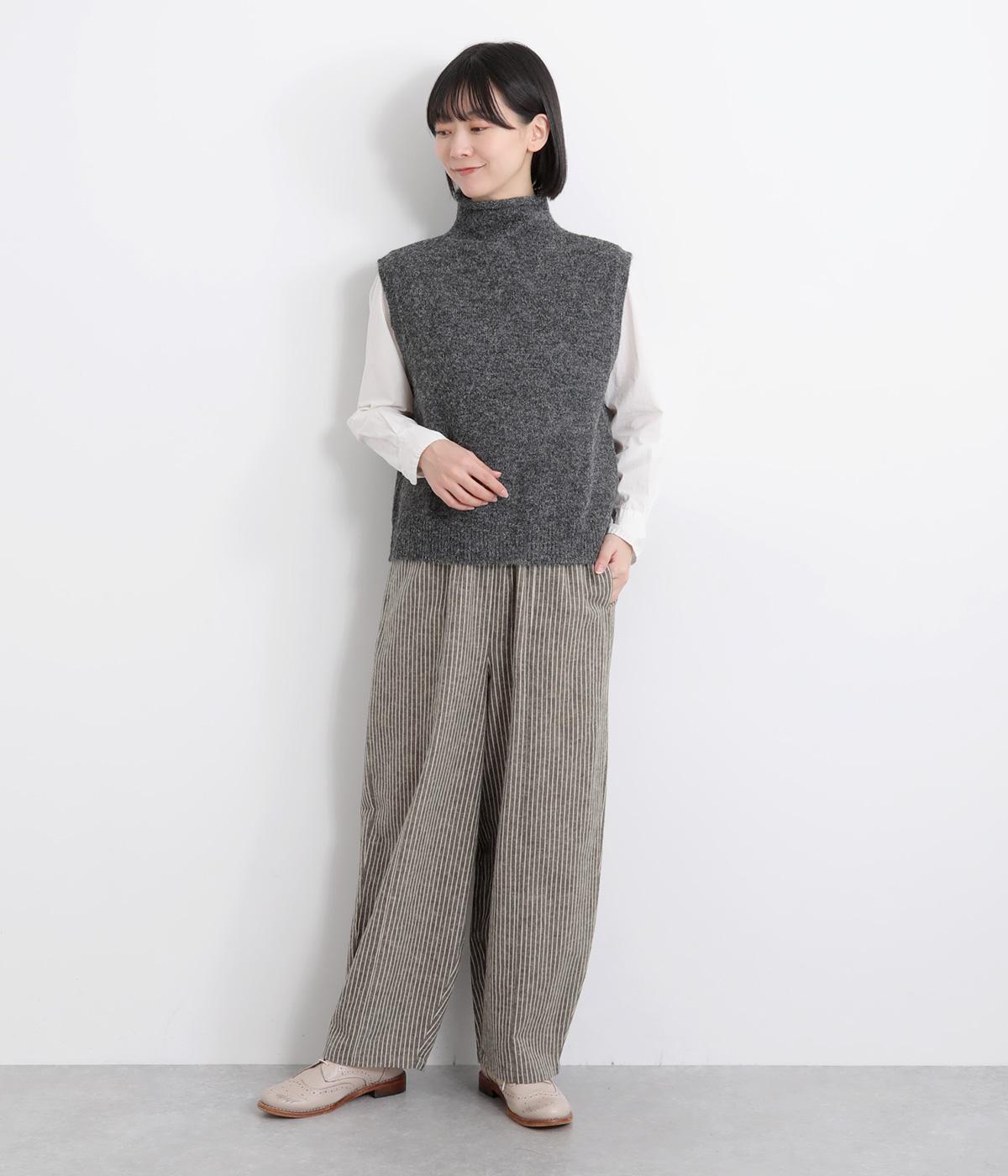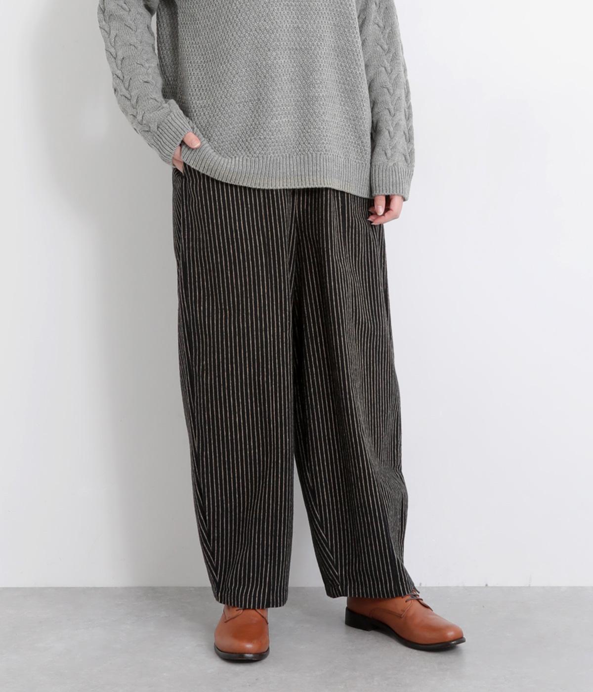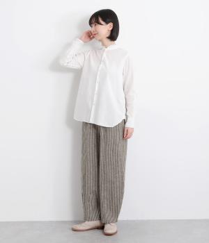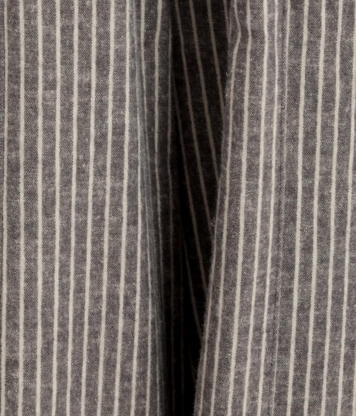 やわらかな綿麻生地の表面にほんのりと起毛をほどこして、秋冬ムードを高めました。落ち着いた色合いのストライプ柄がきちんと感を演出します。