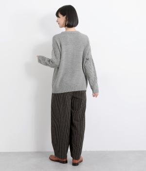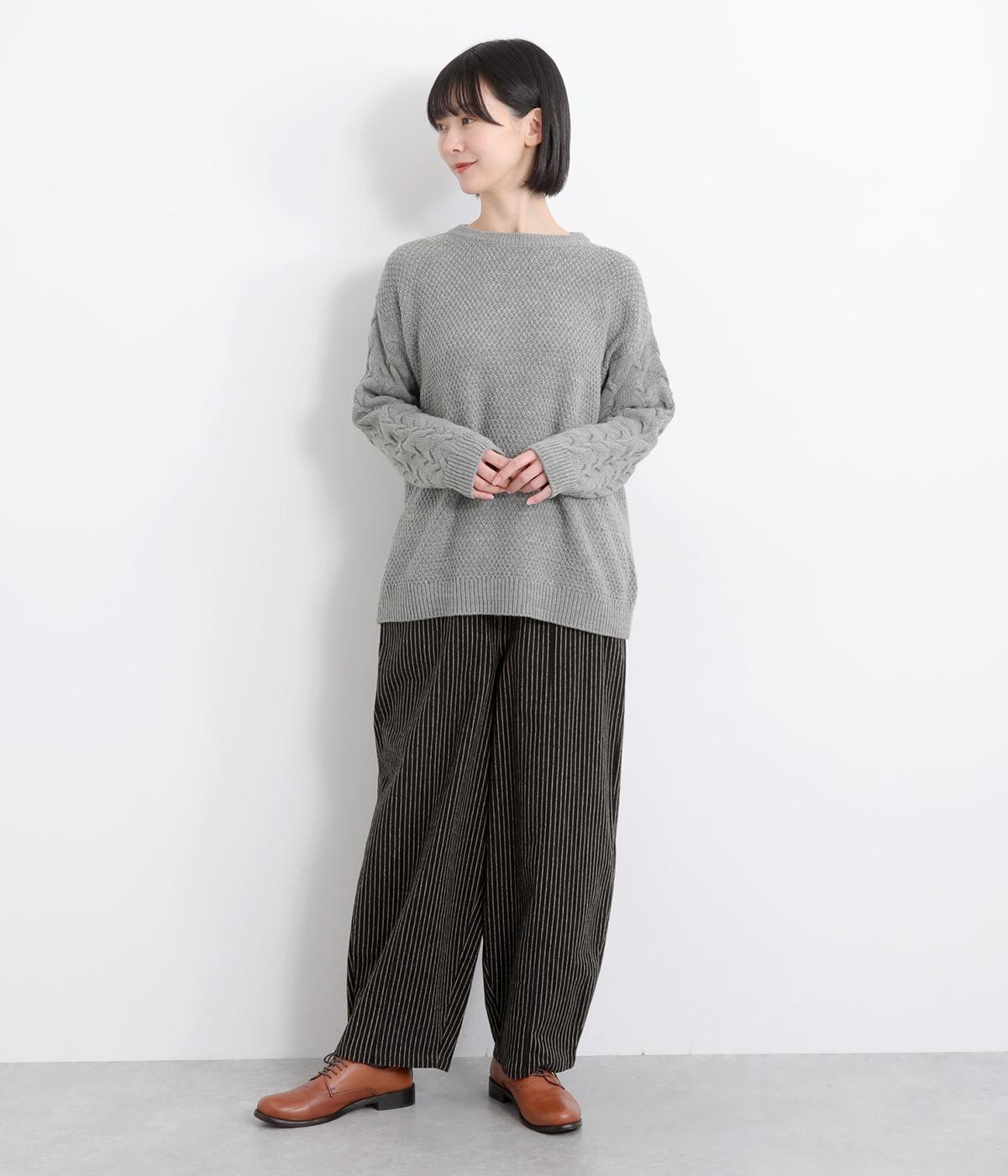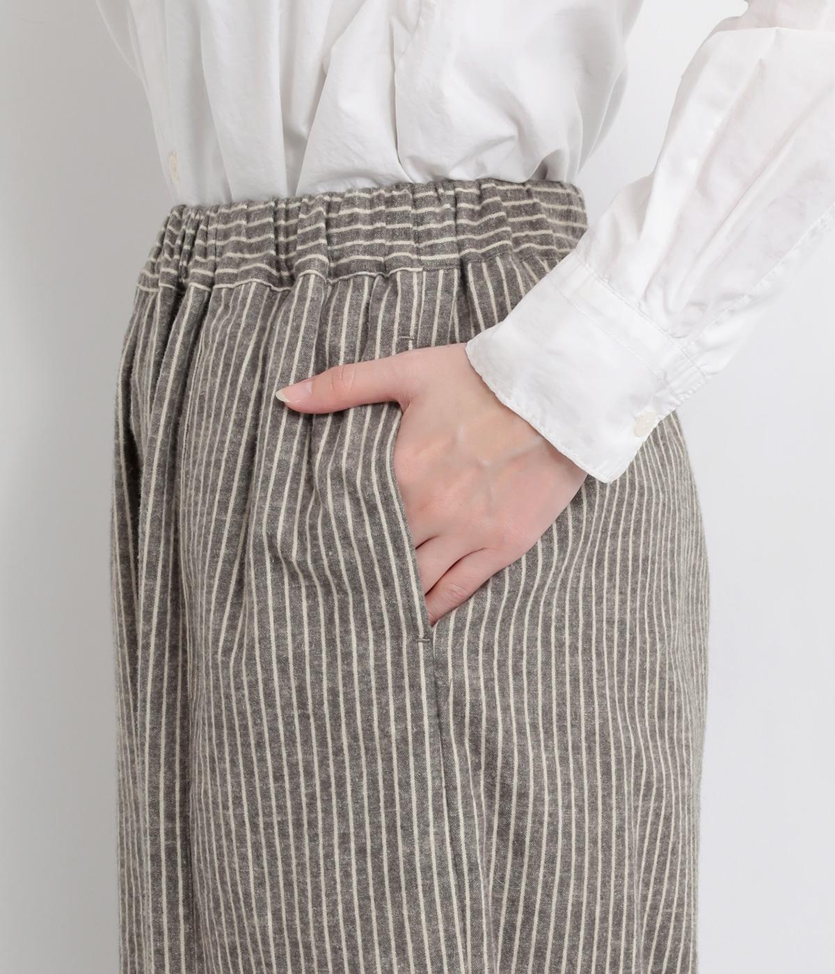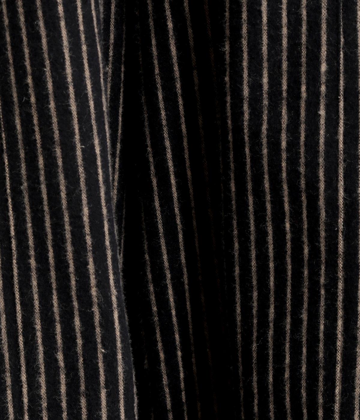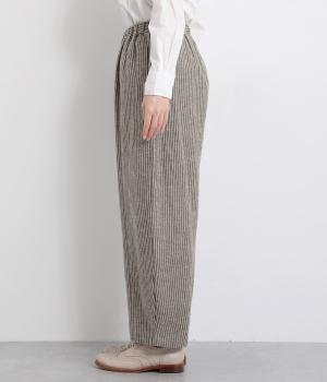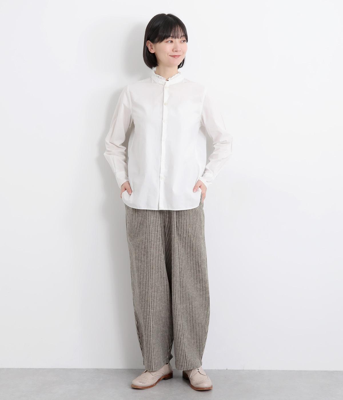 やわらかな綿麻生地の表面にほんのりと起毛をほどこして、秋冬ムードを高めました。落ち着いた色合いのストライプ柄がきちんと感を演出します。