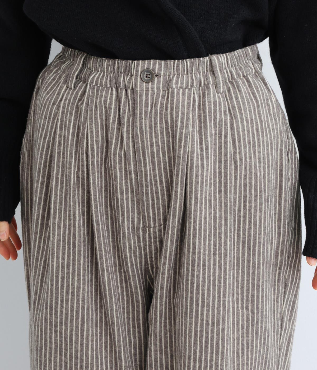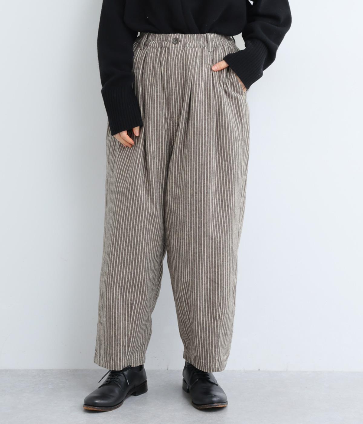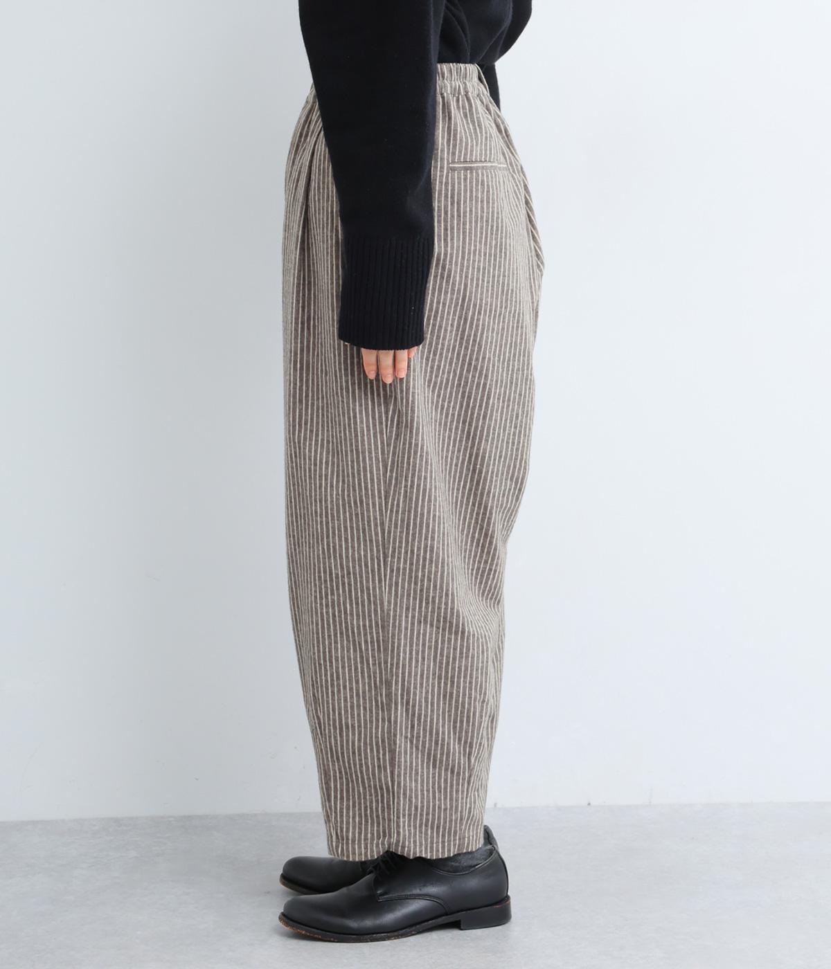 ほわっとした起毛感にゆったりとしたバルーンシルエットが独特のやわらかな雰囲気を生むパンツ。ラフだけど手抜きに見えないこなれ感があり、シンプルなトップス合わせでもさまになります。前ファスナーにウエストゴム仕様。