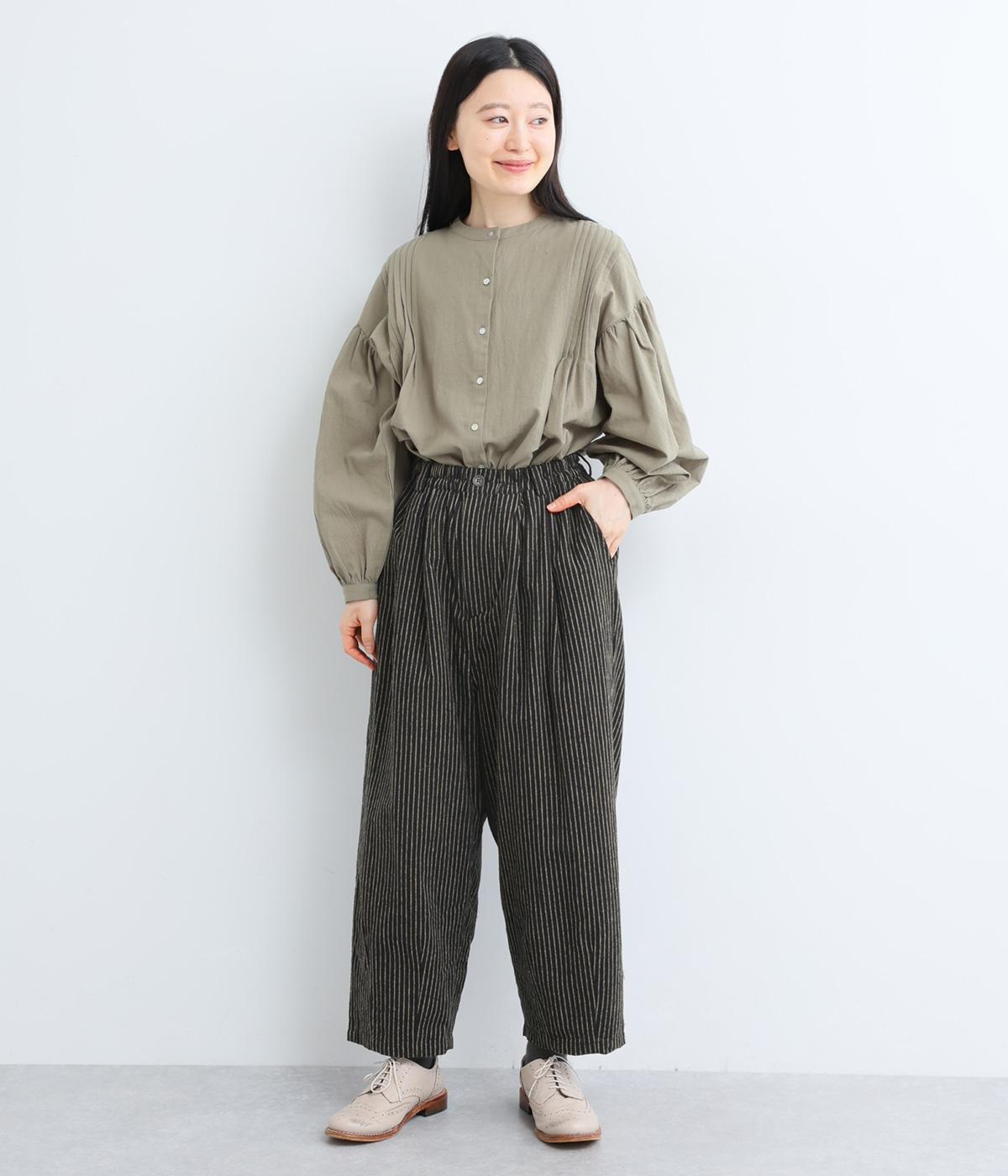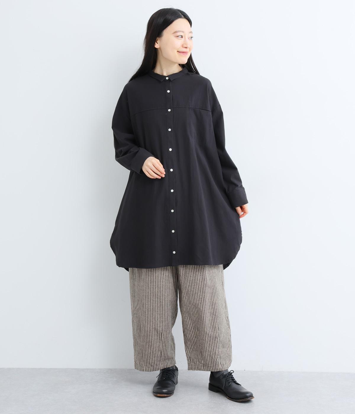 起毛をかけることでいつものストライプとまたちがった印象を与えるリネンコットン生地を使用。厚手すぎないので着用しやすく、裏面はさらっとしていて肌あたりも快適。