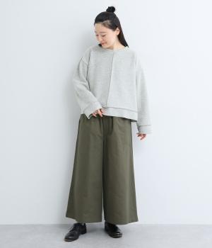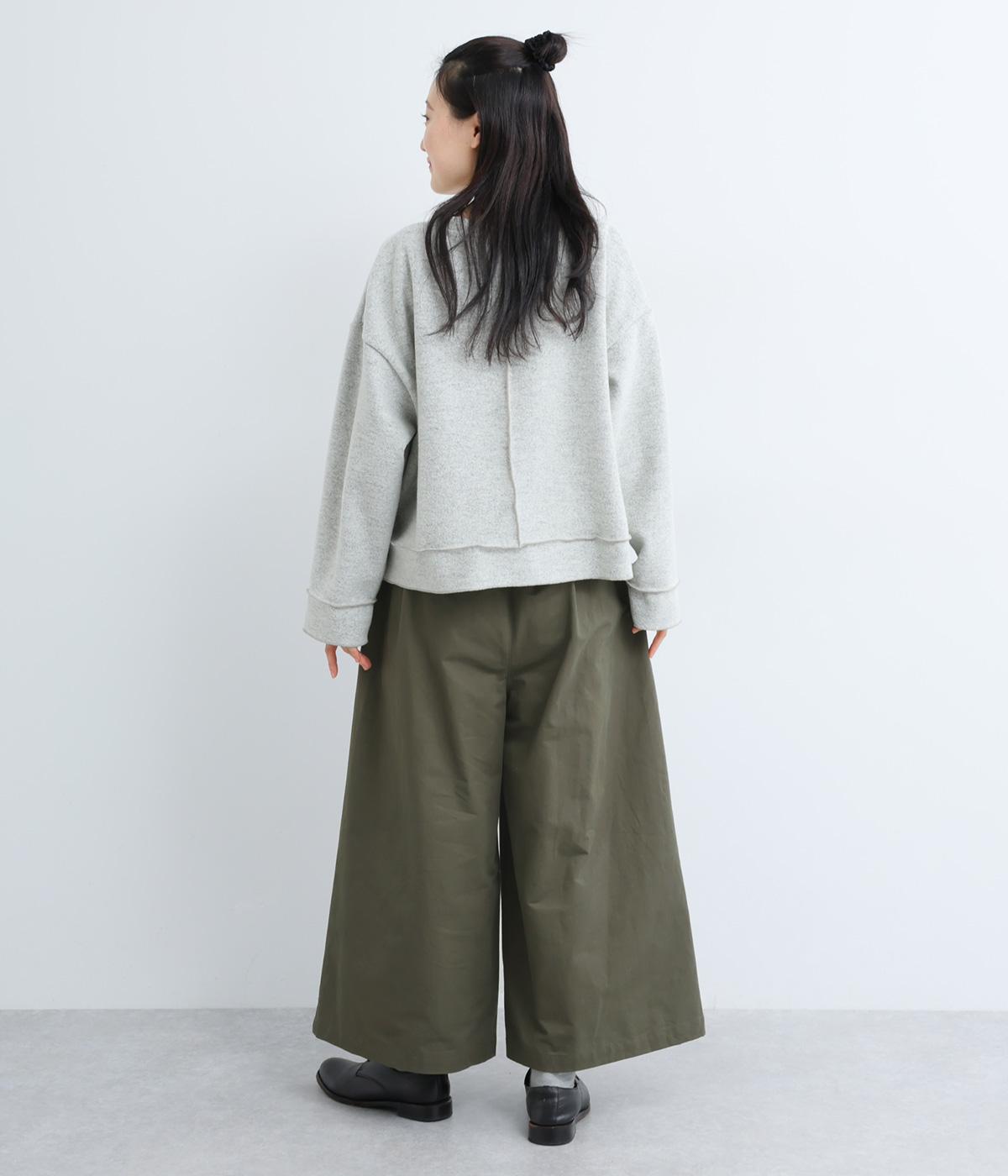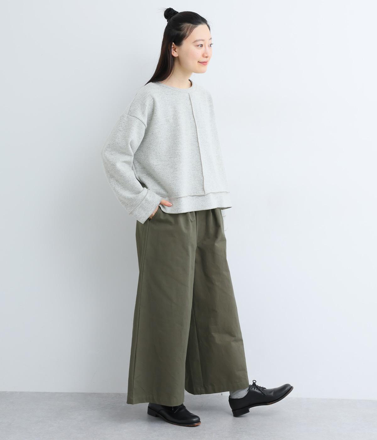 スカート見えするゆったり感が特徴的なワイドパンツ。ハリのある生地がシルエットをきれいに描き、ボリューム感とすっきり見えを両立。ウエストは安定感のある太平ゴムに、内紐入りでフィット感や腰位置の微調整も可能。