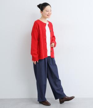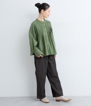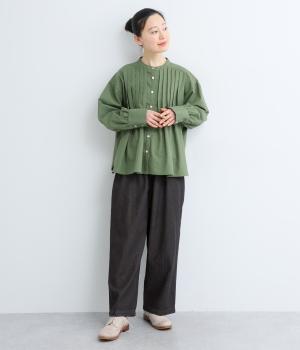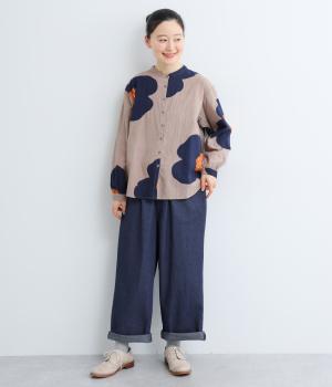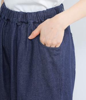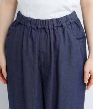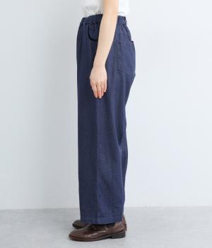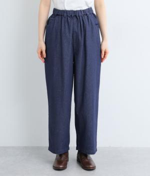 腰まわりはゆとりを持たせながらもすっきりまとめたストレートパンツ。さまざまなトップスに合わせやすく、レイヤードスタイルなどマルチに活躍します。ウエストはフィット感のある総平ゴムに内紐入りで微調整も可能。