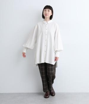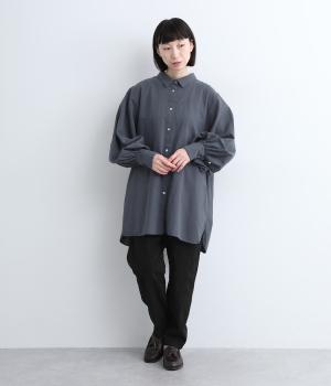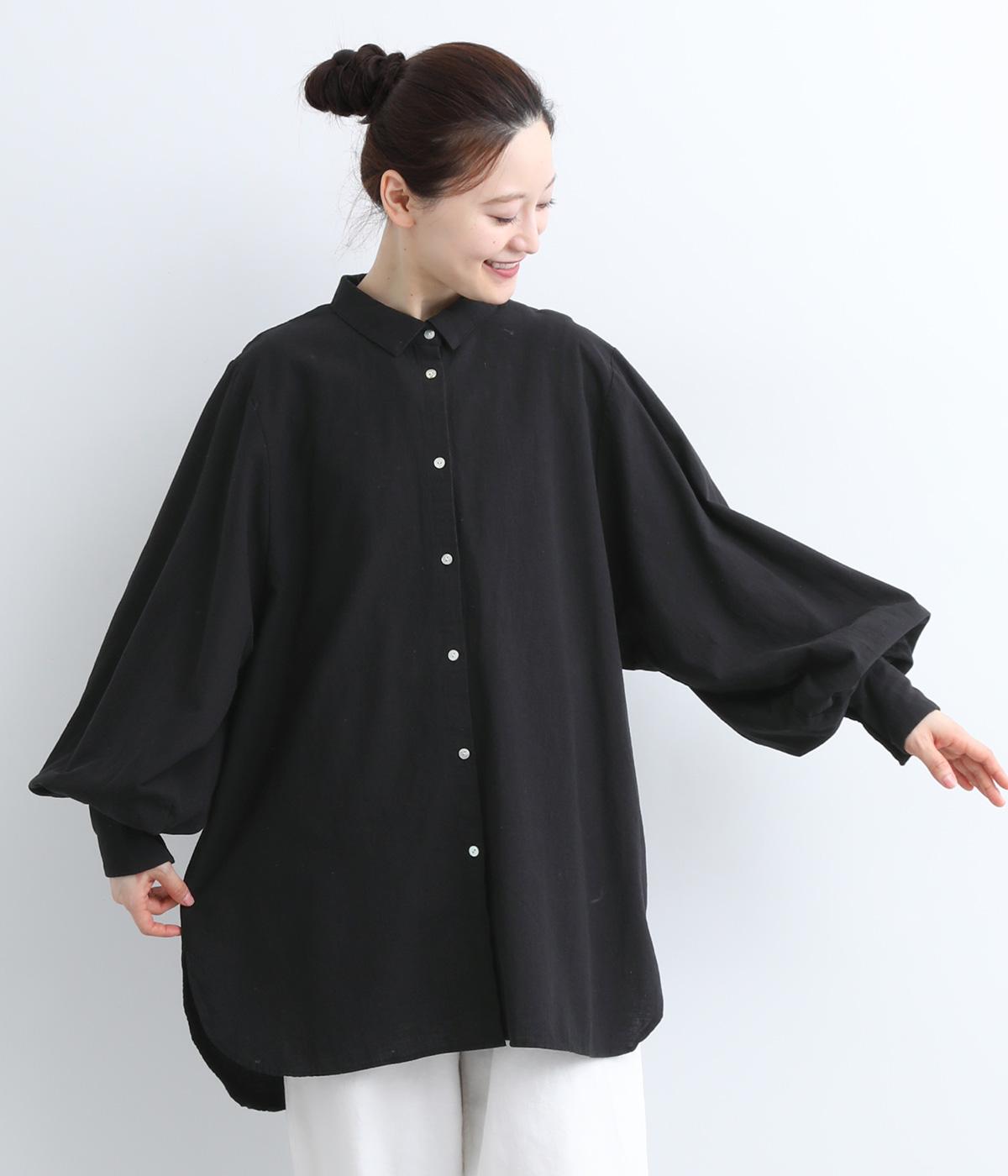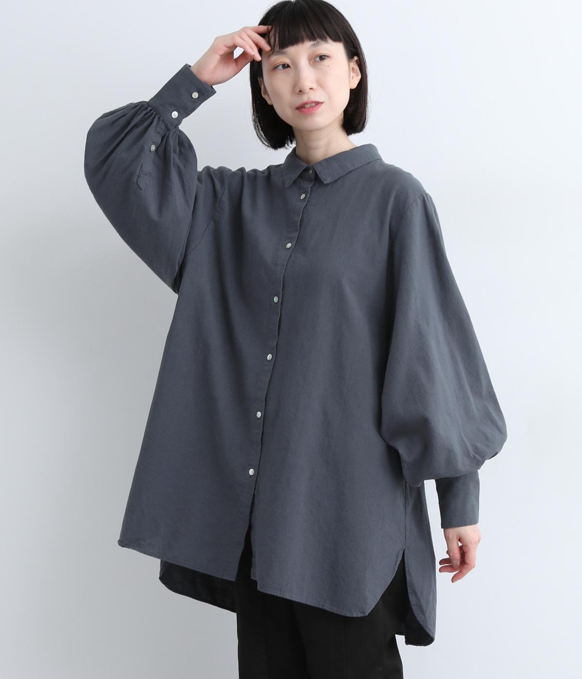 シンプルなディテールゆえに際立つバルーンスリーブが、着映えを叶えるシャツブラウス。スリットの入ったラウンドヘムが、さらに動きを持たせてくれます。デザインはややモードながら、お尻まで隠れるゆったりとしたフォルムで、大人カジュアルに着用いただけます。
