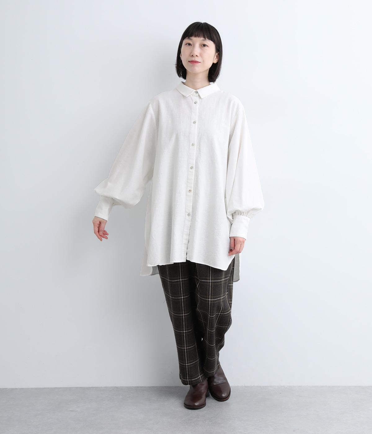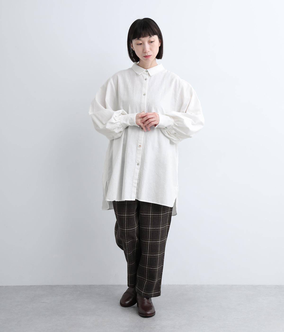 リネンらしいナチュラルな風合いながら、コットン混でやわらかさも維持した混紡素材。ややハリのある質感だから、ふわっと広がるボリュームスリーブが美しいシルエットを実現。