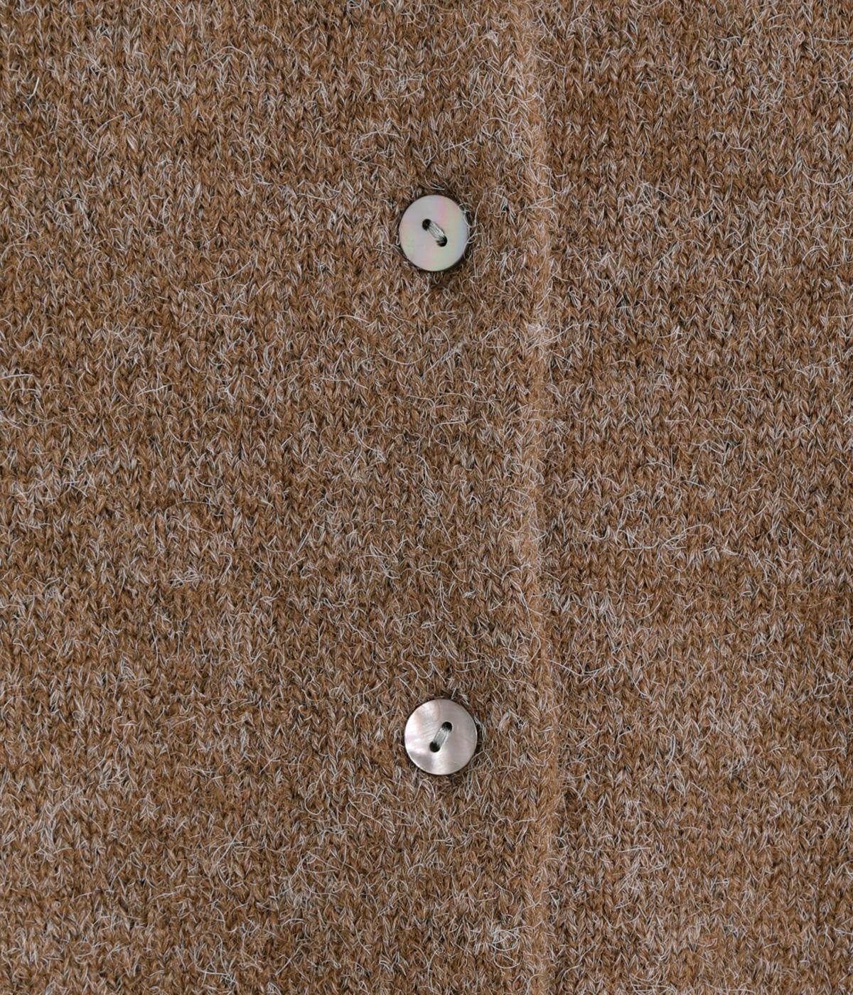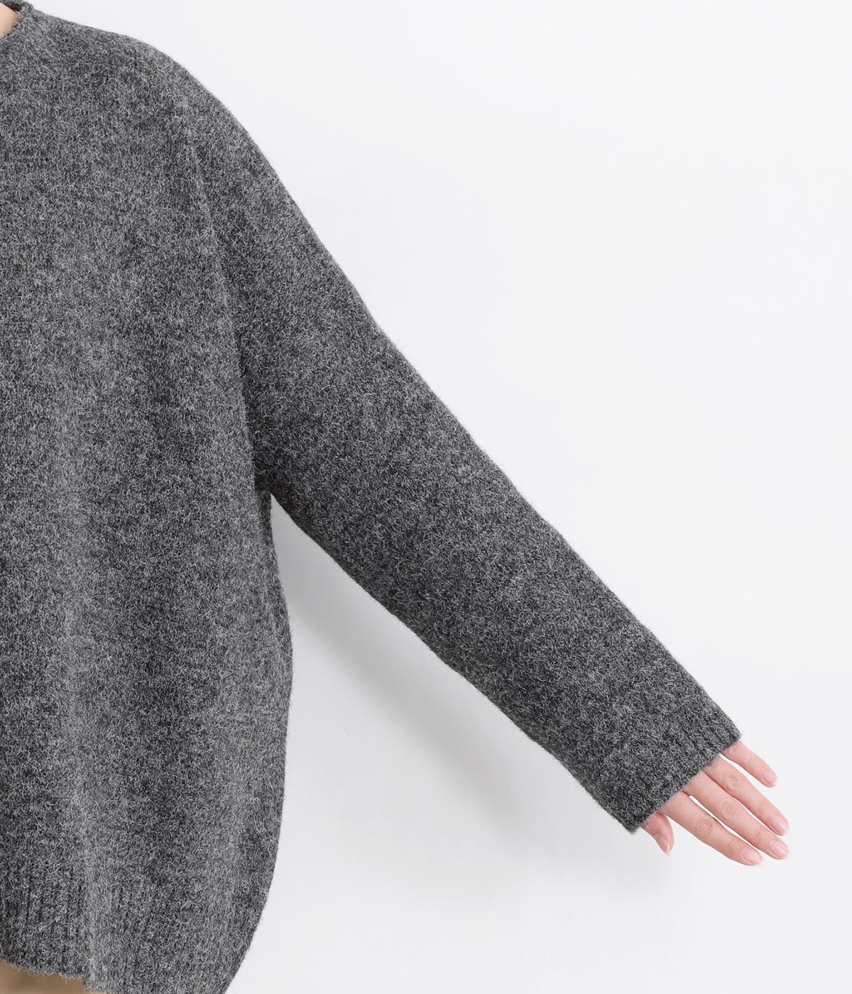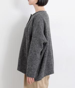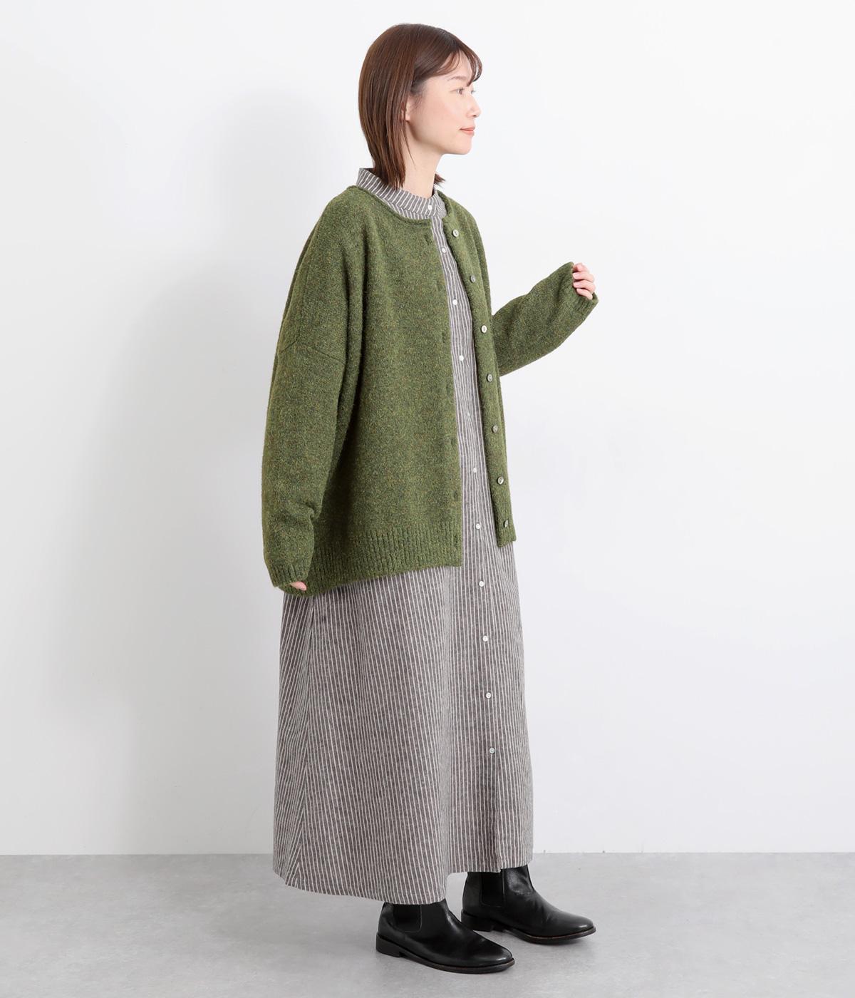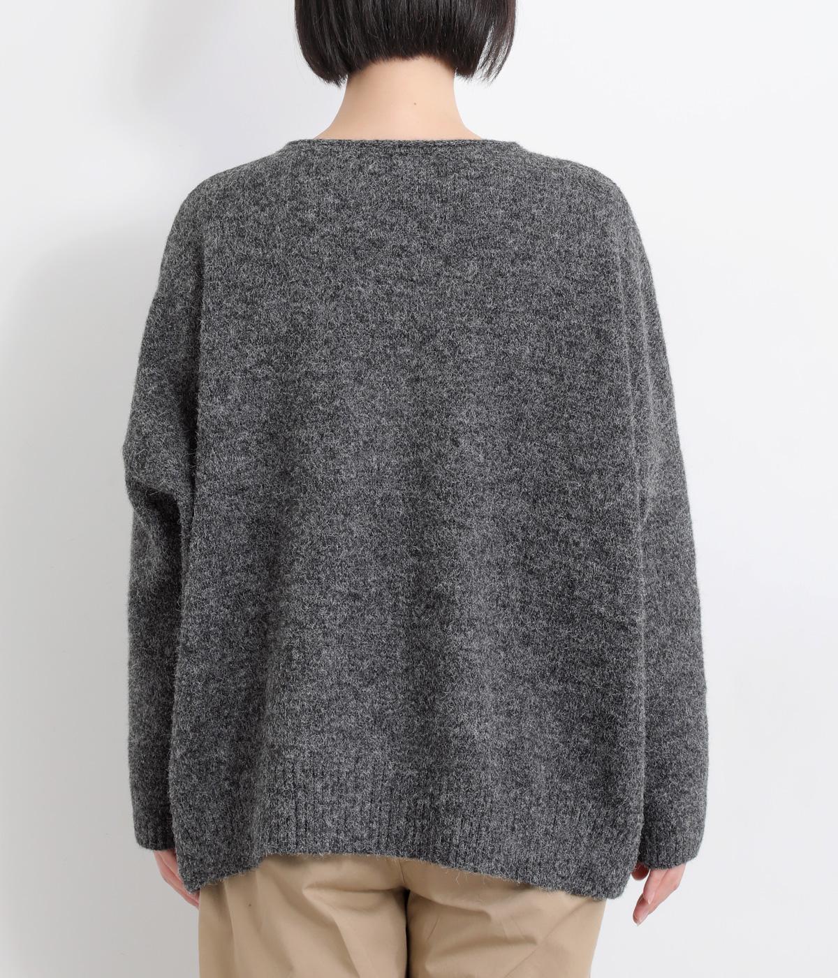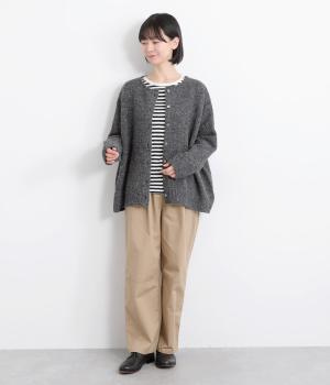 チクチクしにくく、ふんわりとやわらかな風合いが特徴のウール混ニットを使用しました。ほどよい肉厚であたたかく、ライトアウターとしても重宝します。