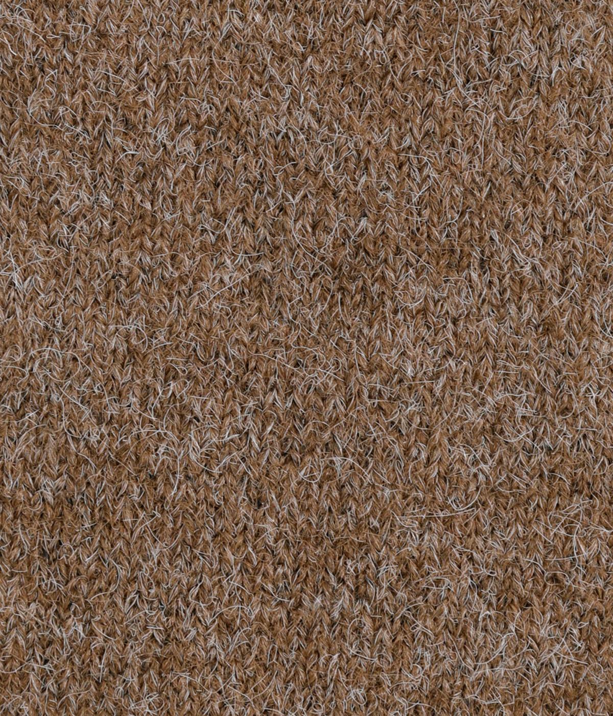 チクチクしにくく、ふんわりとやわらかな風合いが特徴のウール混ニットを使用しました。ほどよい肉厚であたたかく、防寒対策にも一役かってくれます。