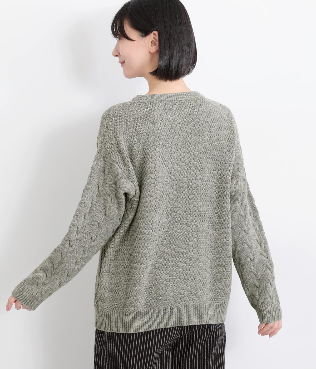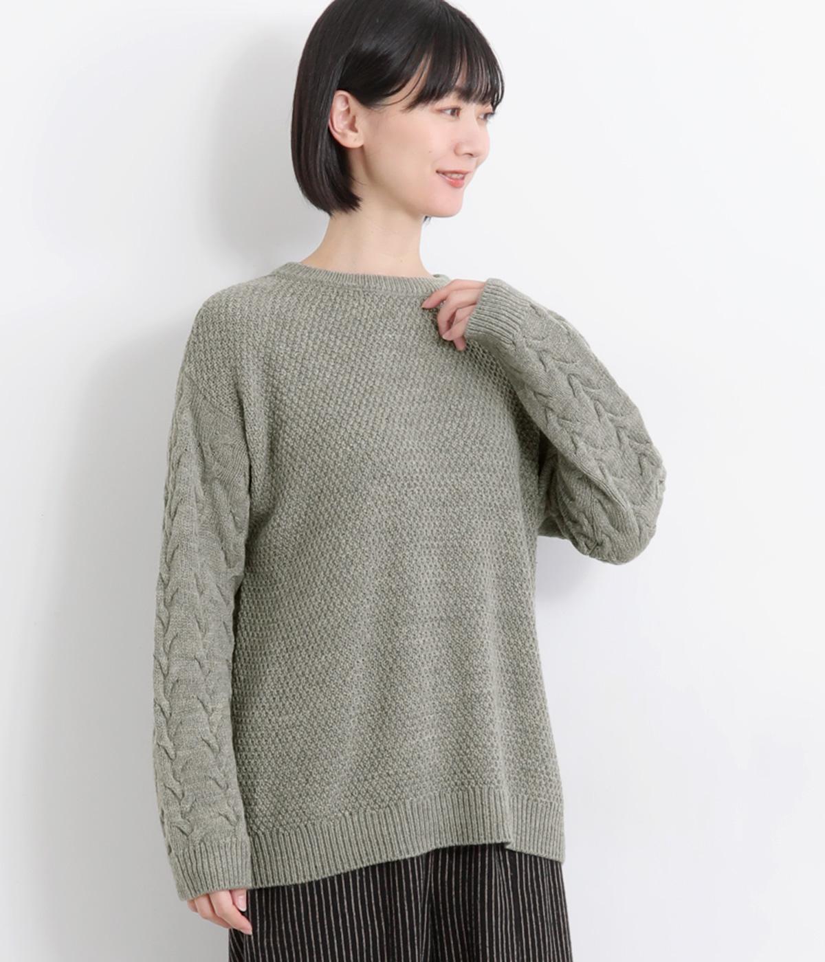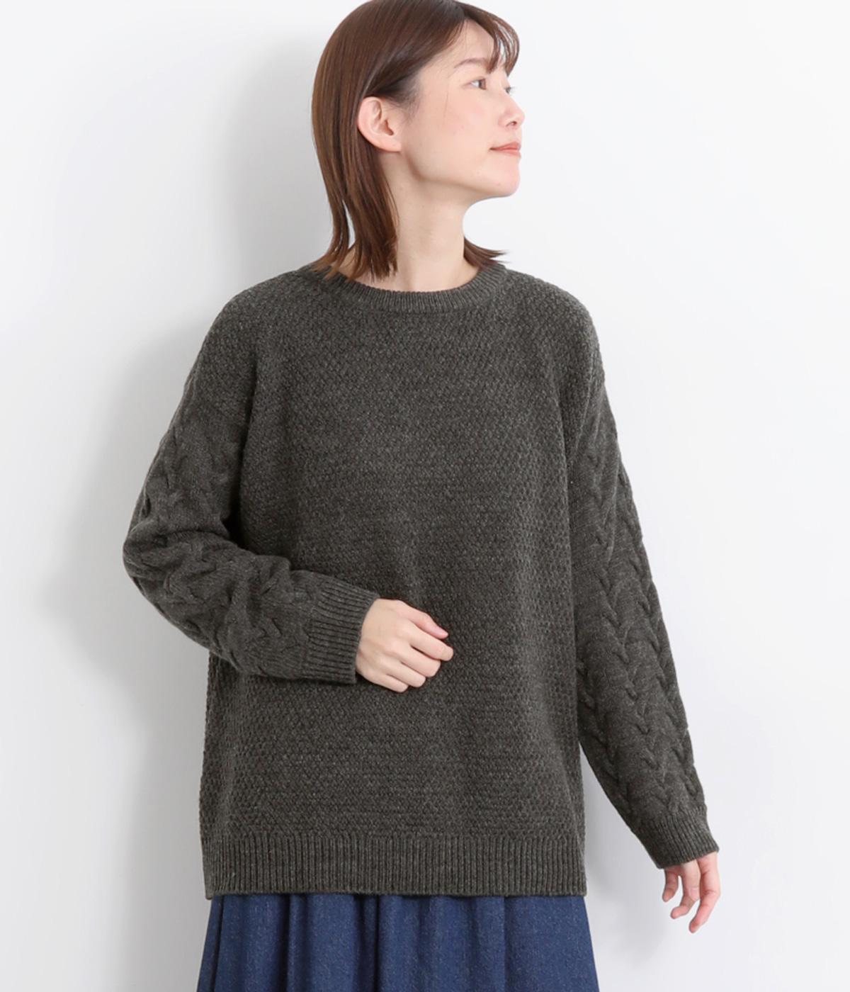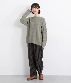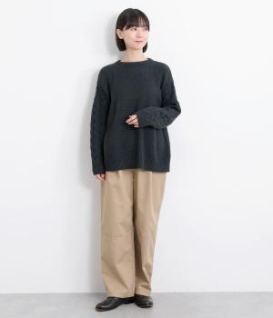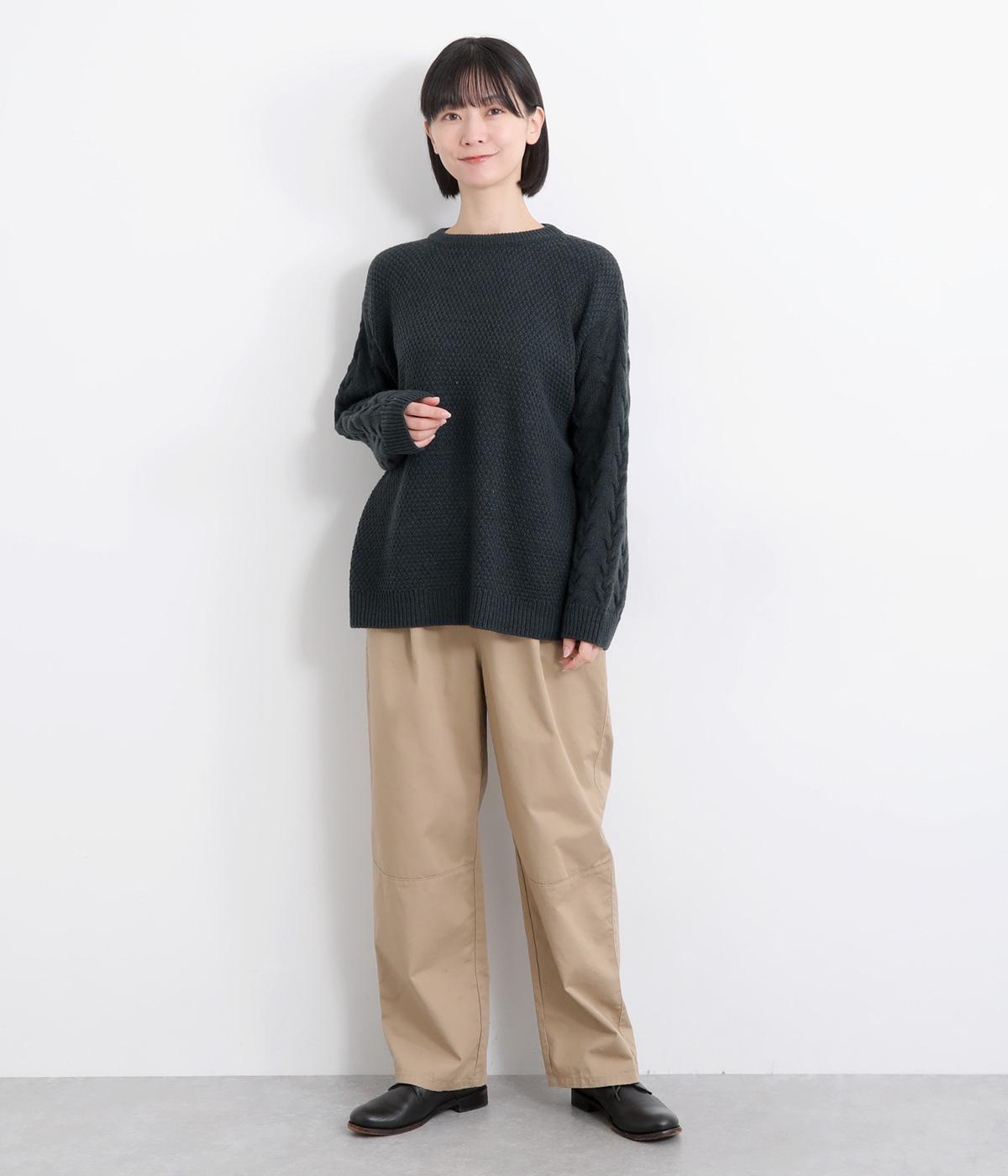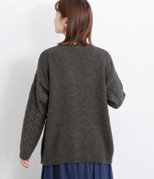 編み柄を切り替えた表情豊かなニットプルオーバーです。厚すぎない編み地と、大きすぎないシルエットが大人かわいい装いを演出します。カジュアルなパンツやスカートとも相性抜群です。