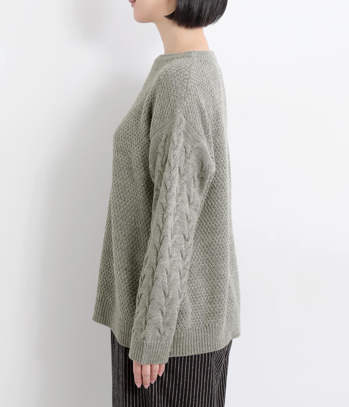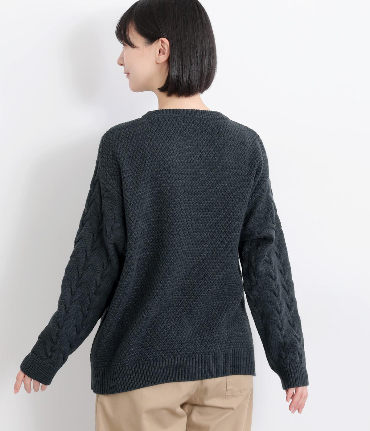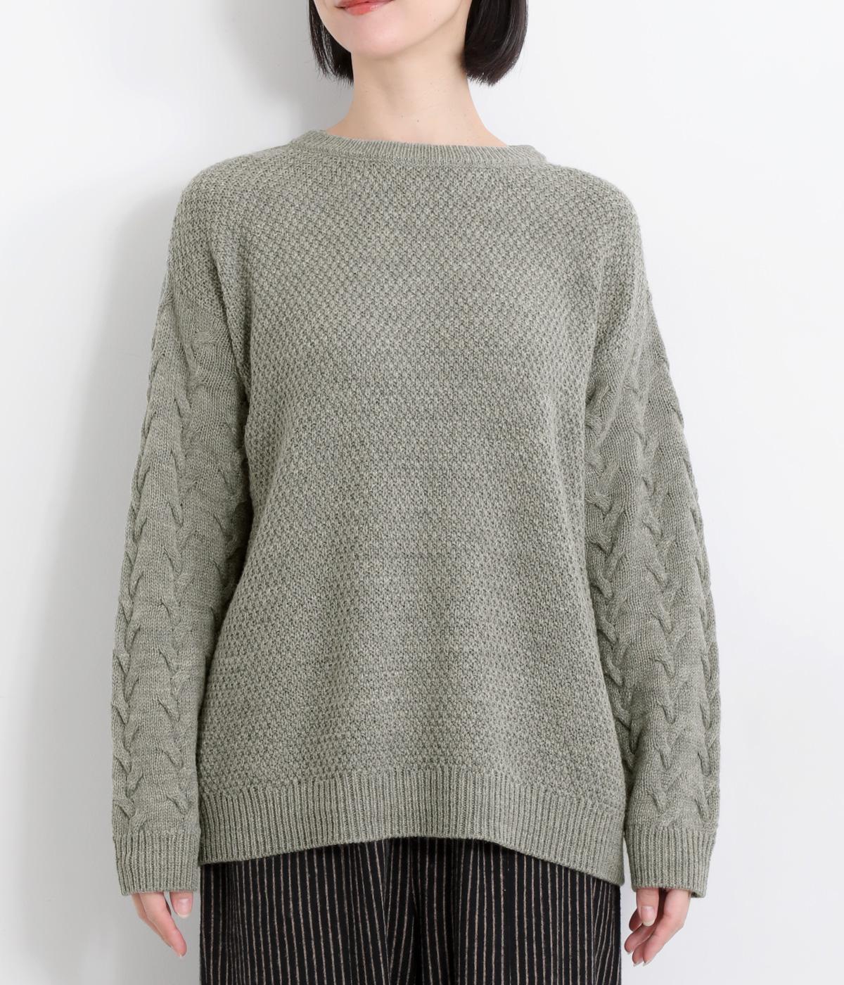 編み柄を切り替えた表情豊かなニットプルオーバーです。厚すぎない編み地と、大きすぎないシルエットが大人かわいい装いを演出します。カジュアルなパンツやスカートとも相性抜群です。