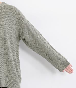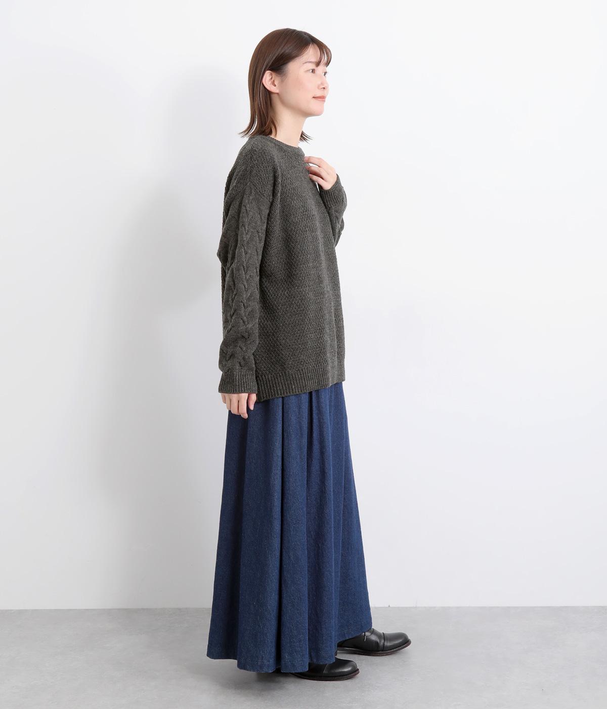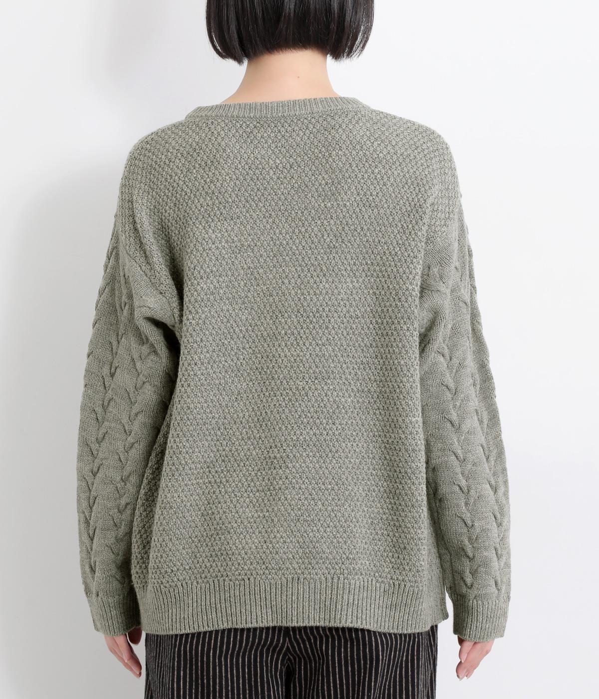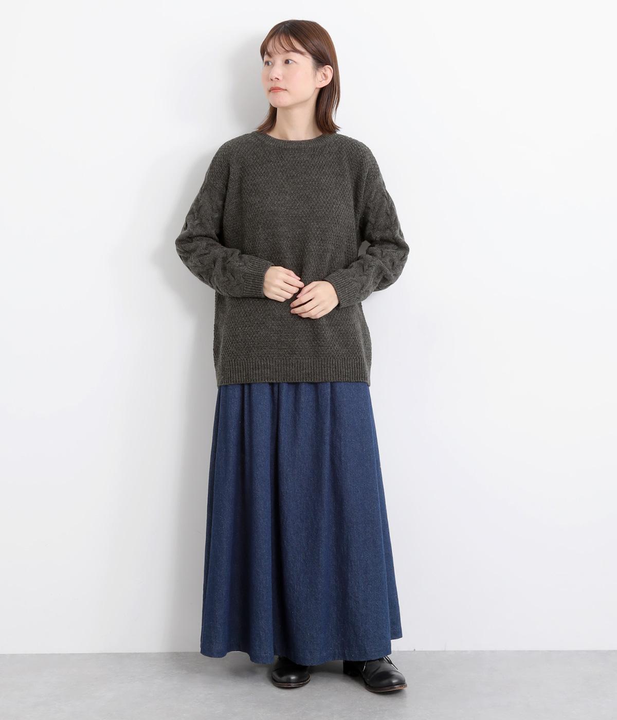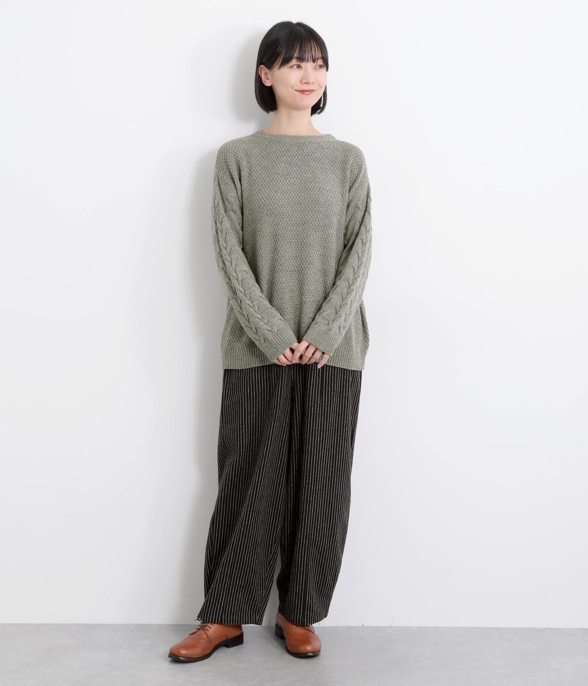 編み柄を切り替えた表情豊かなニットプルオーバーです。厚すぎない編み地と、大きすぎないシルエットが大人かわいい装いを演出します。カジュアルなパンツやスカートとも相性抜群です。