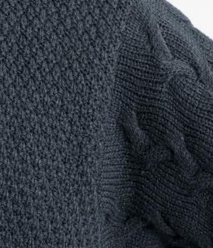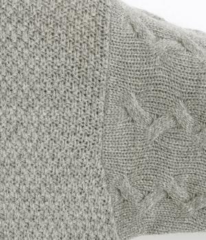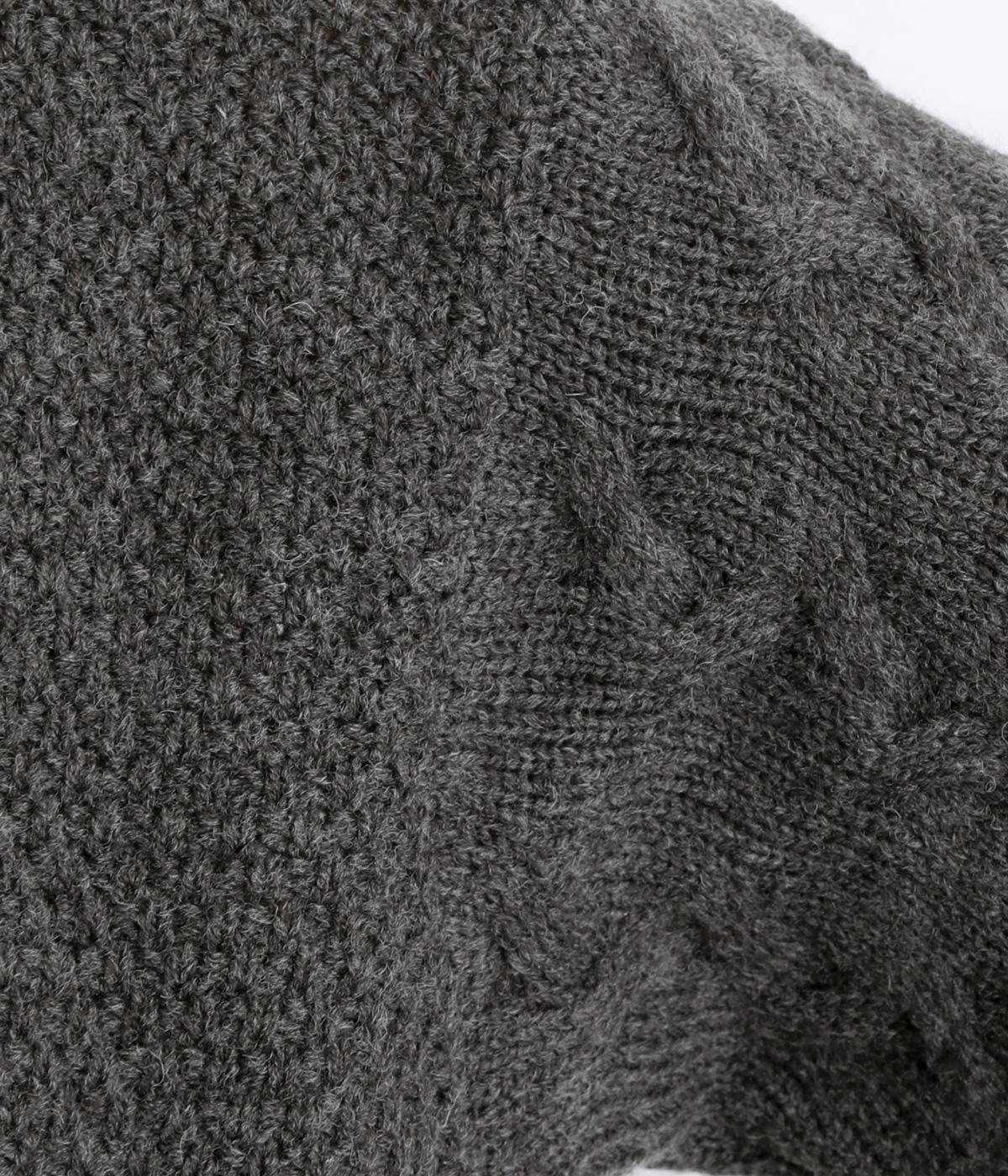 チクチクしにくい、やわらかな質感のウール混ニットを使用しています。ぽこぽことした表情がかわいい鹿の子編みと、立体的なケーブル編みを組み合わせています。