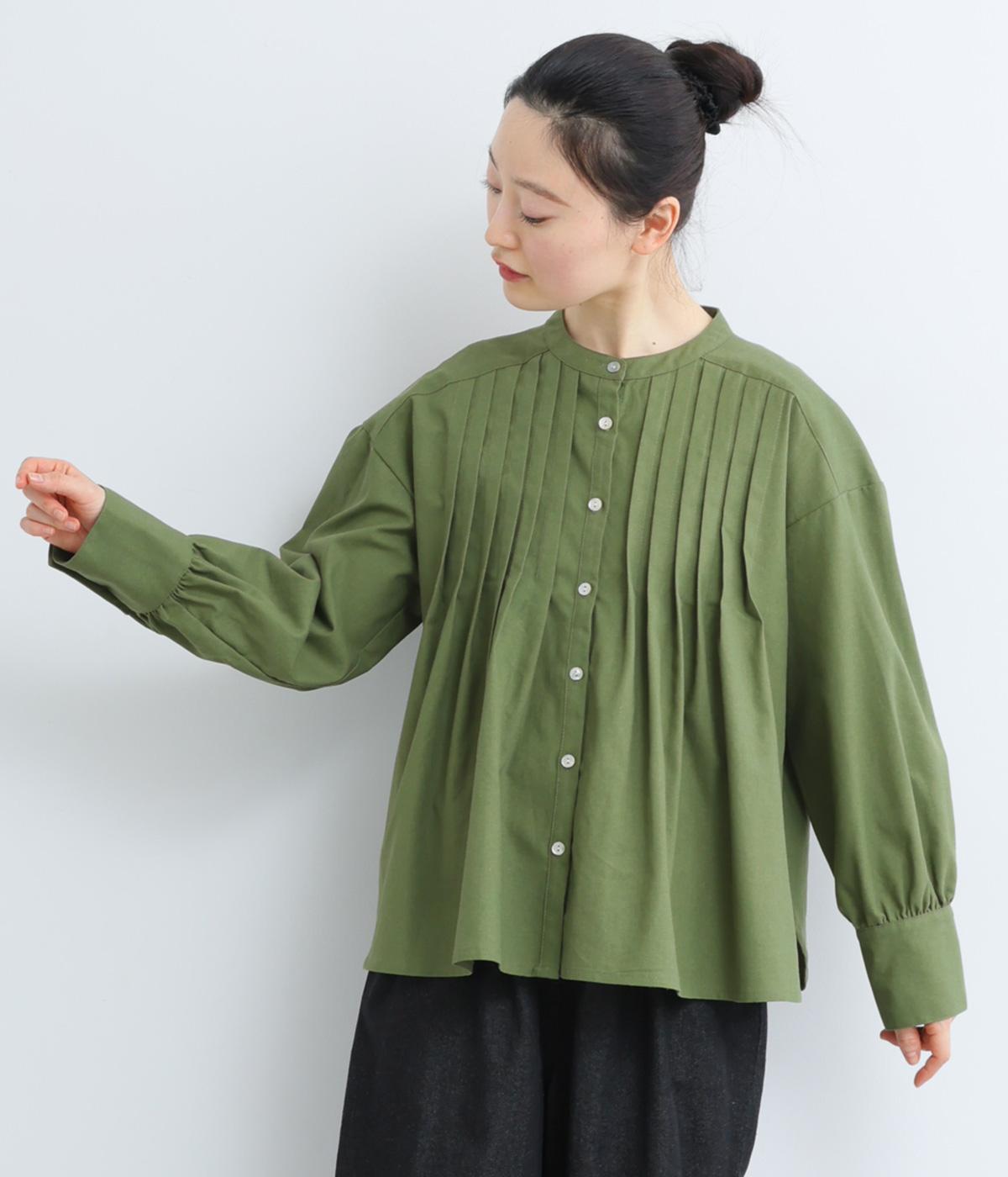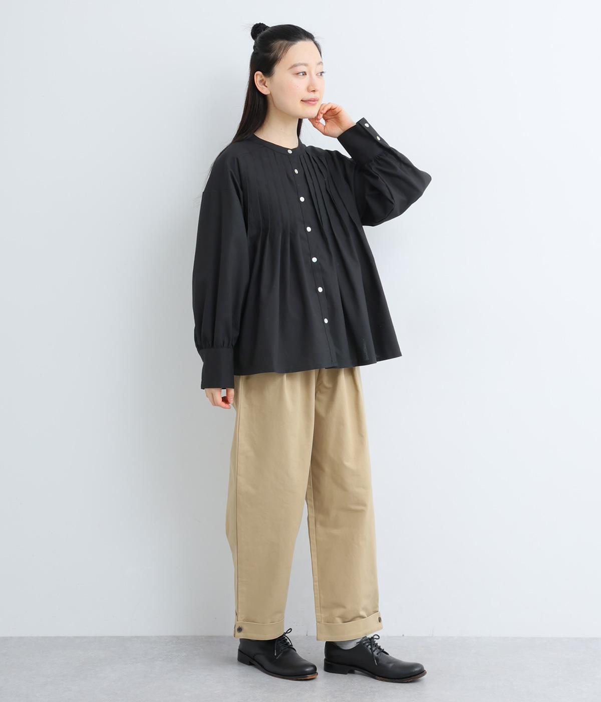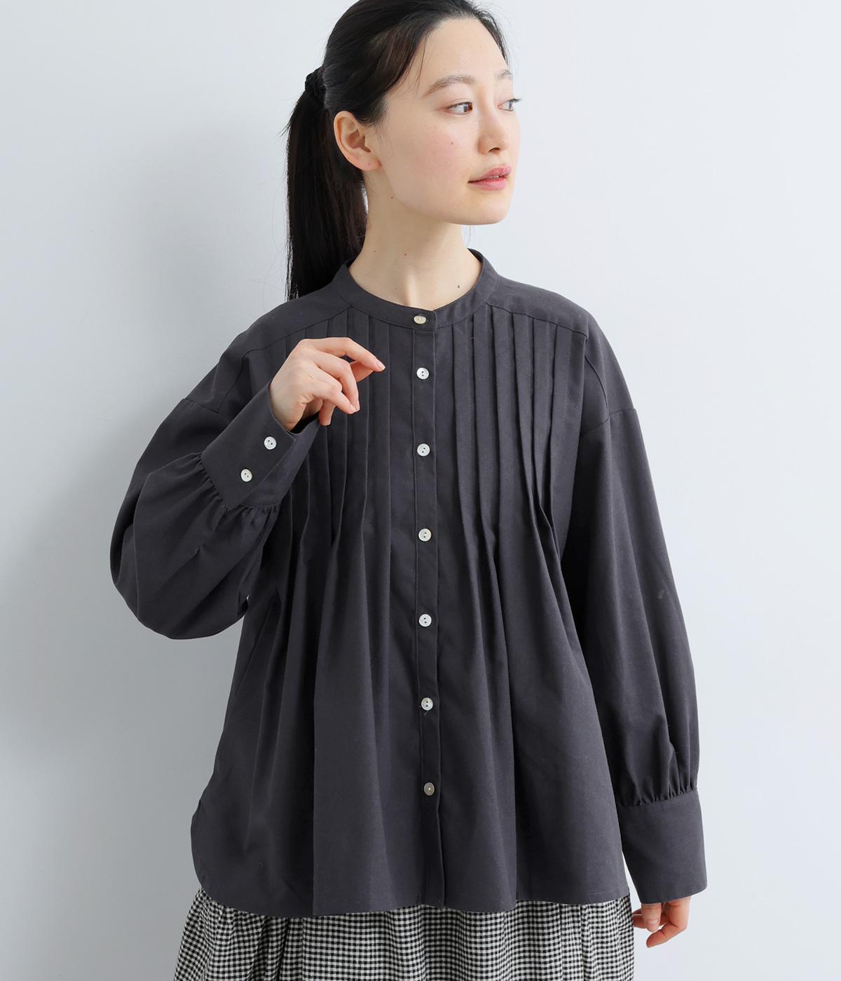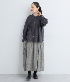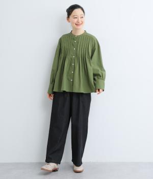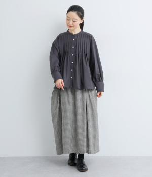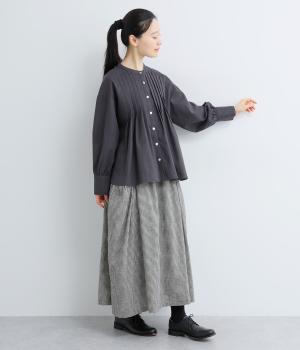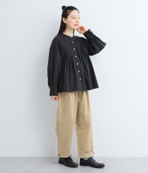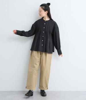 ヨーク下にタックをたっぷり入れたフレア感のあるブラウス。長めカフスのふっくらした袖も優雅に見えるポイントで、シンプルながらも着映え力のある一枚。ラウンドした裾が横姿にも動きを与えてきれい見えを叶えます。