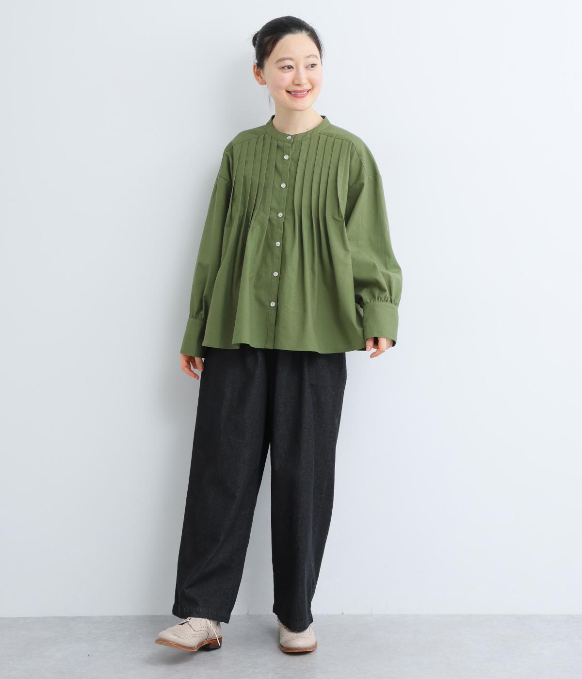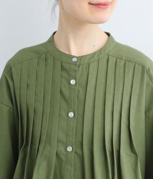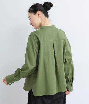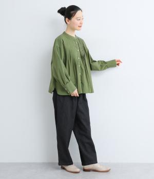 ややドライで心地よい質感とナチュラルな風合いが魅力のリネンコットン生地を使用しています。適度なハリ感のある素材でロングシーズン快適に着用できます。