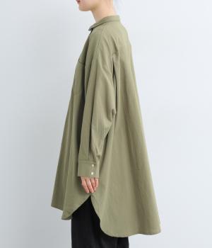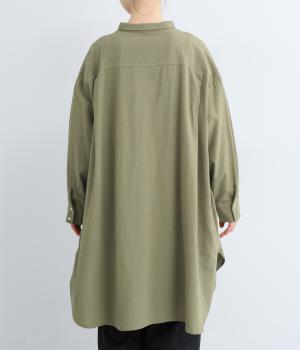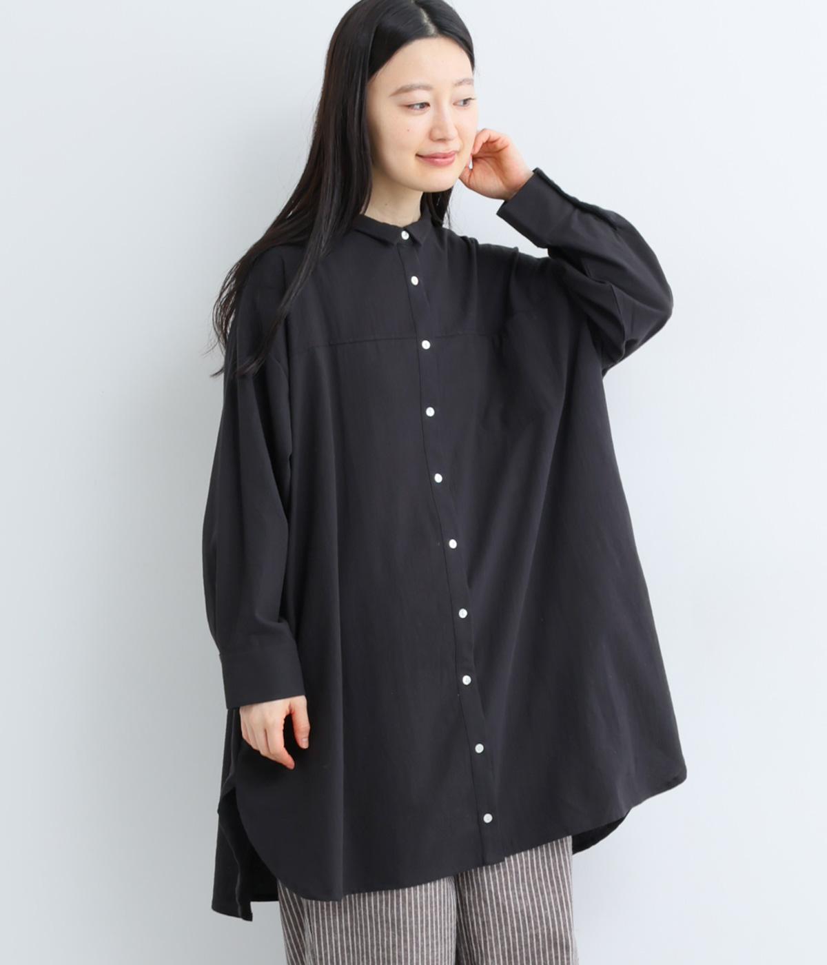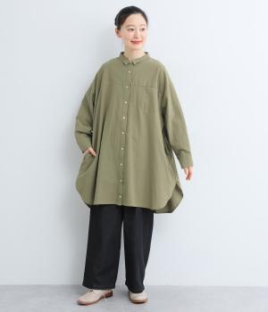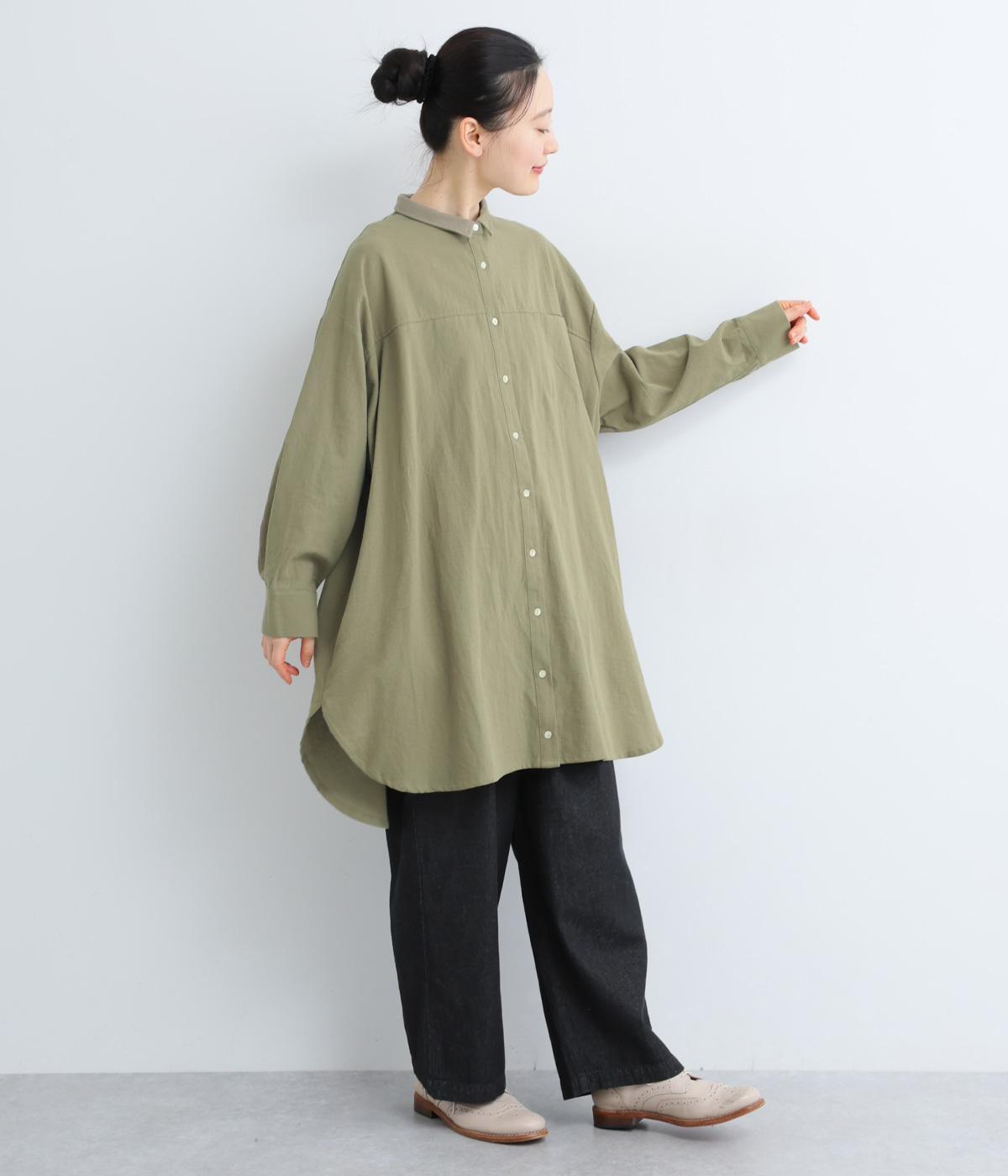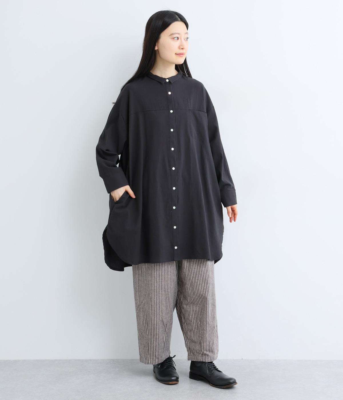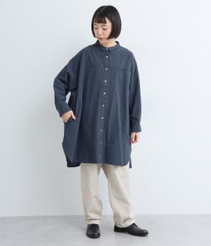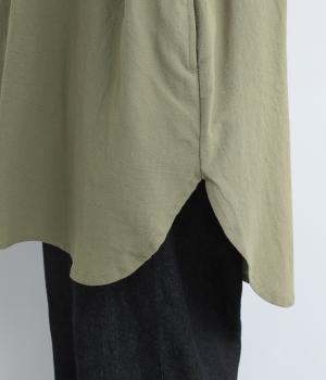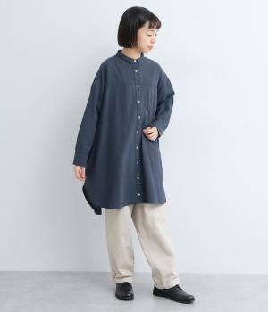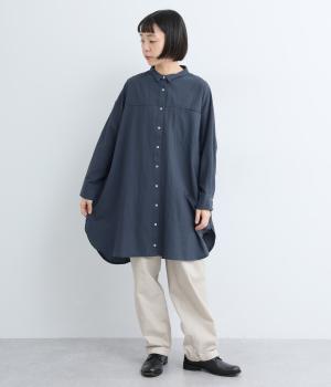 生地の持つナチュラルな風合いを活かしてシンプルに仕立てたシャツチュニック。ゆとりのある身幅にラウンドしたヘムラインで、着用すると自然な動きが生まれます。光沢感のあるシェルボタンを採用してさり気なくコントラストを。
