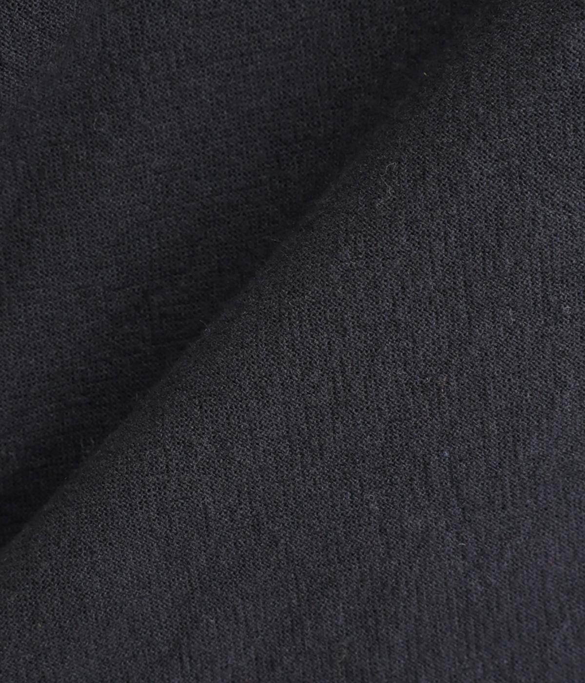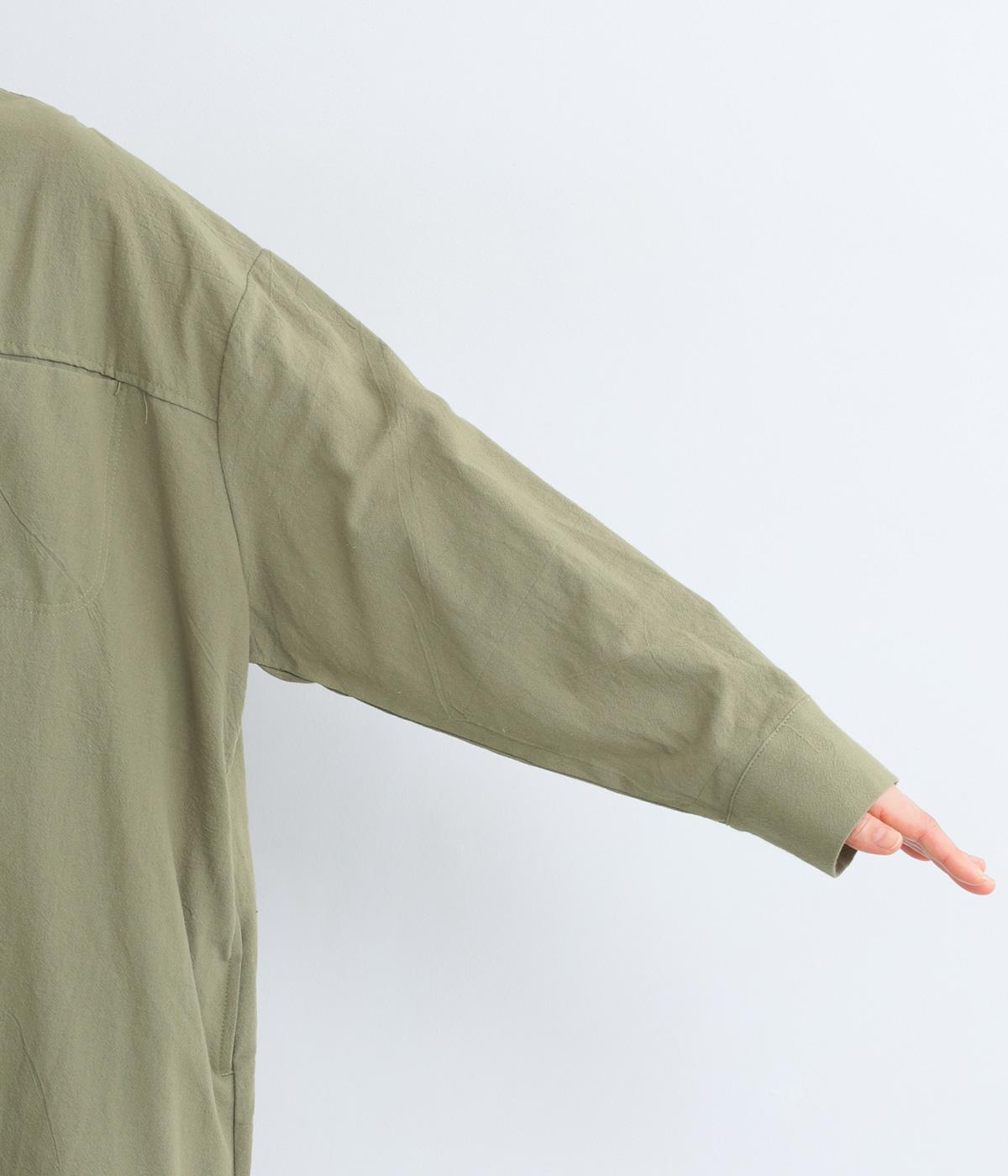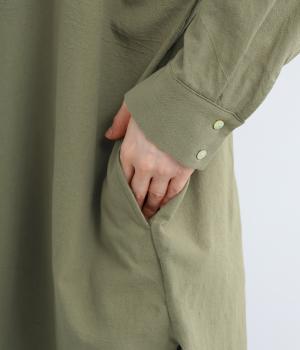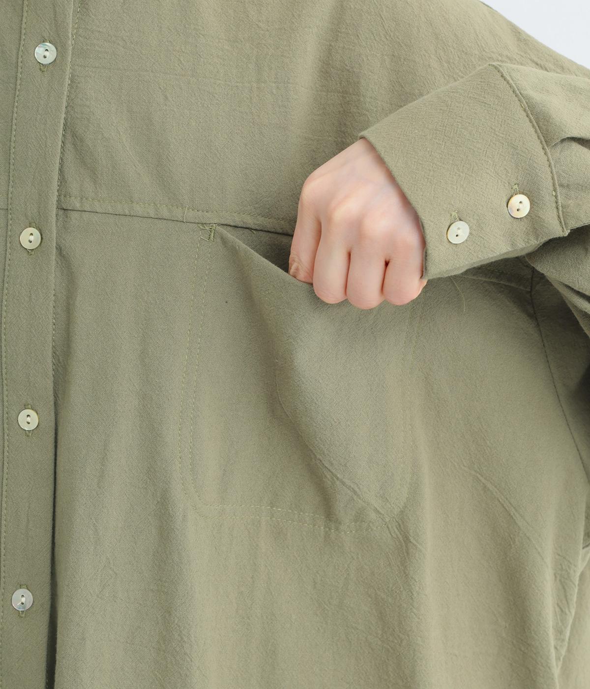 ちりめんのような細かな表面感にドライな質感が特徴的なコットン生地を使用。適度にふくらみのある軽やかな素材で肌離れも良く、ロングシーズン快適に着用できます。