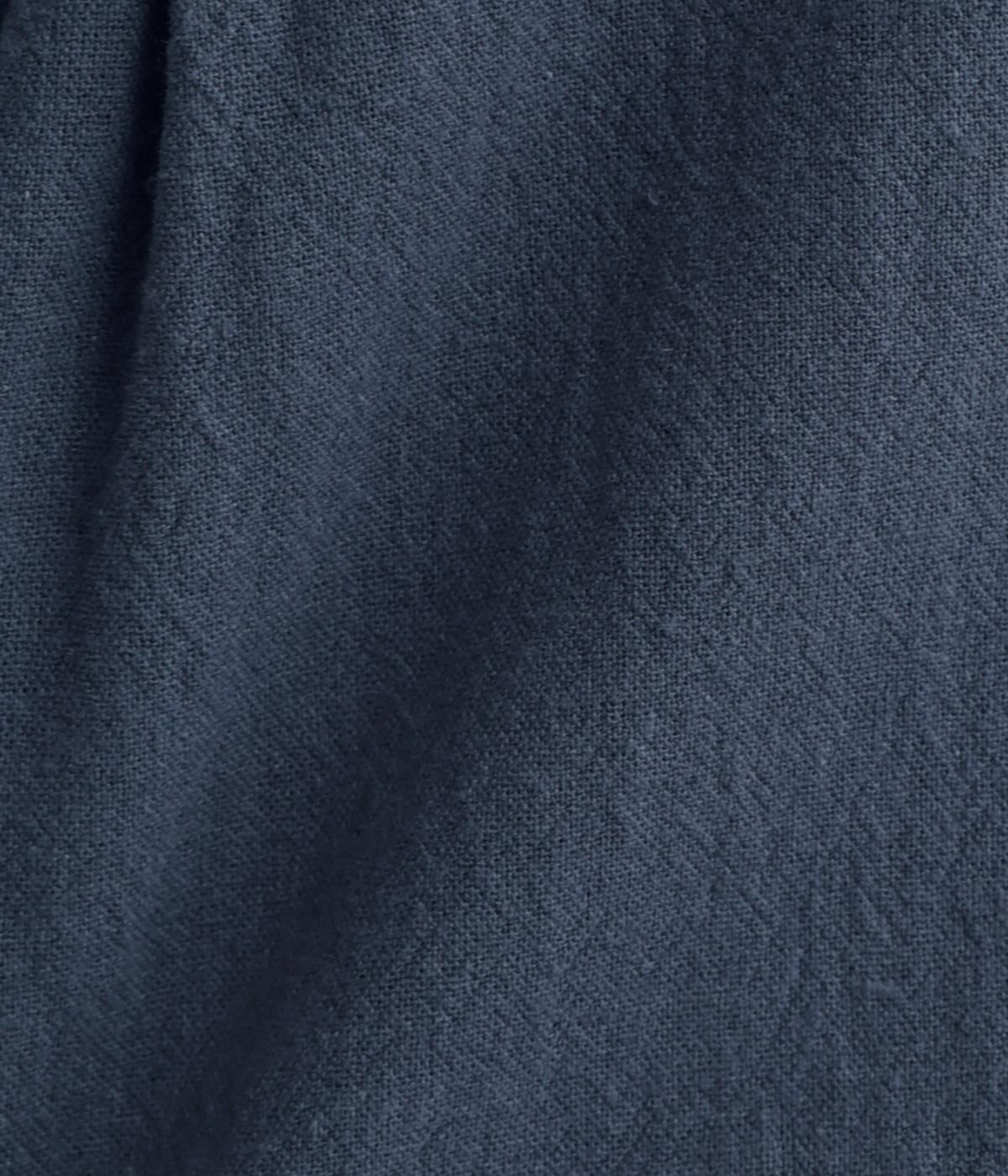 ちりめんのような細かな表面感にドライな質感が特徴的なコットン生地を使用。適度にふくらみのある軽やかな素材で肌離れも良く、ロングシーズン快適に着用できます。