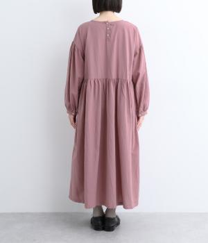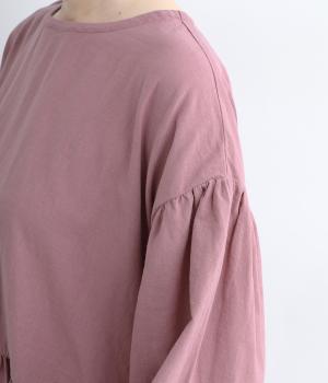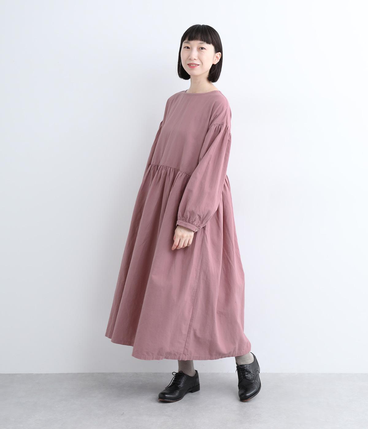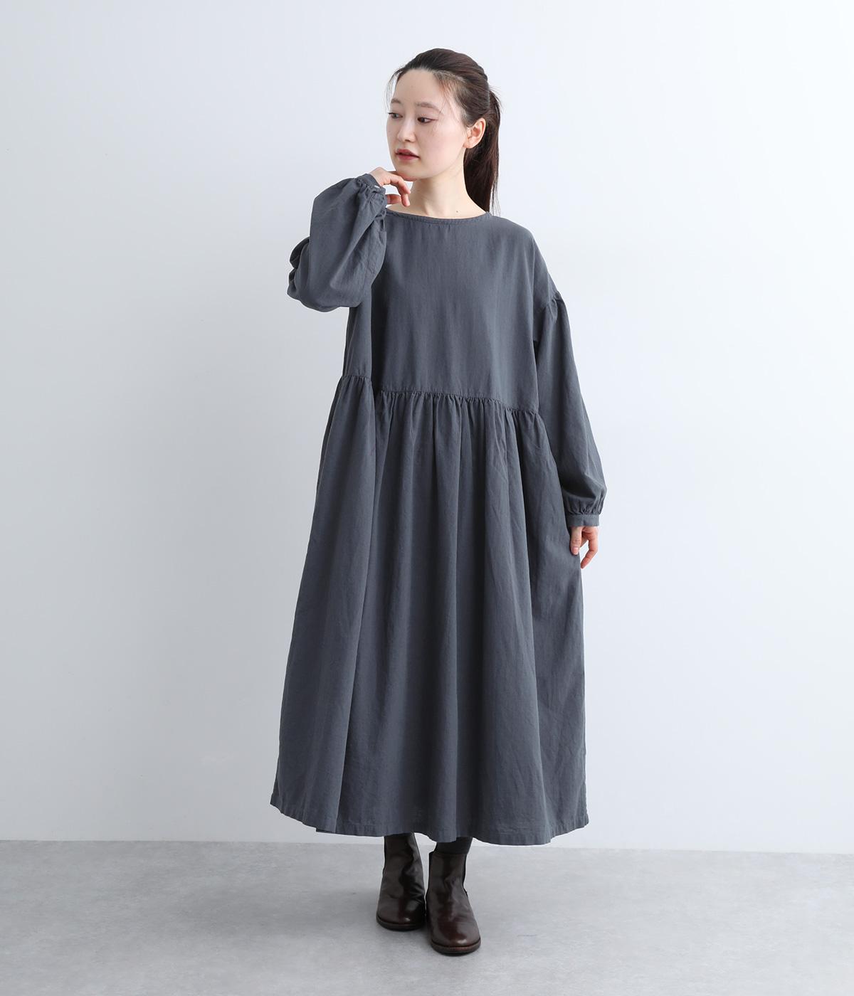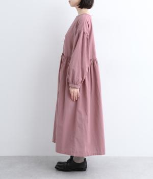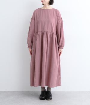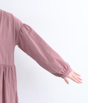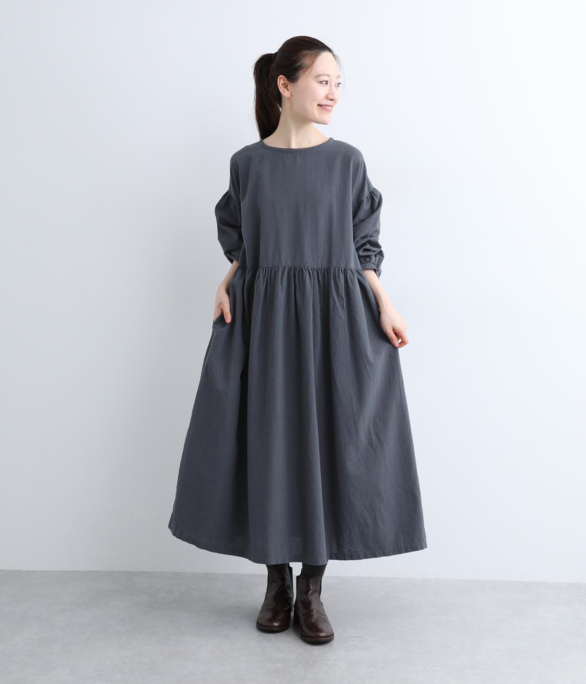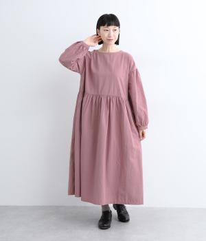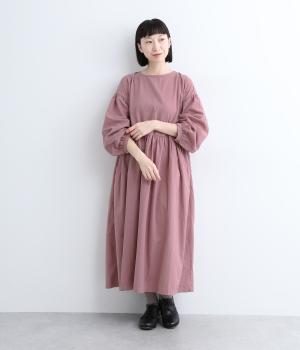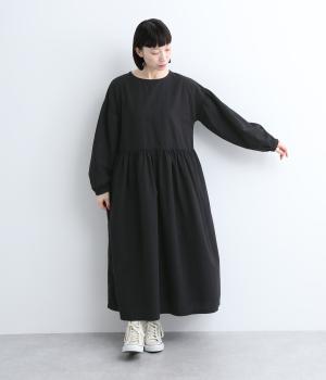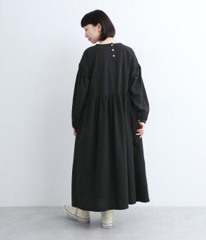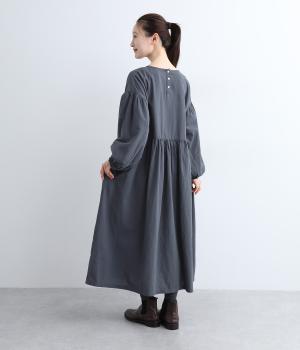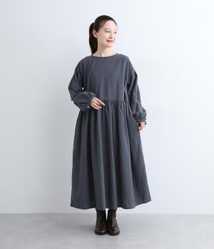 切り替えを入れてふんわりと仕上げた袖が、フェミニンな印象のワンピース。シンプルなデザインながらウエストにギャザーを入れることで、着心地の良いシルエットに仕立てました。鎖骨が少し覗くクルーネックが、ボリューミィなシルエットをすっきり見せてくれます。
