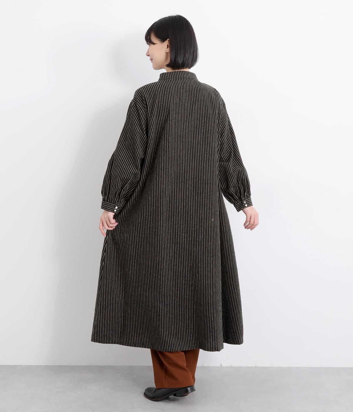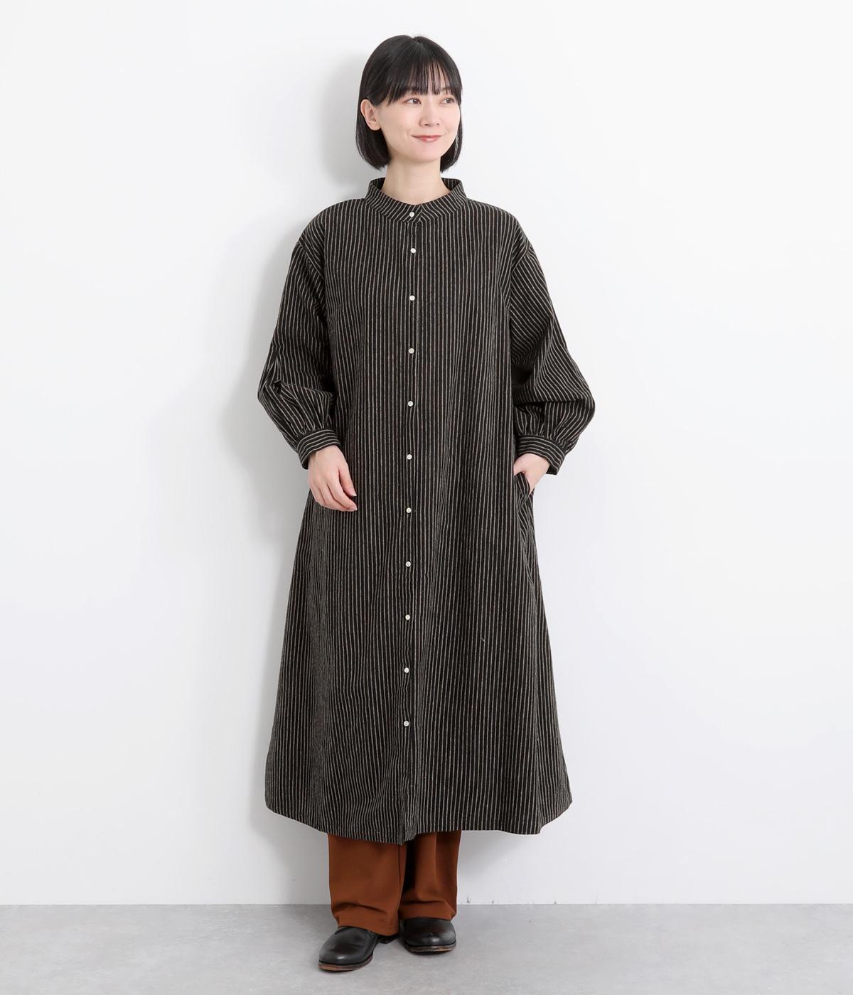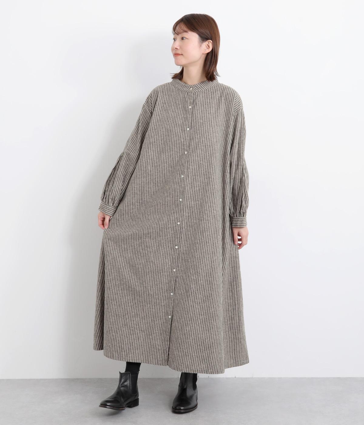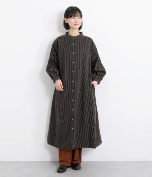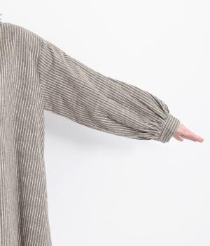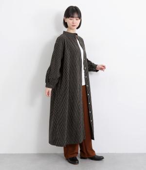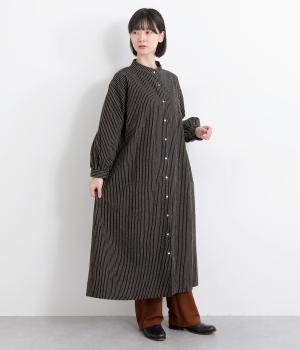 やわらかな綿麻生地の表面にほんのりと起毛をほどこして、秋冬ムードを高めました。落ち着いた色合いのストライプ柄がきちんと感も演出します。