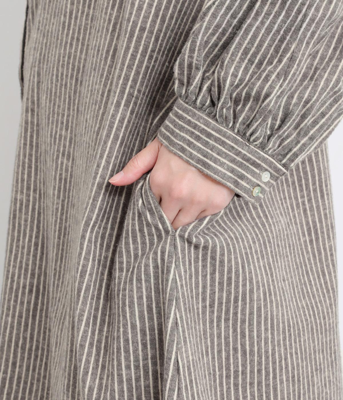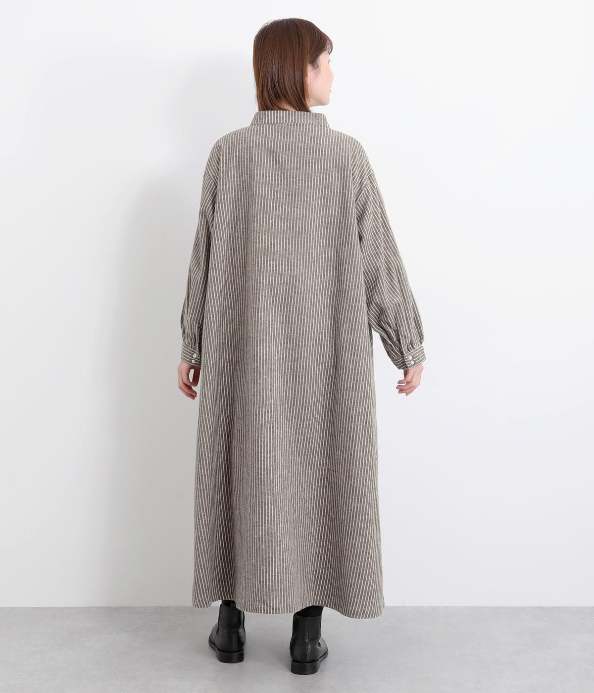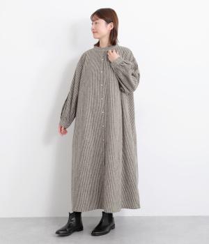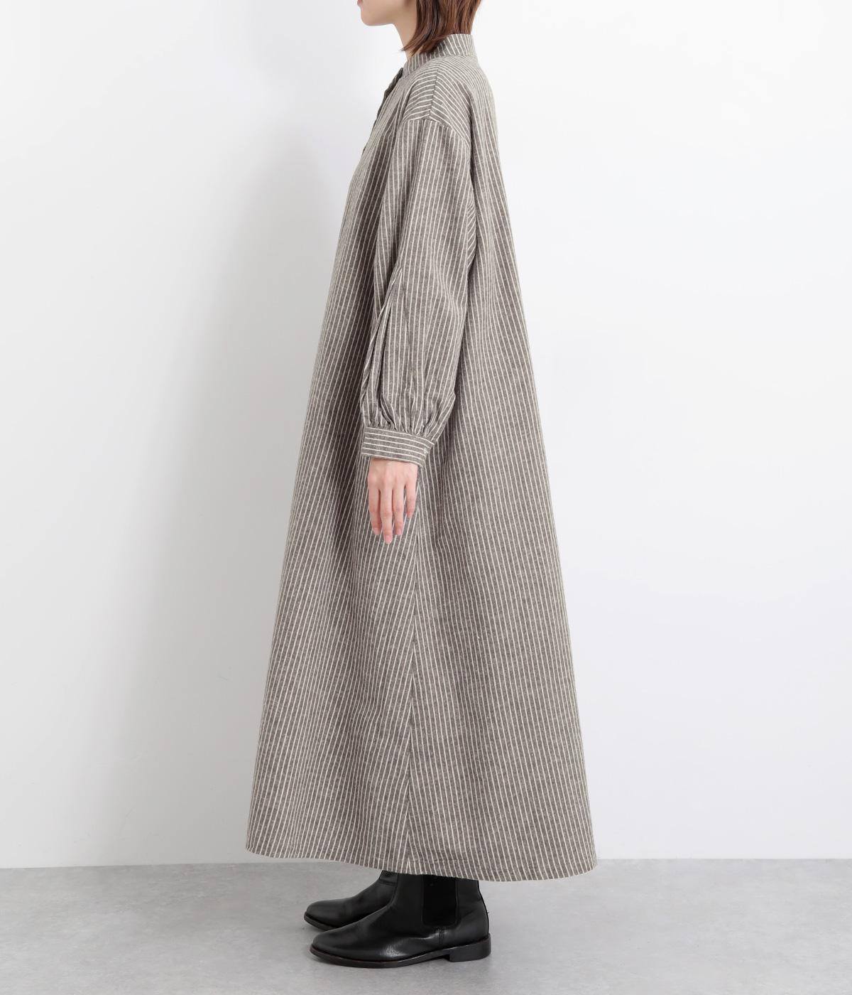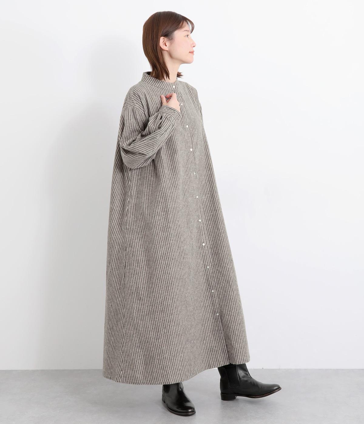 やわらかな綿麻生地の表面にほんのりと起毛をほどこして、秋冬ムードを高めました。落ち着いた色合いのストライプ柄がきちんと感も演出します。