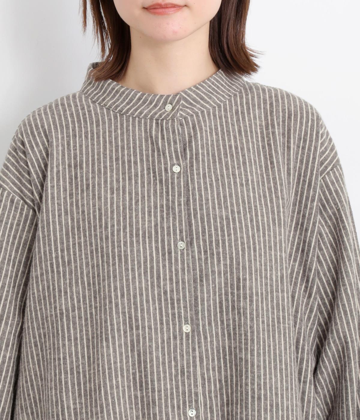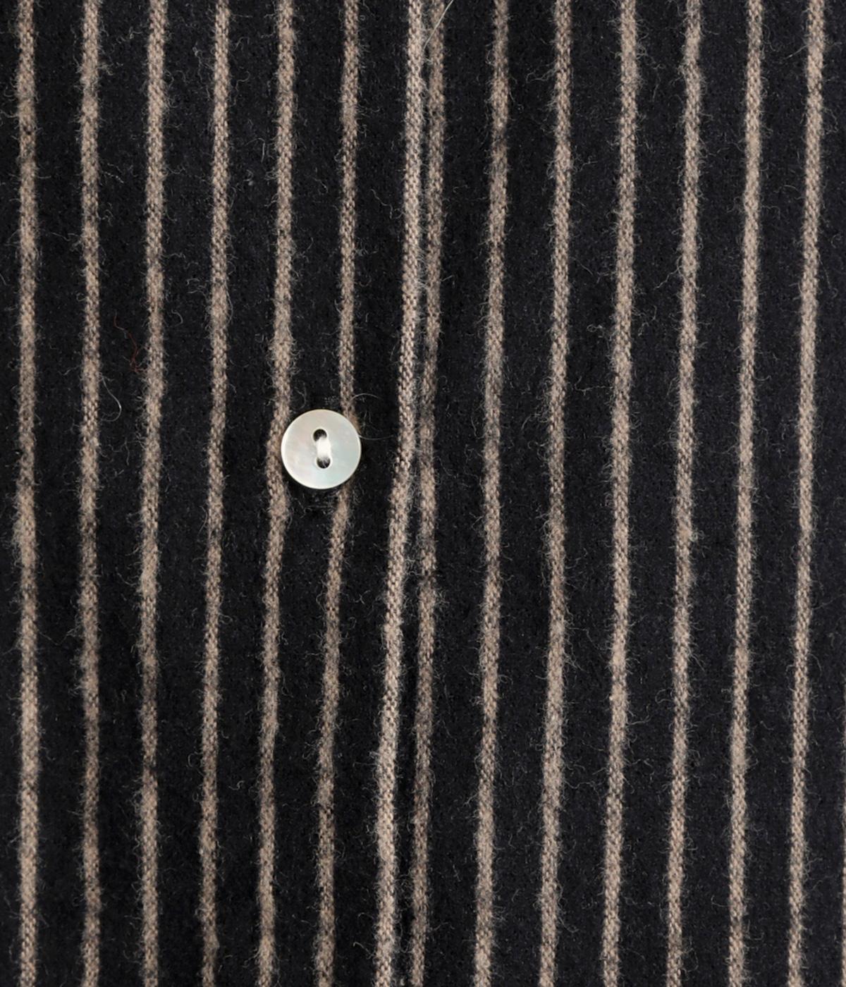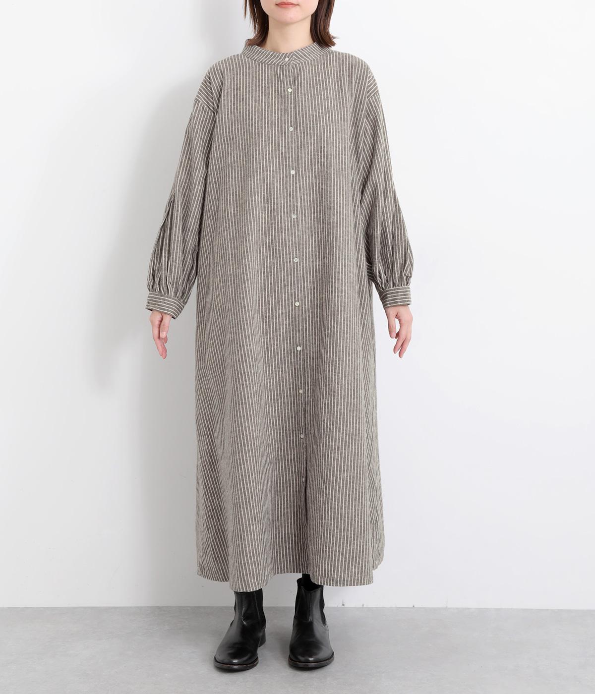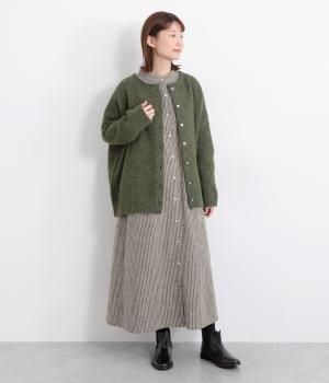 やわらかな綿麻生地の表面にほんのりと起毛をほどこして、秋冬ムードを高めました。落ち着いた色合いのストライプ柄がきちんと感も演出します。