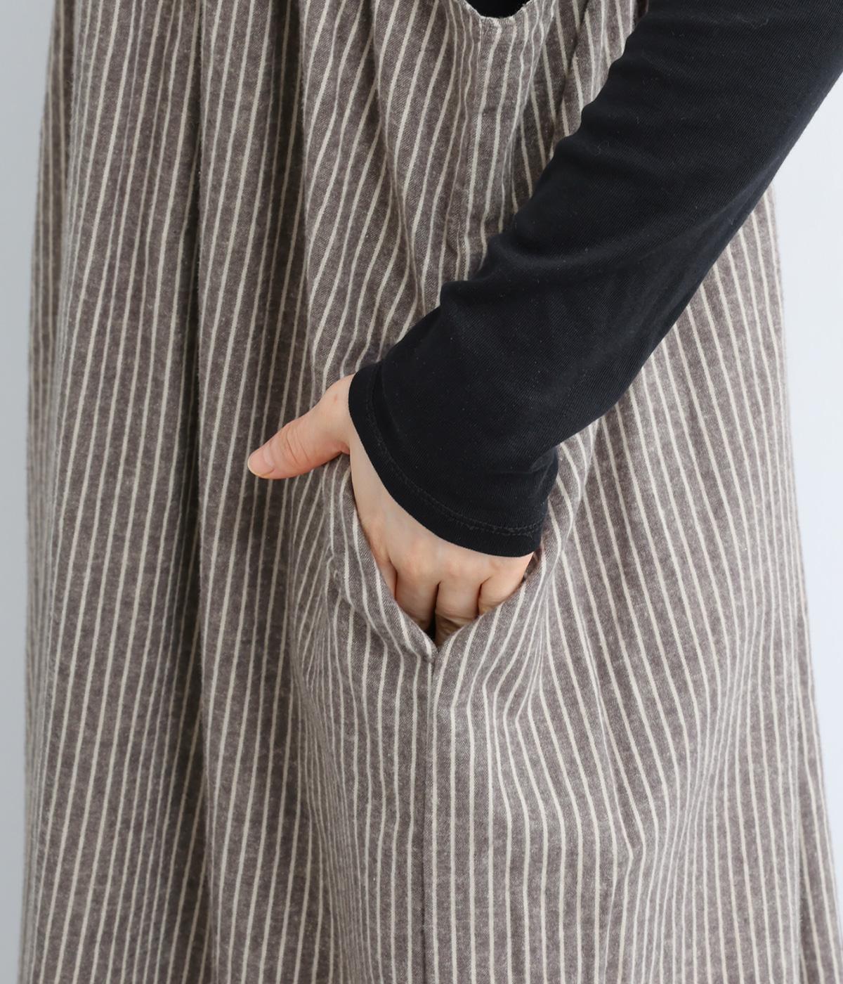 起毛をかけることでいつものストライプ柄とまたちがった印象を与えるリネンコットン生地を使用。厚手すぎないので着用しやすく、裏面はさらっとしていて肌あたりも快適。
