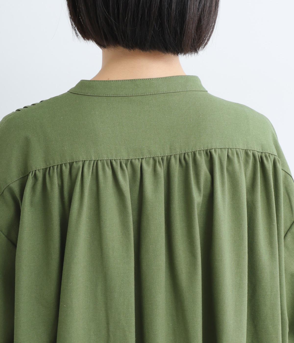 ややドライで心地よい質感とナチュラルな風合いが魅力のリネンコットン生地を使用しています。適度なハリ感のある素材でロングシーズン快適に着用できます。