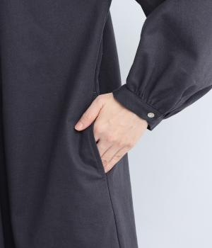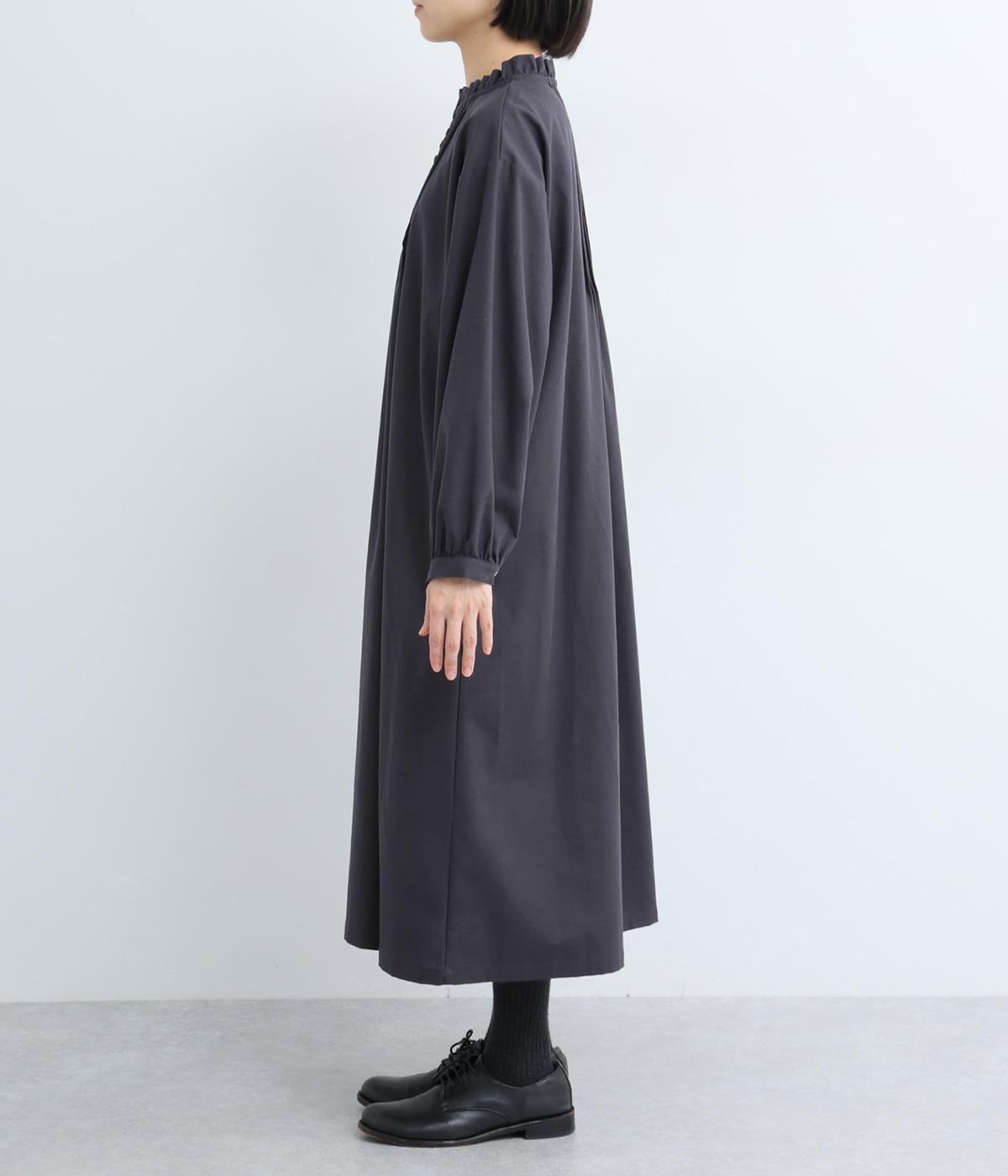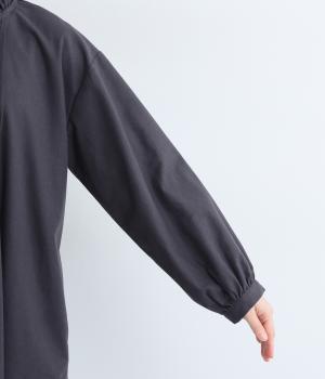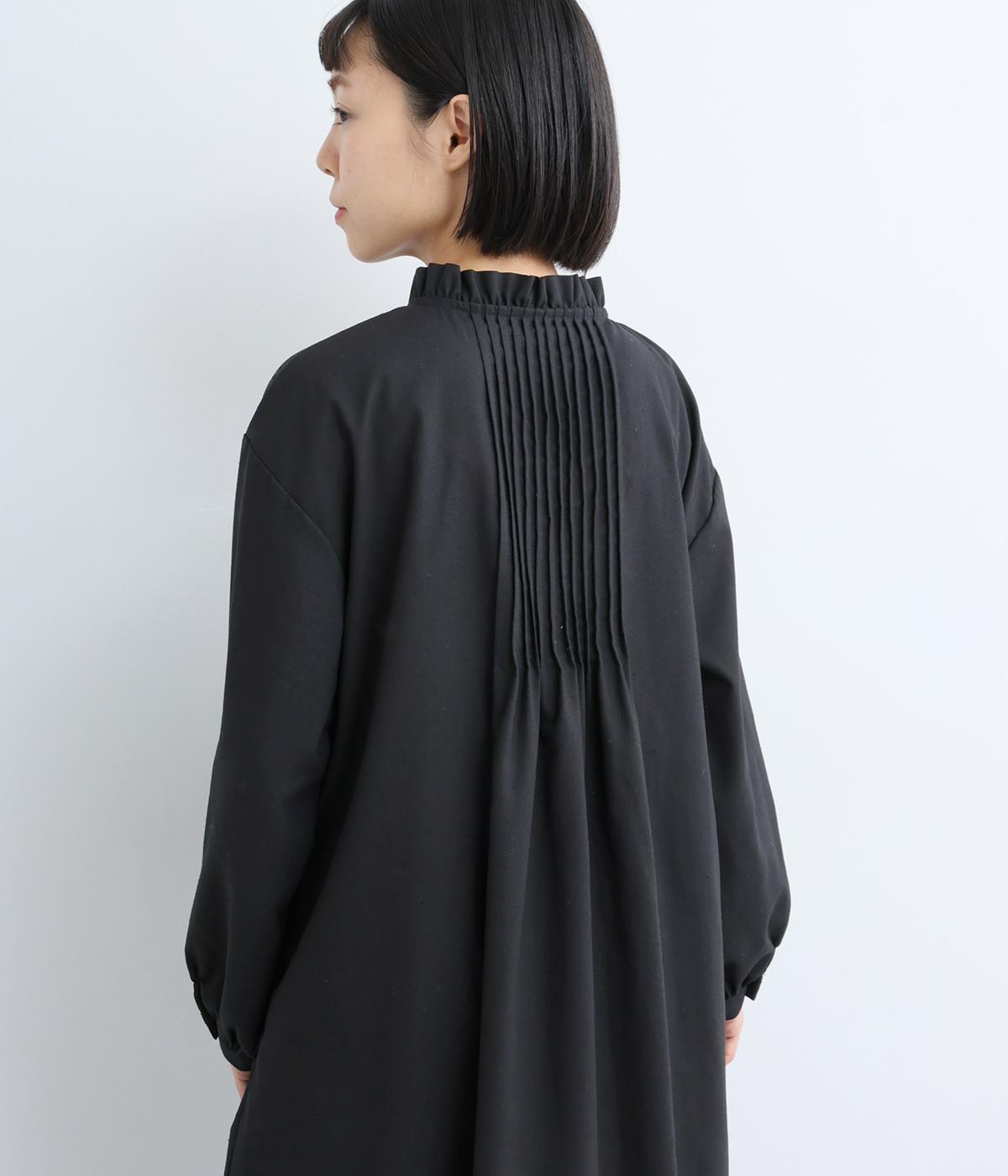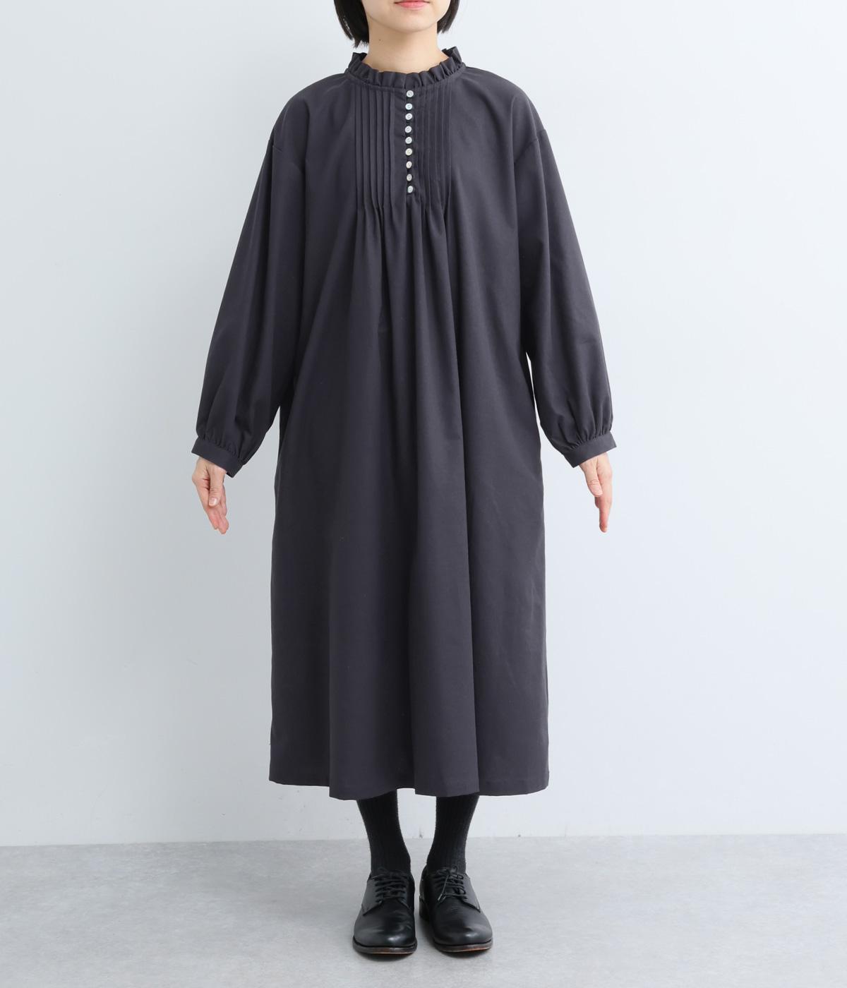 ピンタックやフリルカラーで上部分にポイントを持たせたワンピース。ゆったりとしていて着心地よく、袖もギャザーを寄せてボリューム感を出しました。光沢のあるシェルの多ボタンがちょうどいいアクセントに。