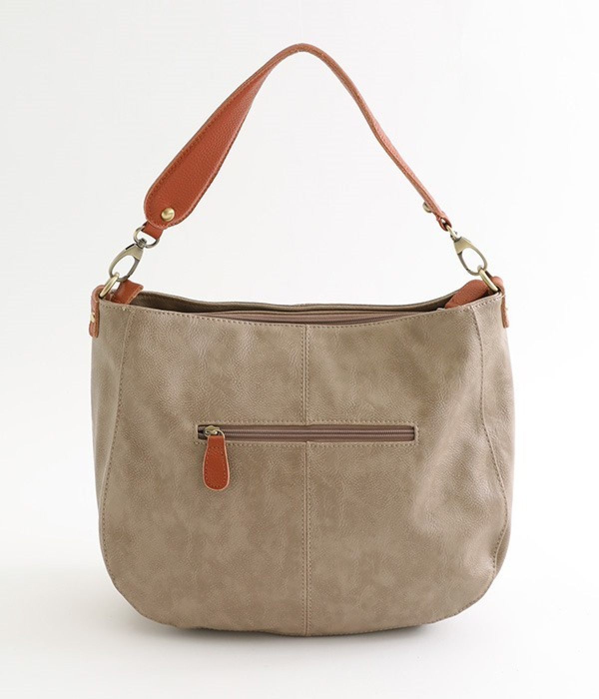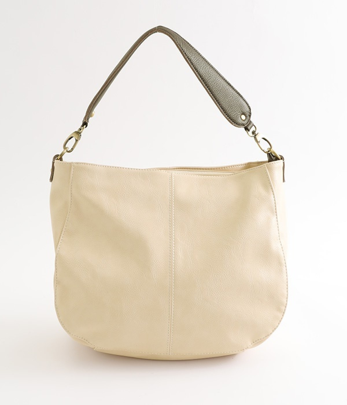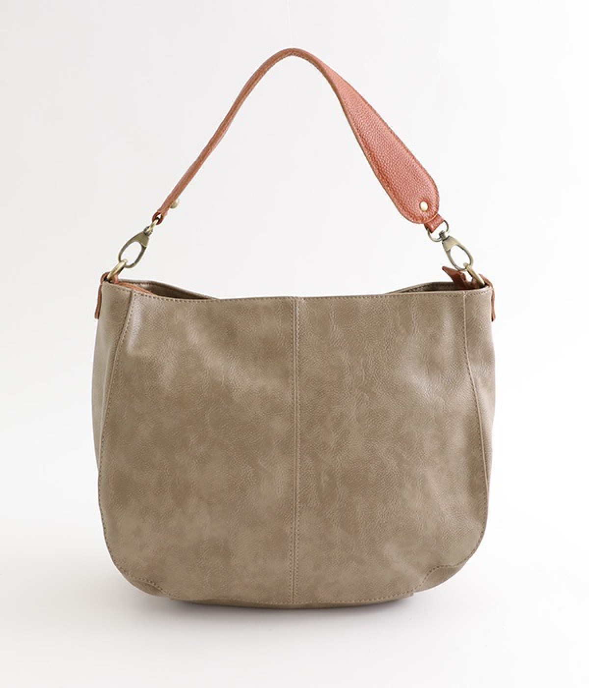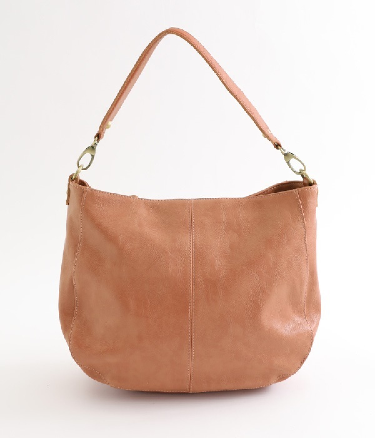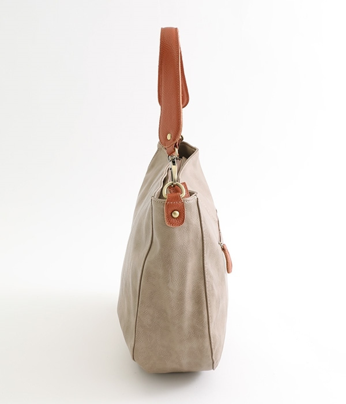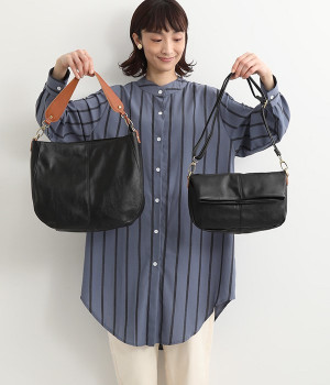 しっとりと柔らかく肌になじむフェイクレザーの質感が上品なワンショルダーバッグ。中身が整頓しやすいバッグインバッグタイプは単体でも使えます。角のないフォルムが風合いとも相まってやさしい雰囲気。内外のポケットや底マチで収納力も抜群です。肩にそっとかけるワンショルダーに大人の落ち着いた佇まいが感じられます。