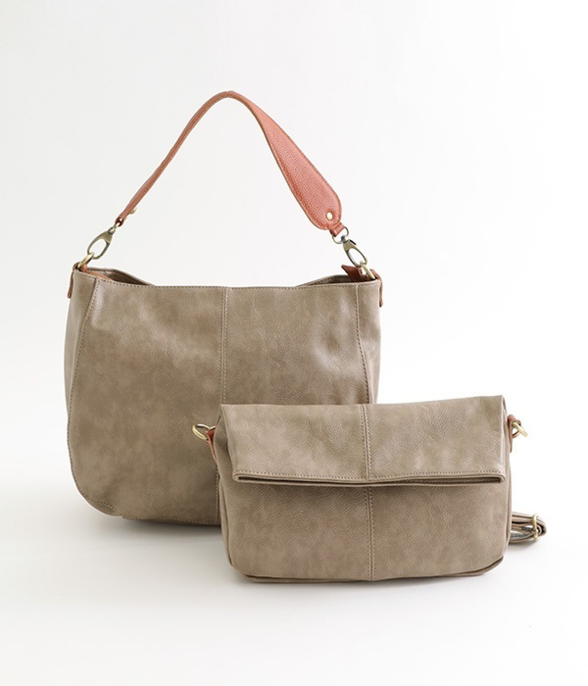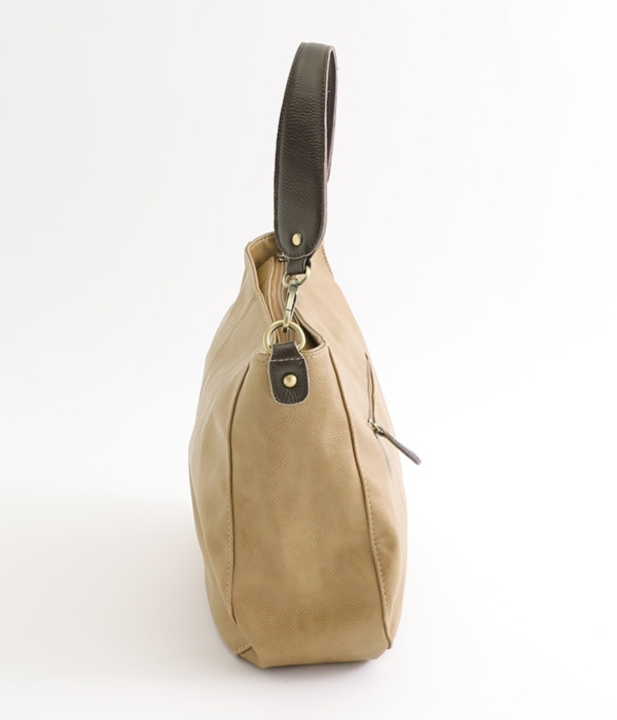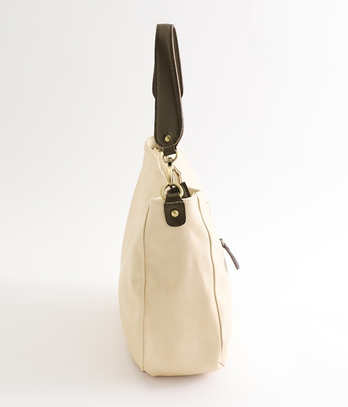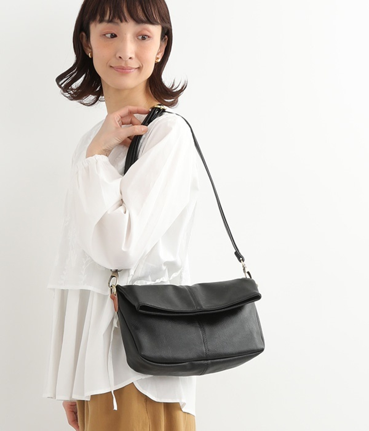 しっとりと柔らかく肌になじむフェイクレザーの質感が上品なワンショルダーバッグ。中身が整頓しやすいバッグインバッグタイプは単体でも使えます。角のないフォルムが風合いとも相まってやさしい雰囲気。内外のポケットや底マチで収納力も抜群です。肩にそっとかけるワンショルダーに大人の落ち着いた佇まいが感じられます。