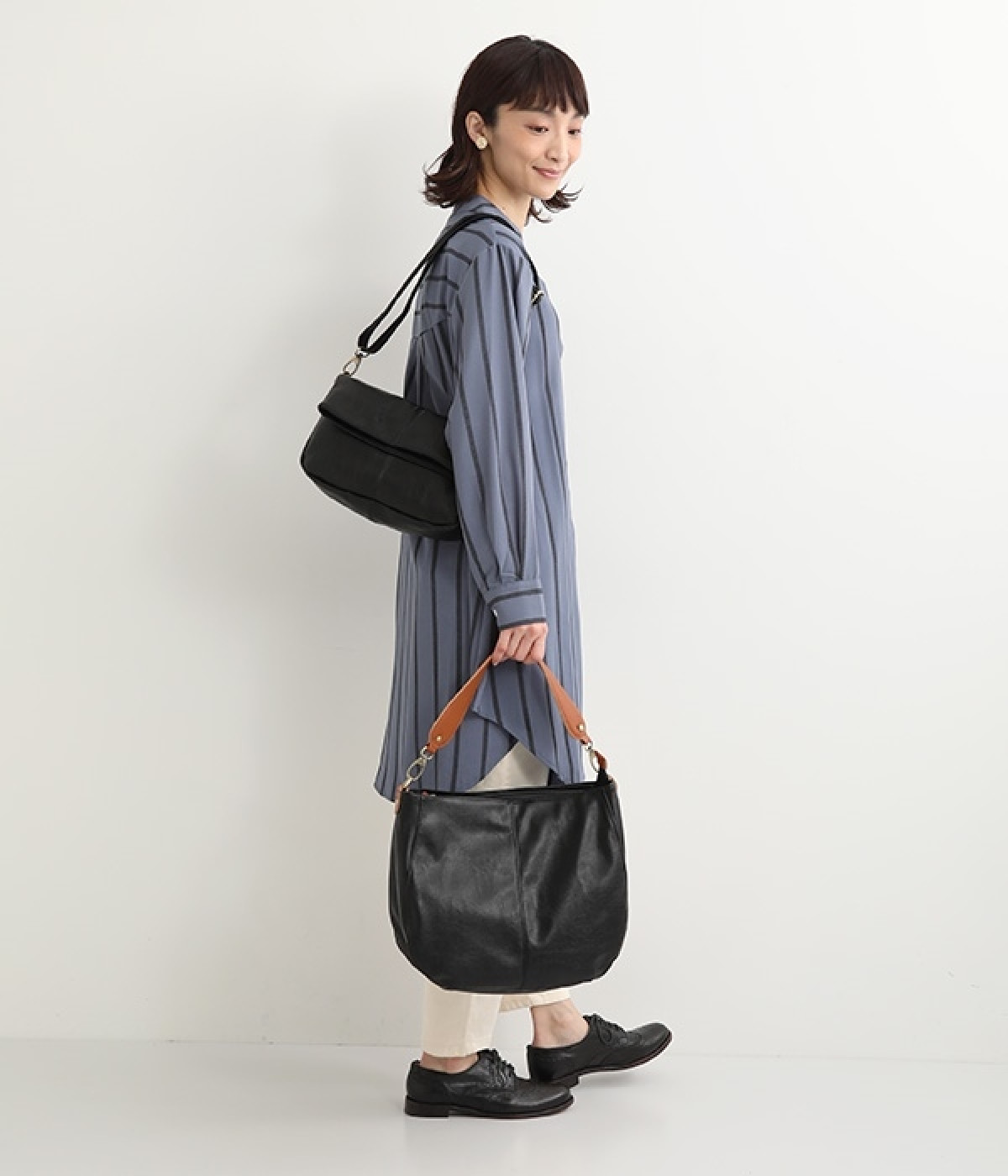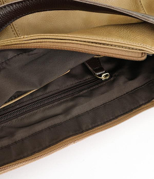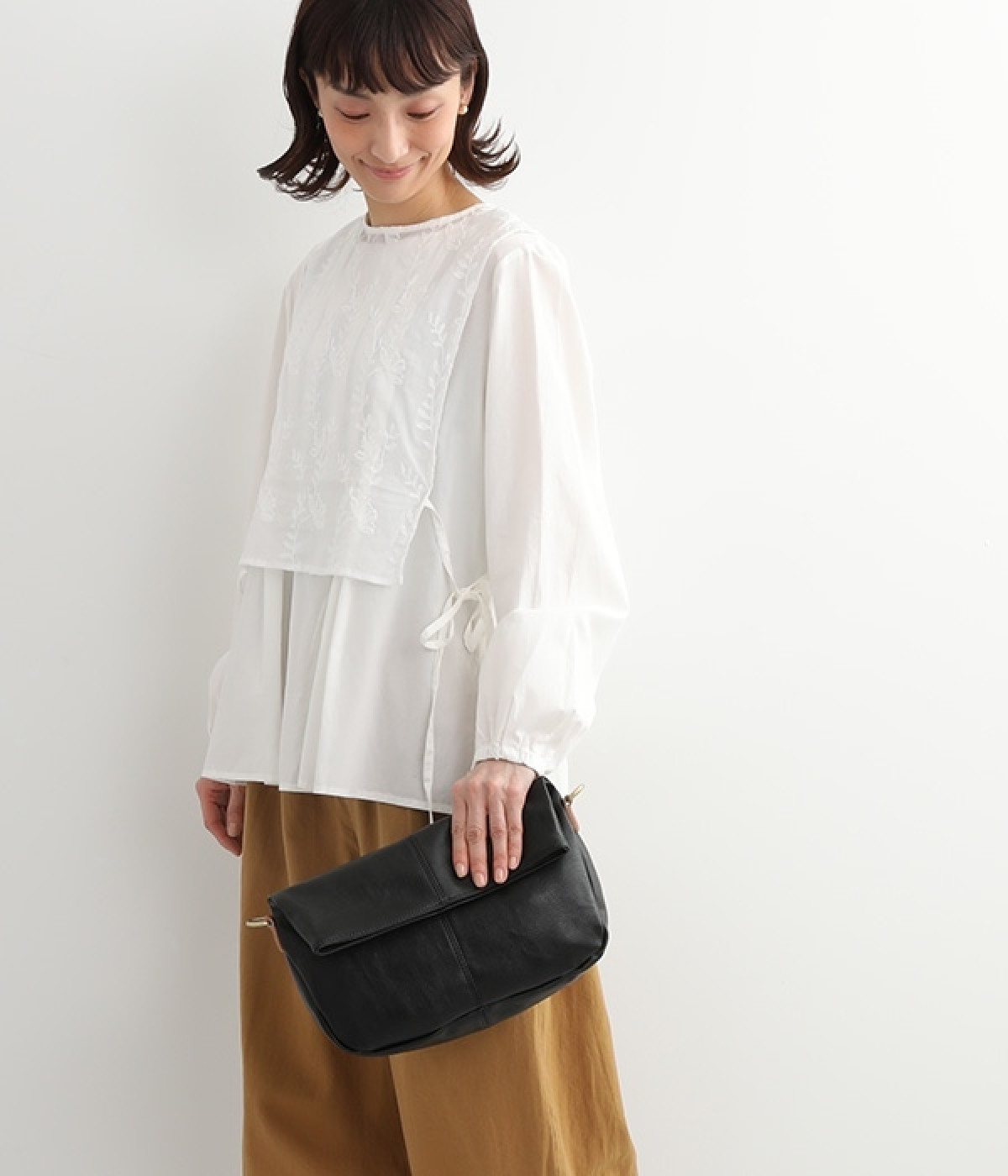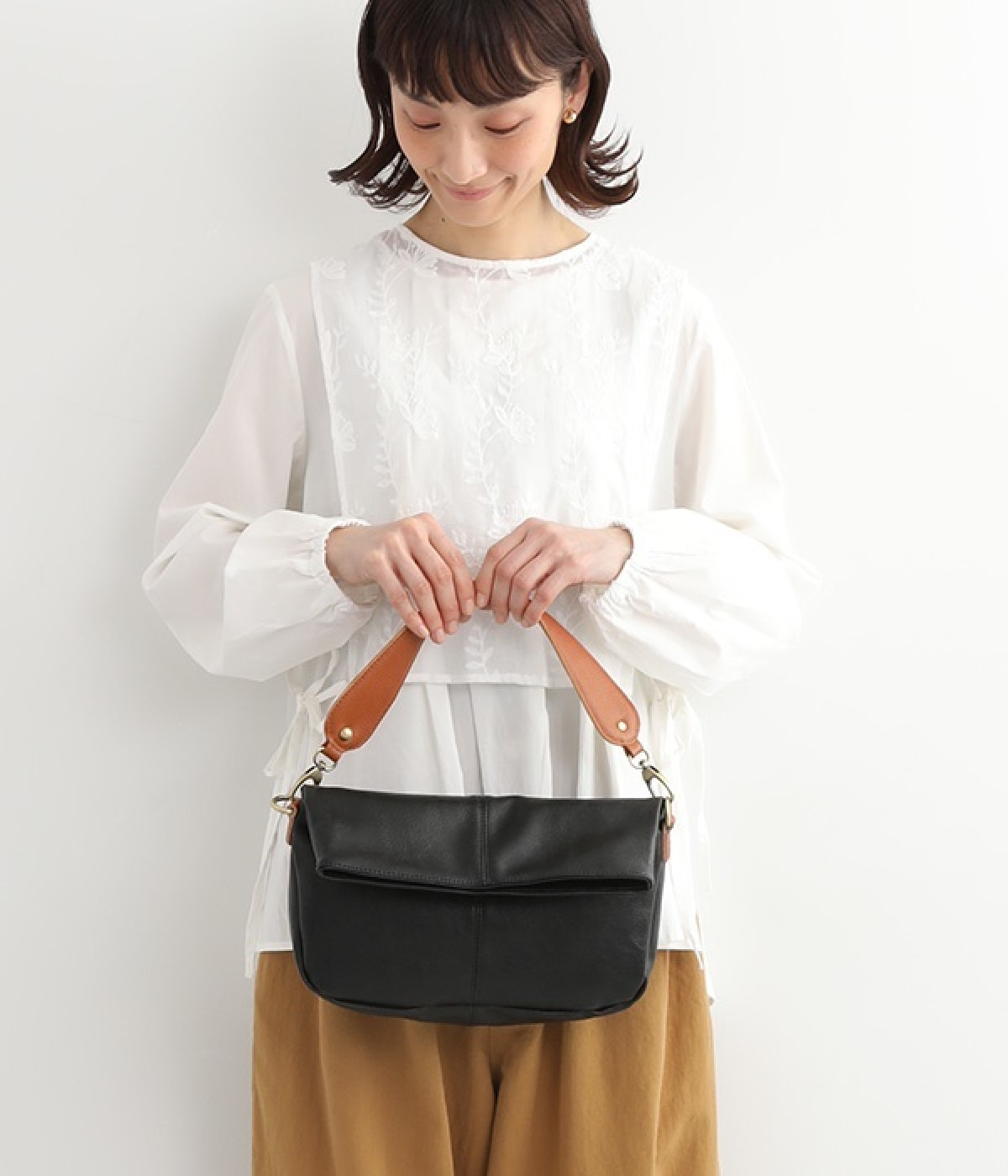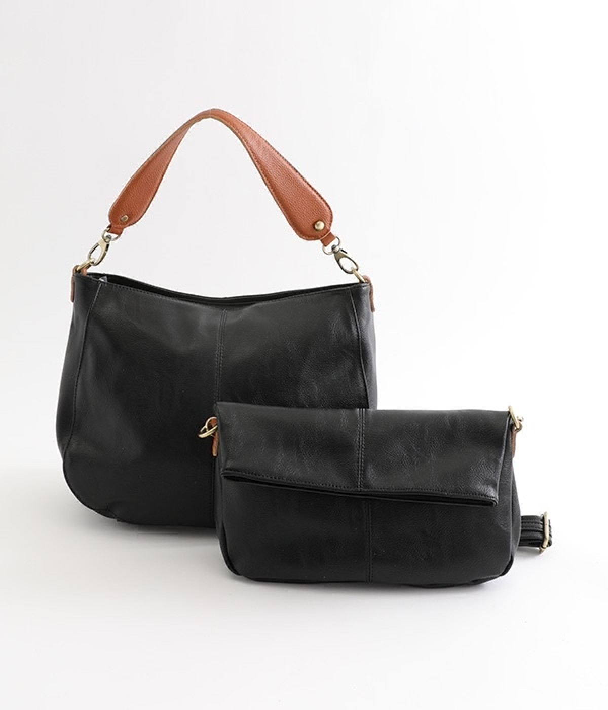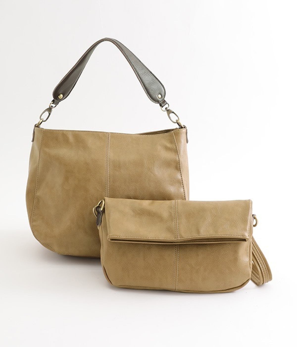 しっとりと柔らかく肌になじむフェイクレザーの質感が上品なワンショルダーバッグ。中身が整頓しやすいバッグインバッグタイプは単体でも使えます。角のないフォルムが風合いとも相まってやさしい雰囲気。内外のポケットや底マチで収納力も抜群です。肩にそっとかけるワンショルダーに大人の落ち着いた佇まいが感じられます。