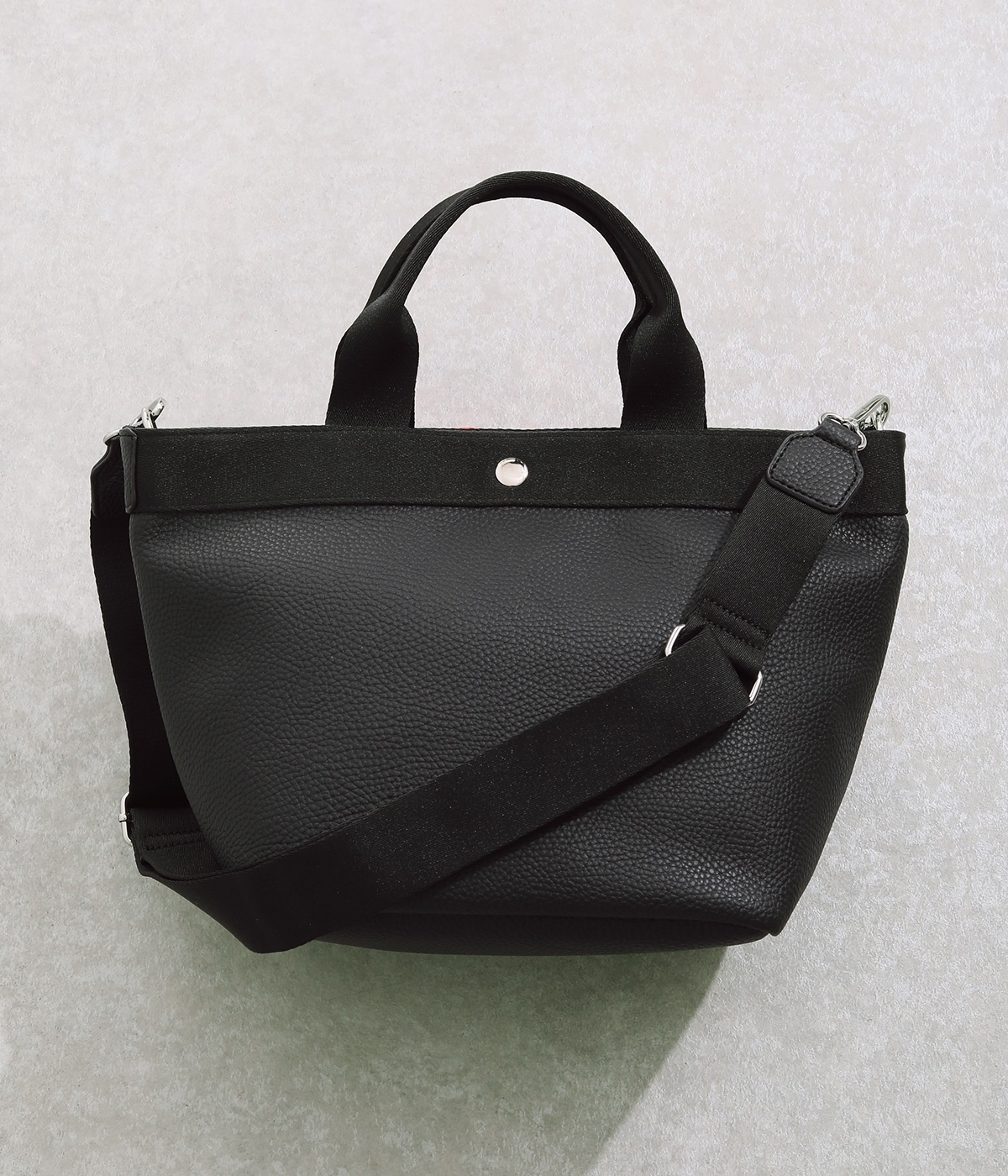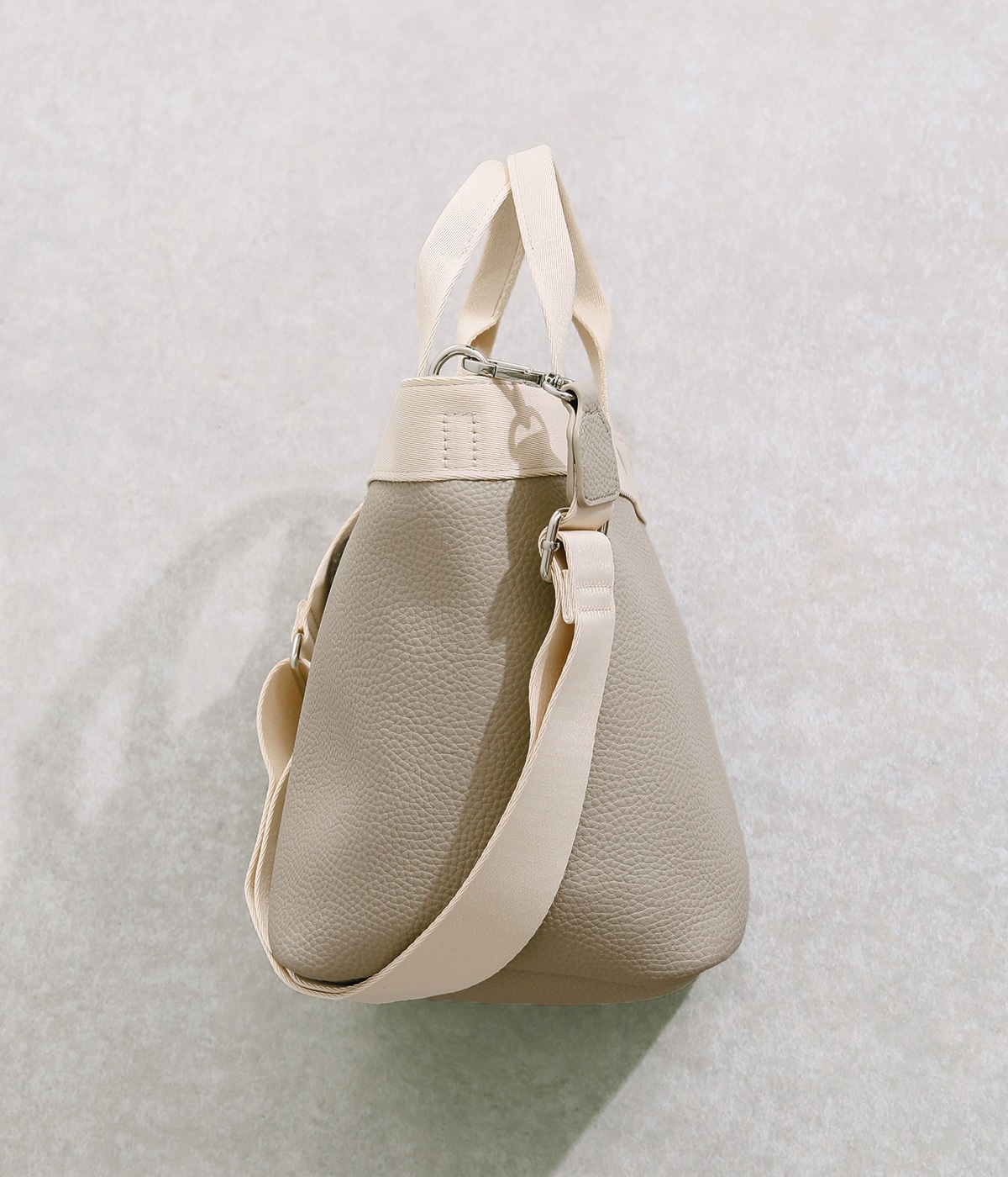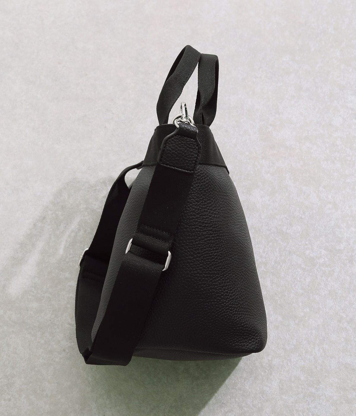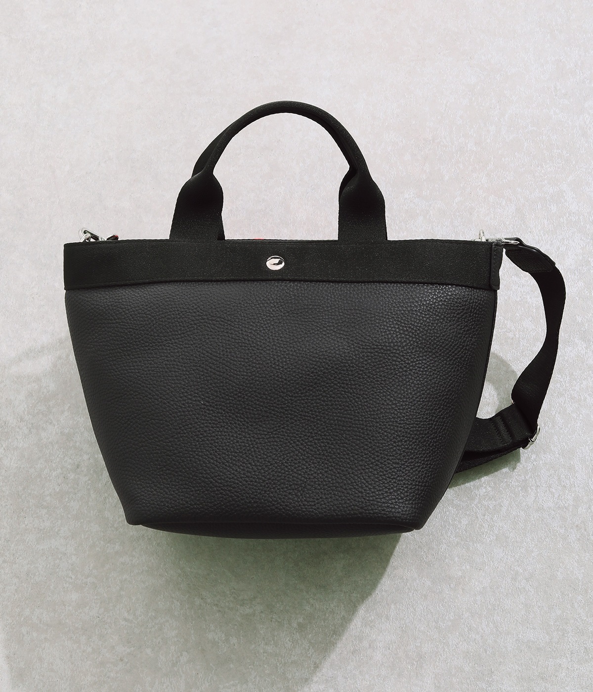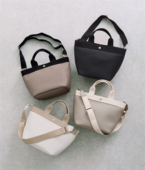 シボ感のあるセミマットな素材が品よく大人な表情を惹きたてます。合成皮革なのでケアしやすく、デイリーに使いやすいのもグッドポイント。