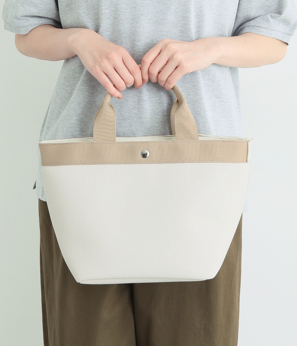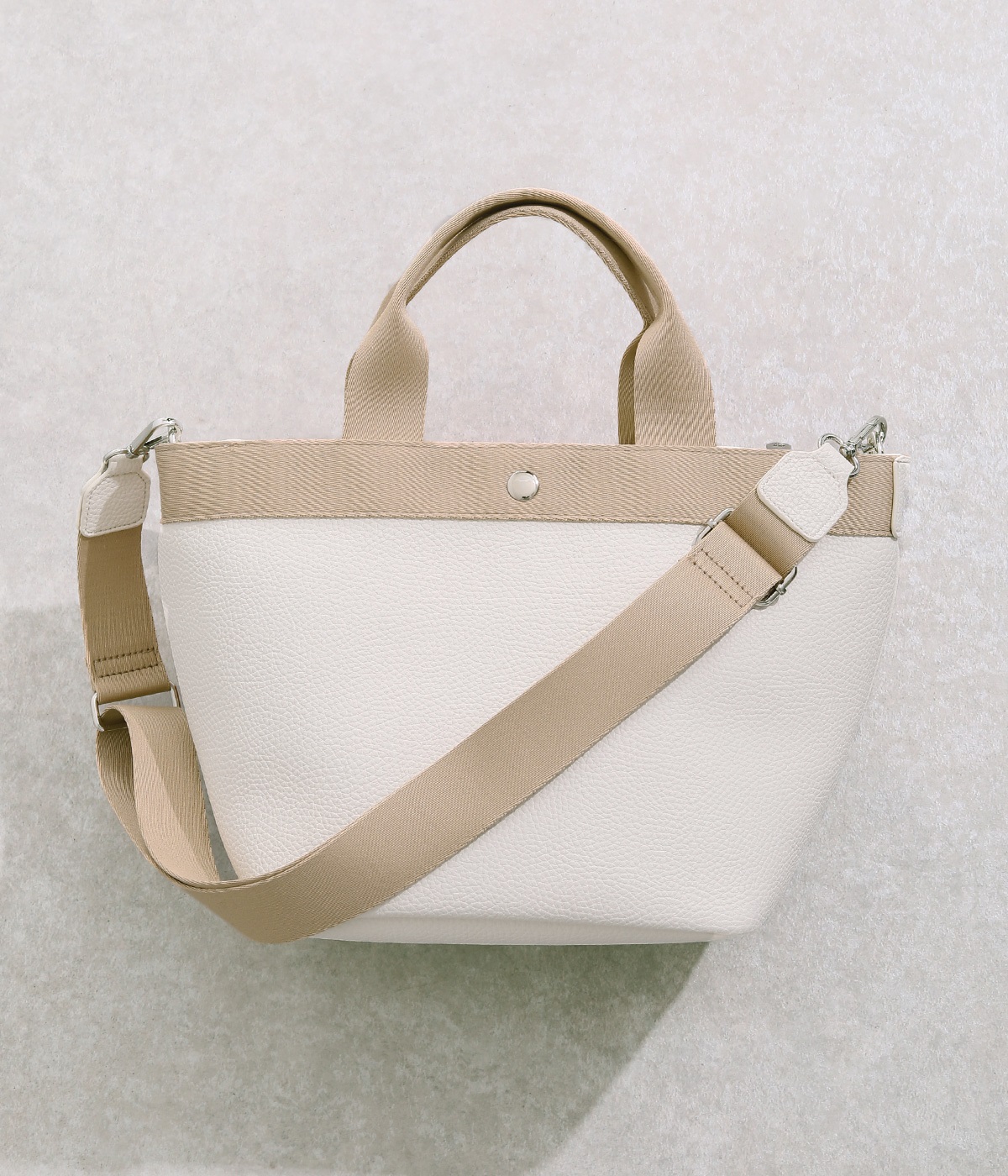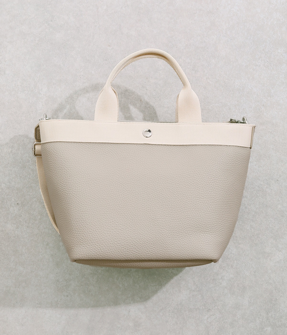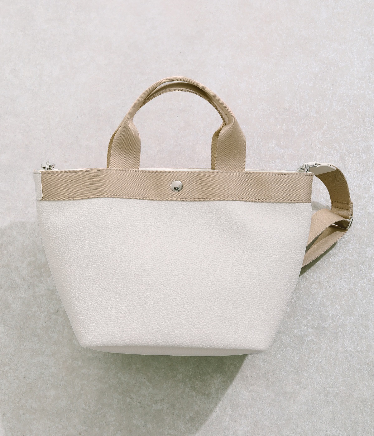 シボ感のあるセミマットな素材が品よく大人な表情を惹きたてます。合成皮革なのでケアしやすく、デイリーに使いやすいのもグッドポイント。