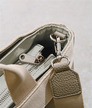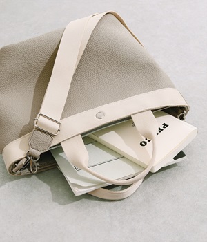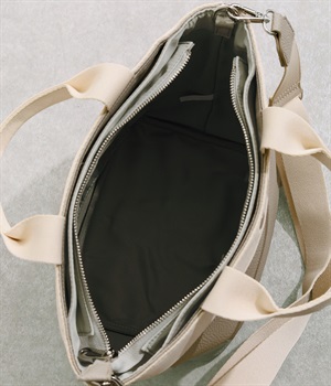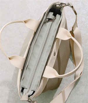 ベーシックなデザインで使い勝手のいい2wayトートバッグです。口元は防犯性に考慮したファスナー仕様ですが、前後にあおりポケットがあるのでサッと取り出したい小物の収納にも便利。ショルダーベルトは取り外し可能です。