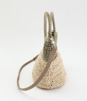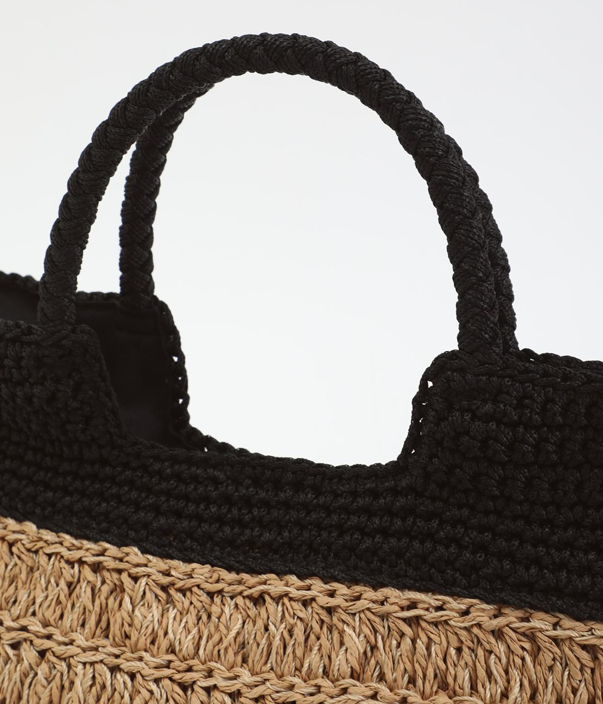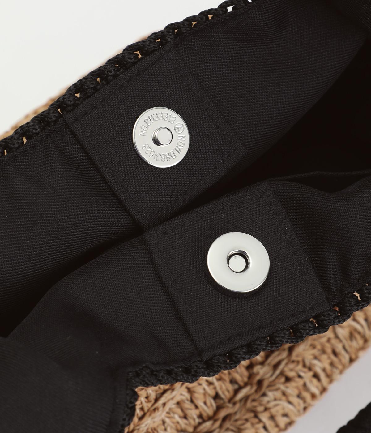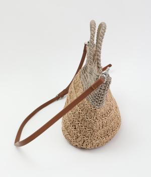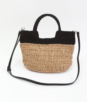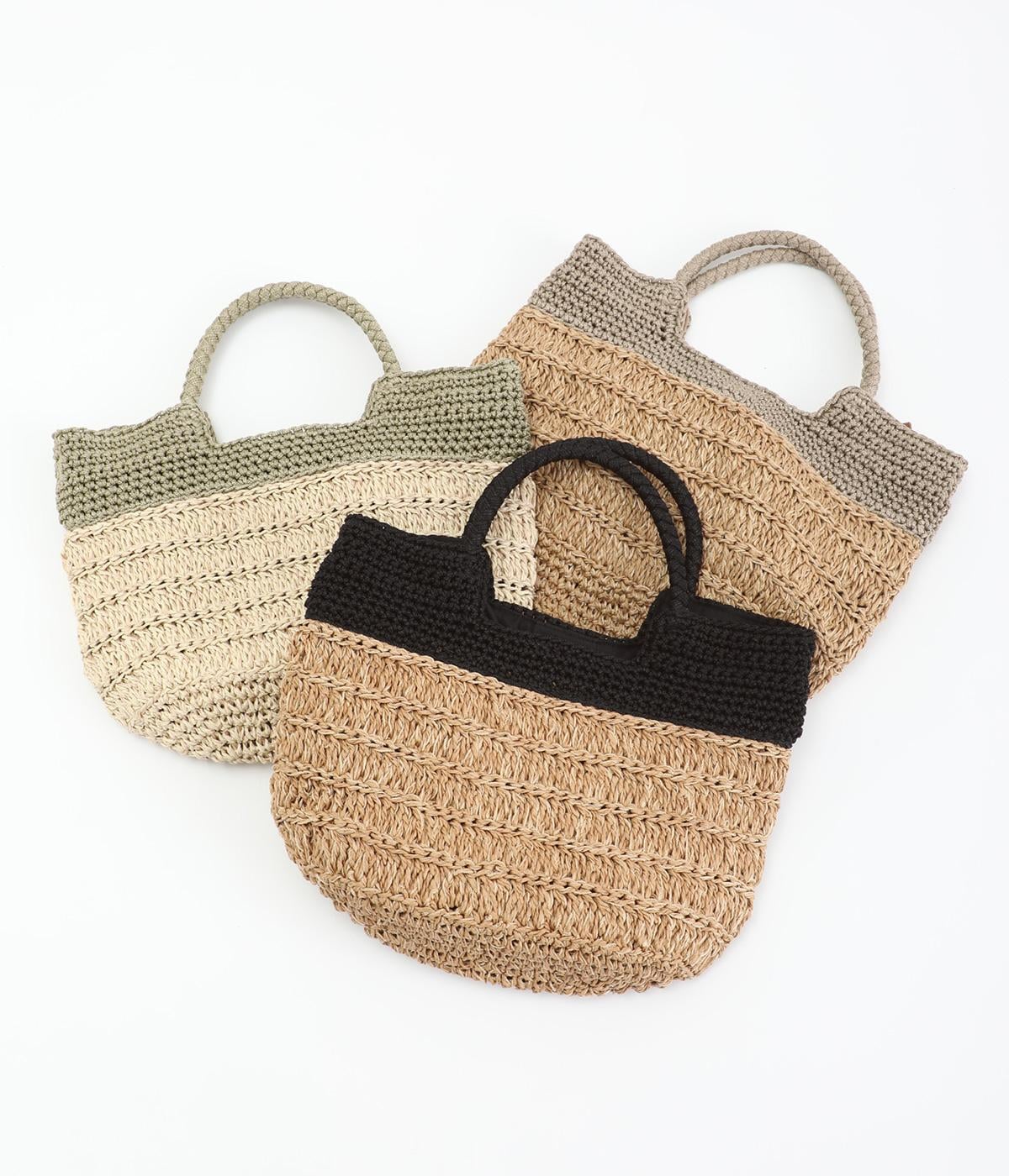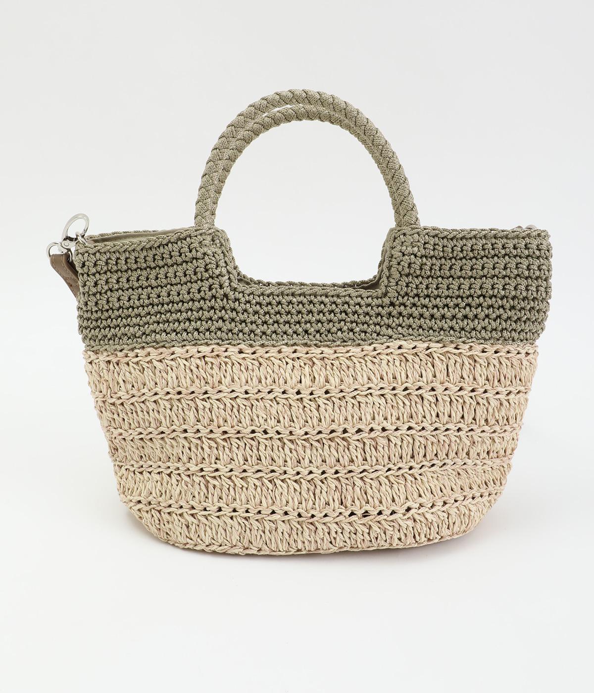 ハンドバッグとしても、ショルダーにもできる2way仕様。柄編みで表情をつけたボディに、配色切り替えでメリハリをつけました。ナチュラルな素材感に、クロッシェならではの立体感が映えます。長財布や500mlボトルが収まるサイズ感で、毎日のコーディネートに取り入れやすいアイテムです。