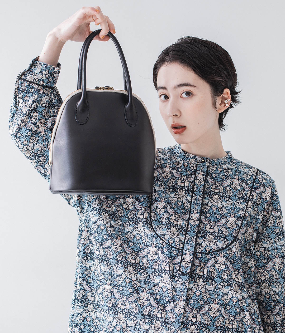 小ぶりで丸みのあるフォルムが上品なボストンバッグです。ファスナー部分がホワイトのテープのため、フォーマルだけでなくTシャツやデニムなどのカジュアルスタイルにもなじむデザインになっています。ブランド独自のオイル調整により、厚みがありながら柔らかでしなやかなレザーを使用。ファスナーはバッグの端から端まで大きく開き、荷物の出し入れもスムーズです。コンパクトに見えますが、長財布はもちろん500mlのペットボトルも収納可能。内側は裏地がしっかりと施され、スマホや鍵を見失わないように小さなポケットも付いています。