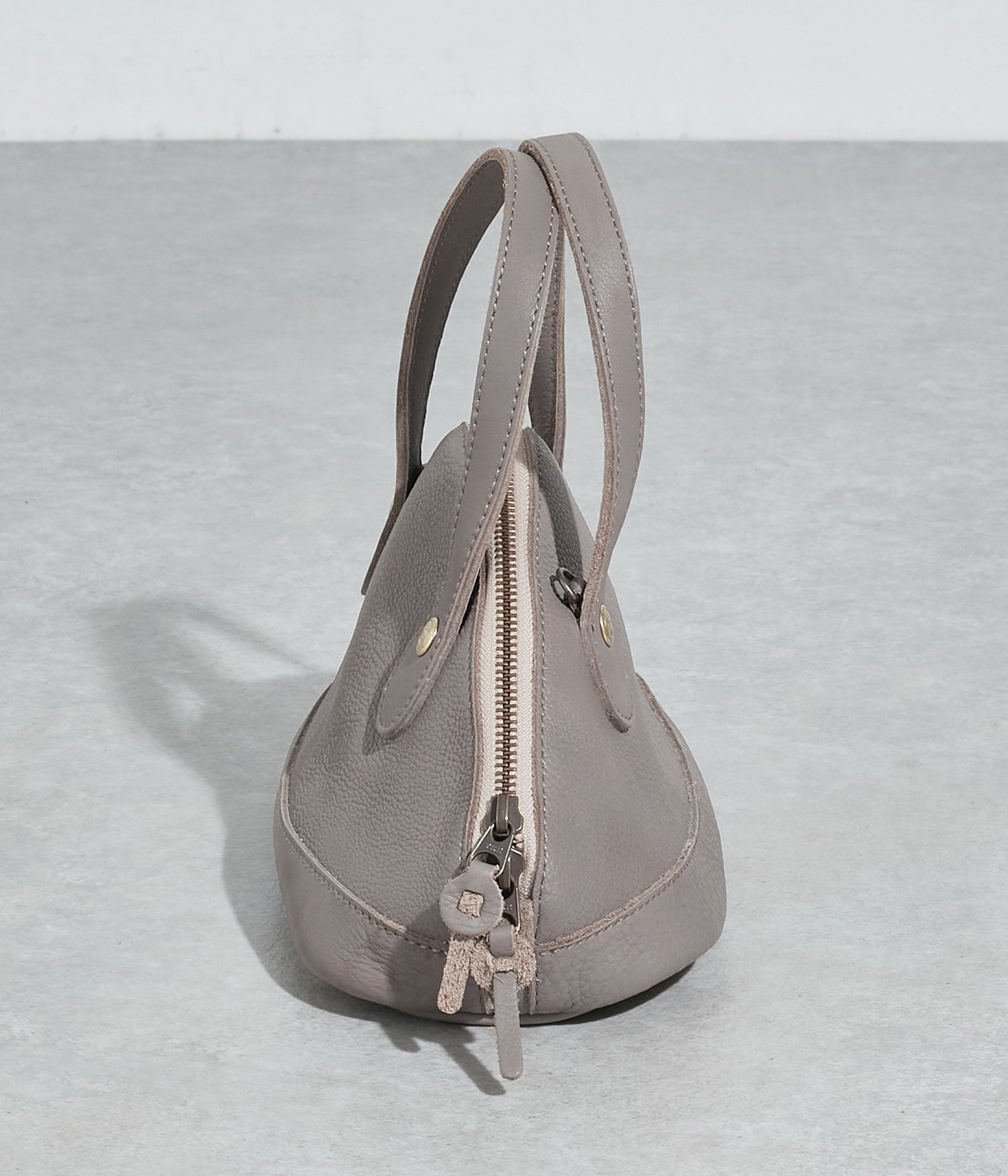 ファスナーが山のようにカーブして、大きく開くシルエットが個性的
