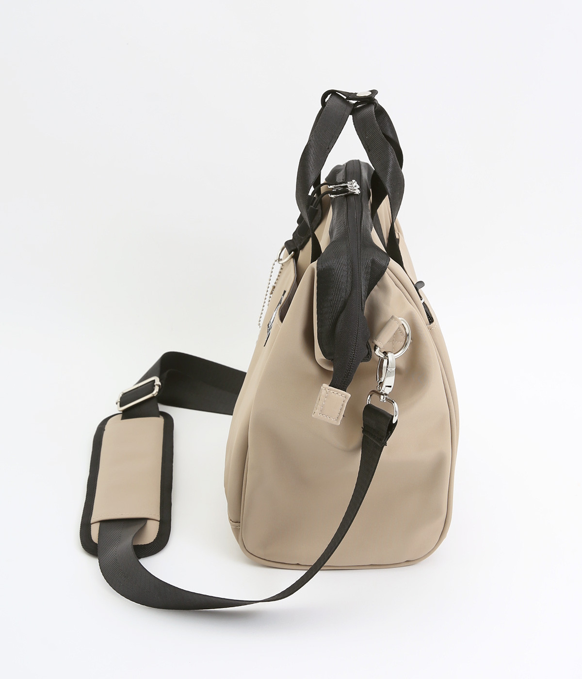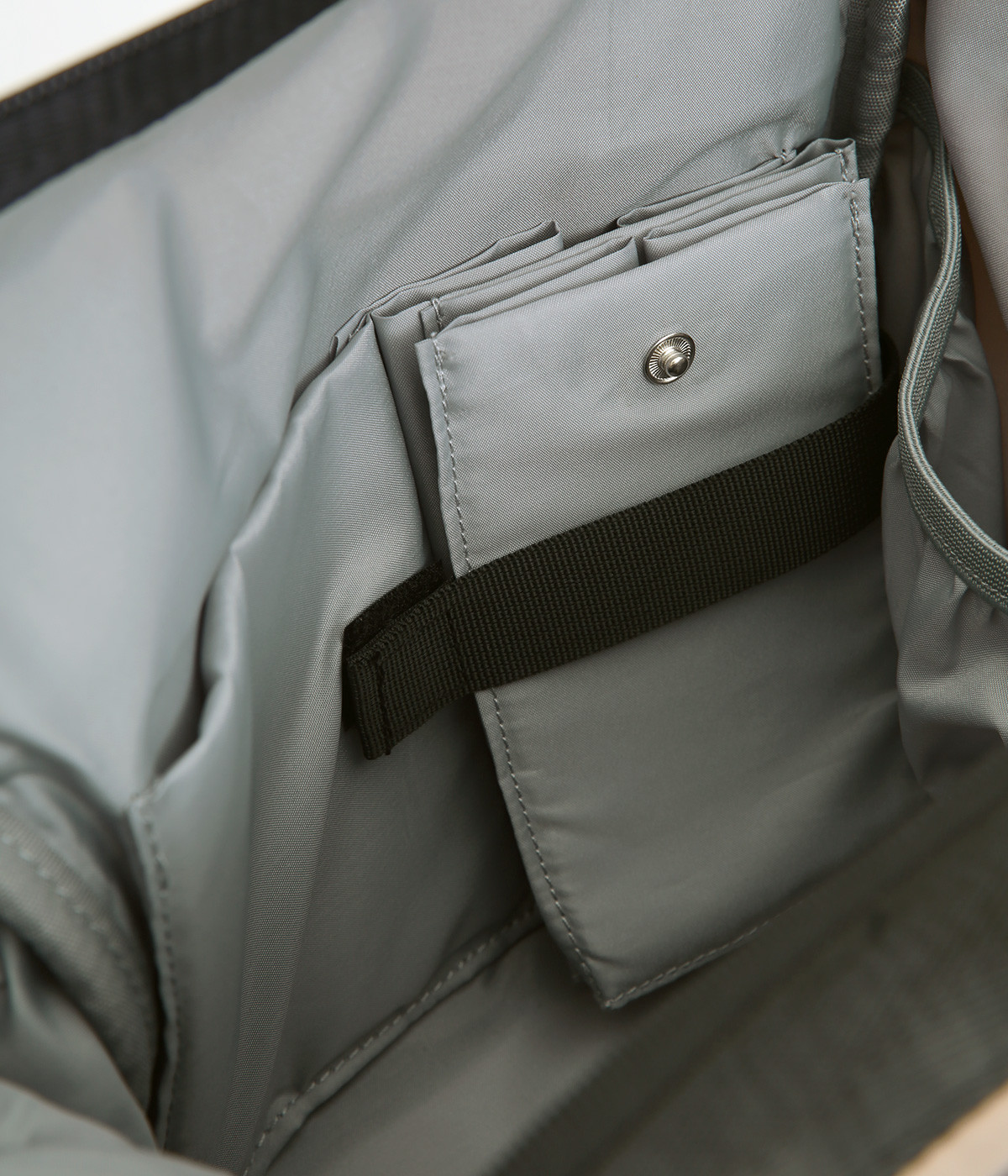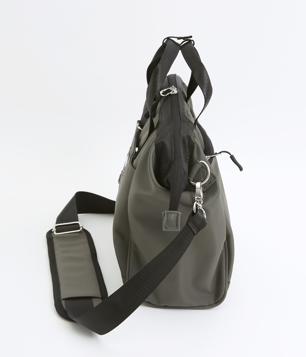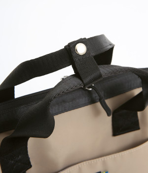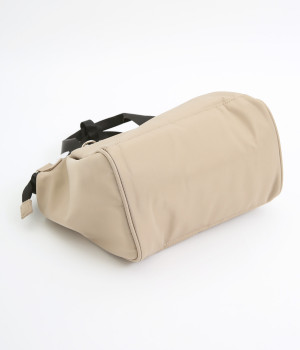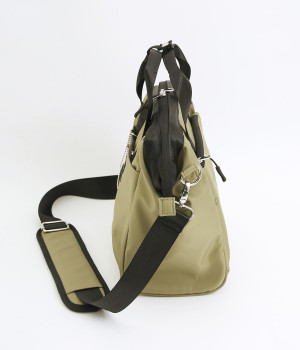 タフな印象を与えるナイロン製でアクティブなまいにちも乗り切ってくれる仕立てです。裏もポリエステル生地で軽くて丈夫なつくりになっています。ほのかな光沢感で大人スタイルにも◎。