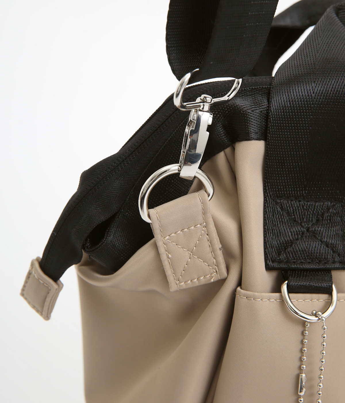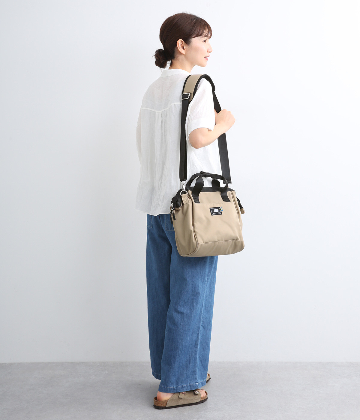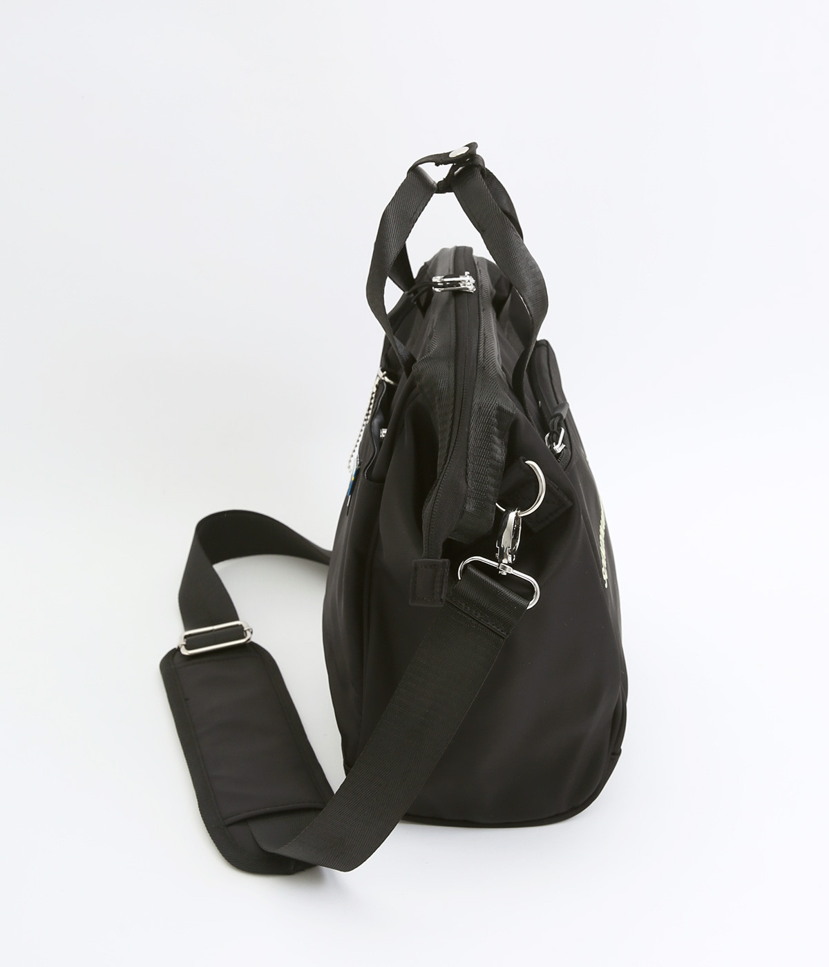 タフな印象を与えるナイロン製でアクティブなまいにちも乗り切ってくれる仕立てです。裏もポリエステル生地で軽くて丈夫なつくりになっています。ほのかな光沢感で大人スタイルにも◎。