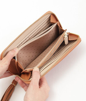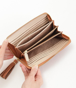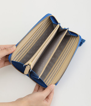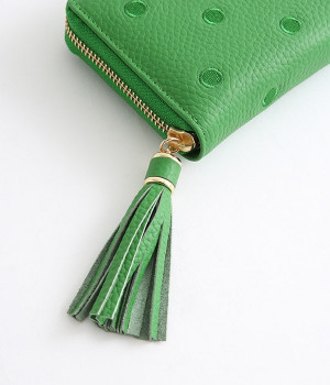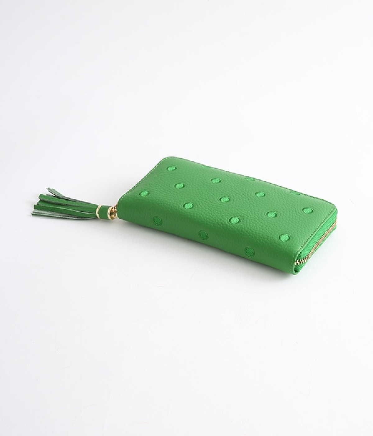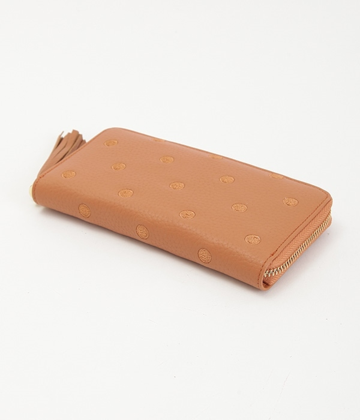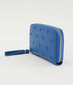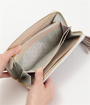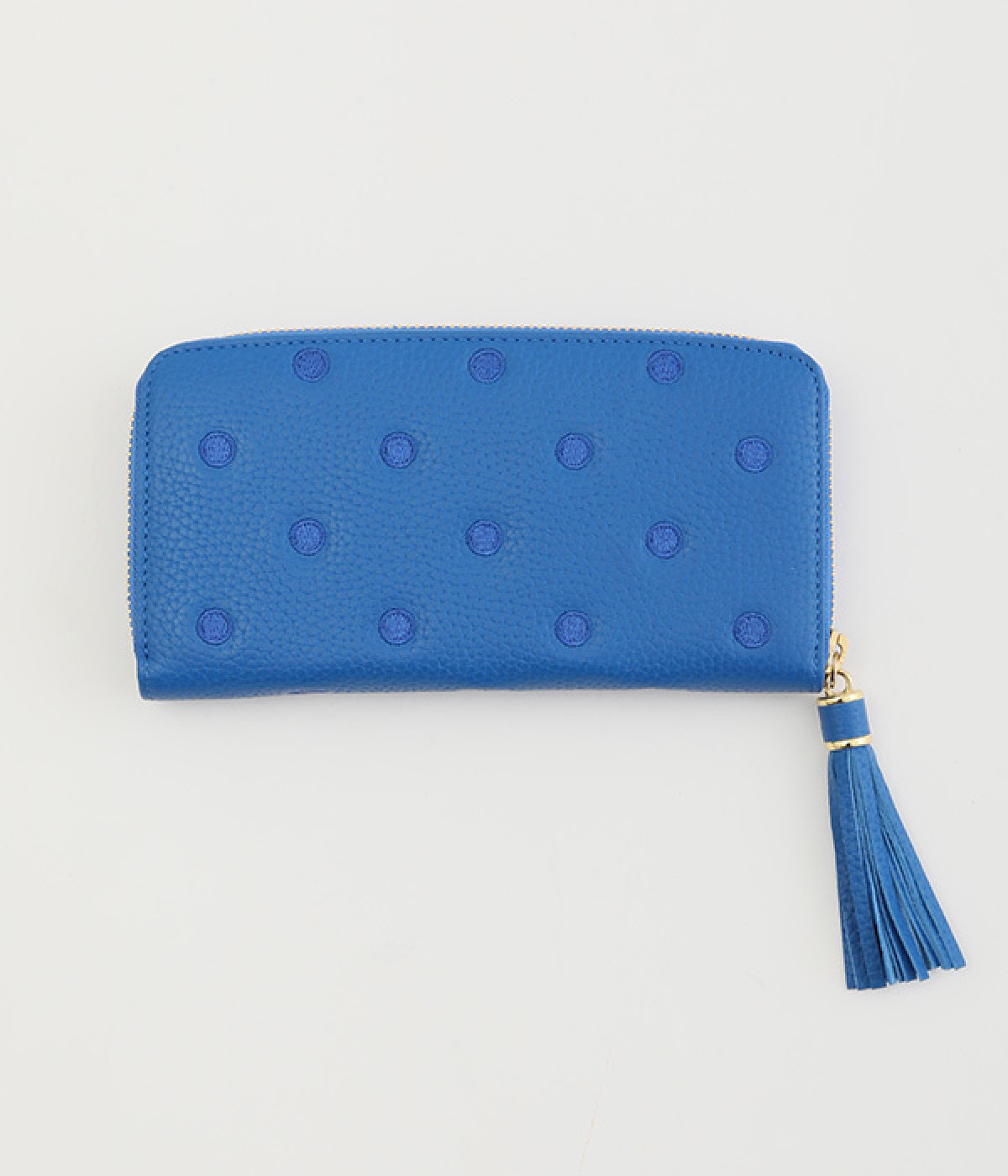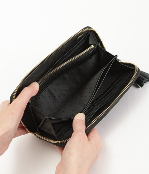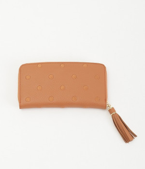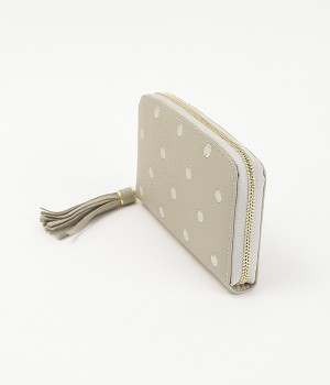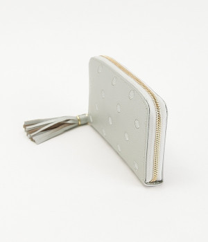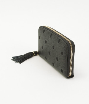 シンプルな中にもフェミニンな要素をさりげなく取り入れる、女性のためのブランドペルケ。牛革に同系色の糸で刺繍でドット柄を施した長財布。カード入れやポケットの仕切りが細かく、整理しやすいお財布です。内側の生地もドット柄。ジッパーについたタッセルもポイント。箱入りなので、プレゼントにも最適です。