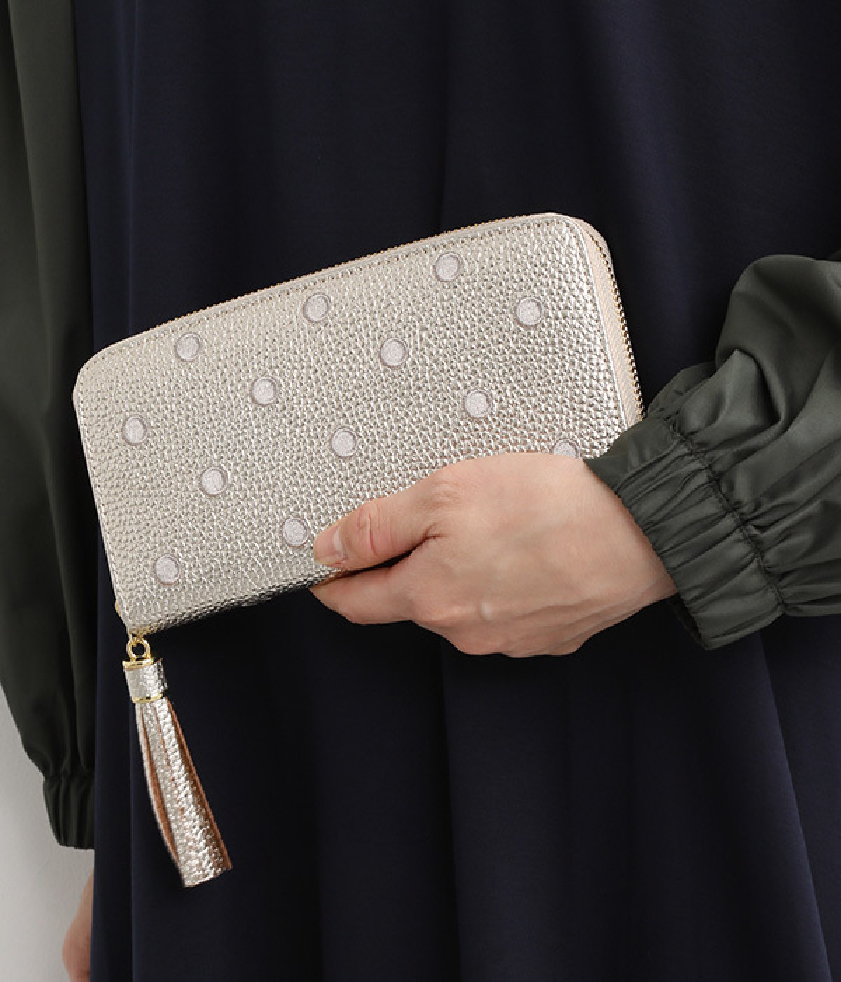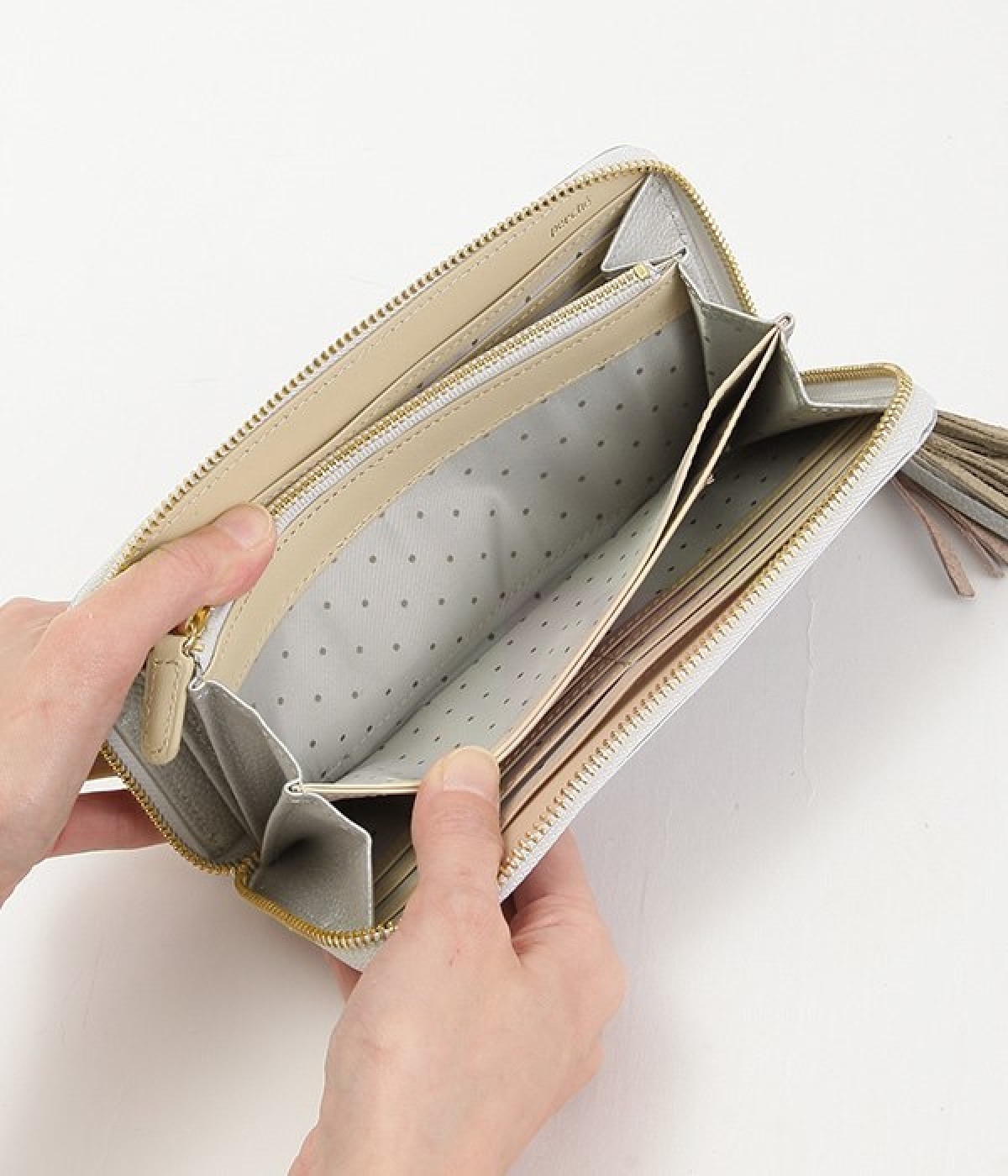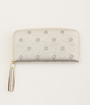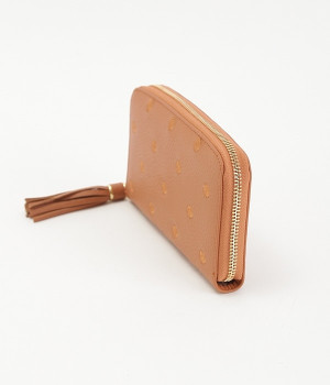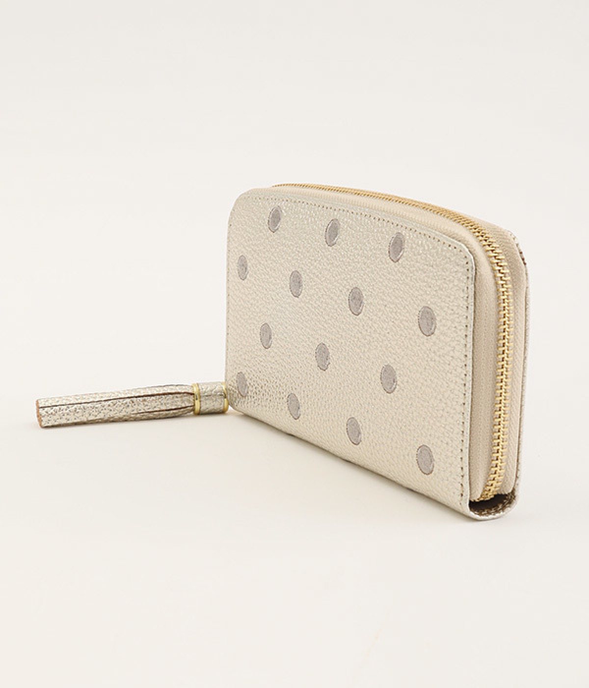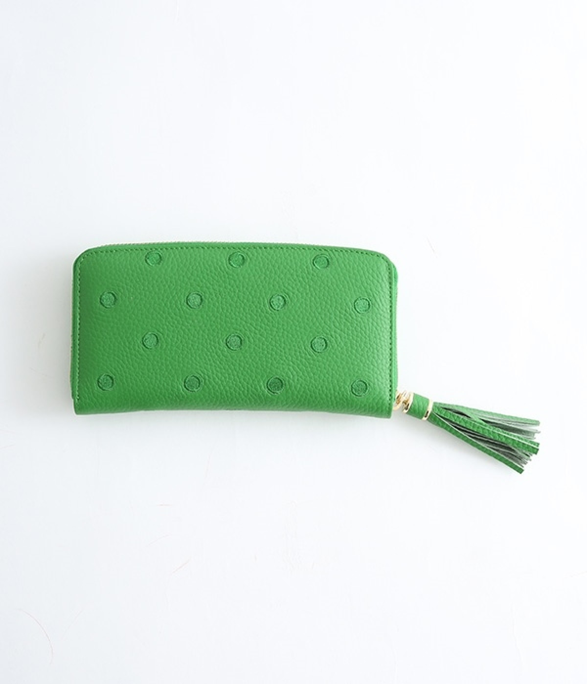 シンプルな中にもフェミニンな要素をさりげなく取り入れる、女性のためのブランドペルケ。牛革に同系色の糸で刺繍でドット柄を施した長財布。カード入れやポケットの仕切りが細かく、整理しやすいお財布です。内側の生地もドット柄。ジッパーについたタッセルもポイント。箱入りなので、プレゼントにも最適です。