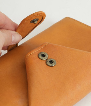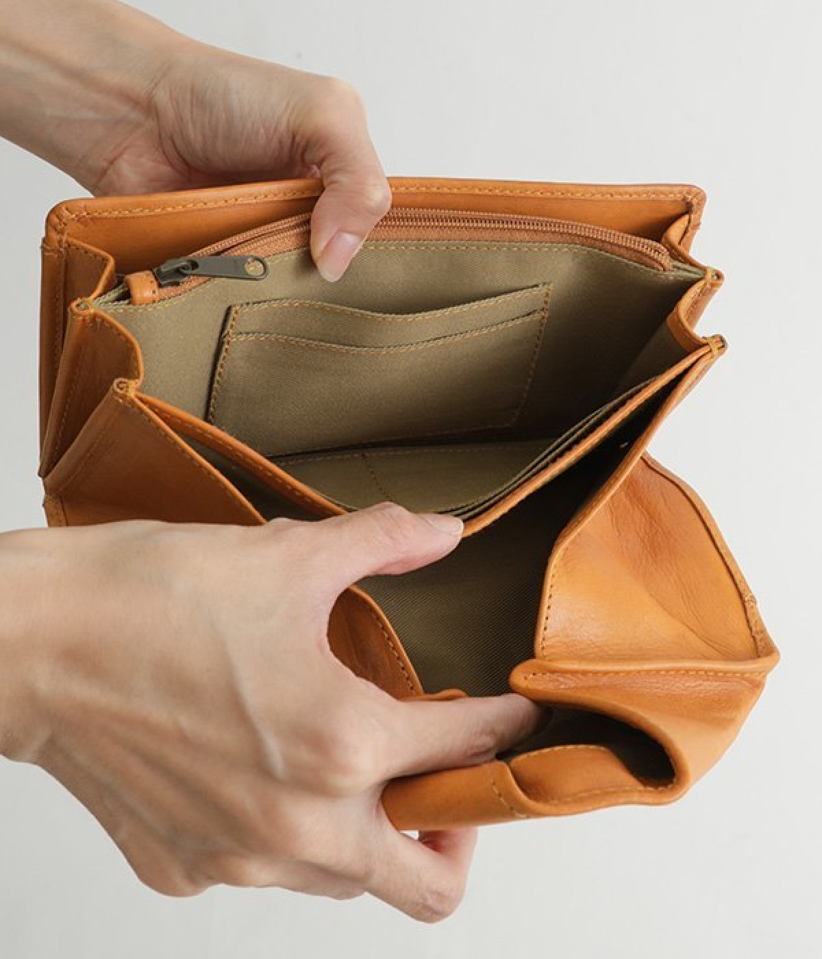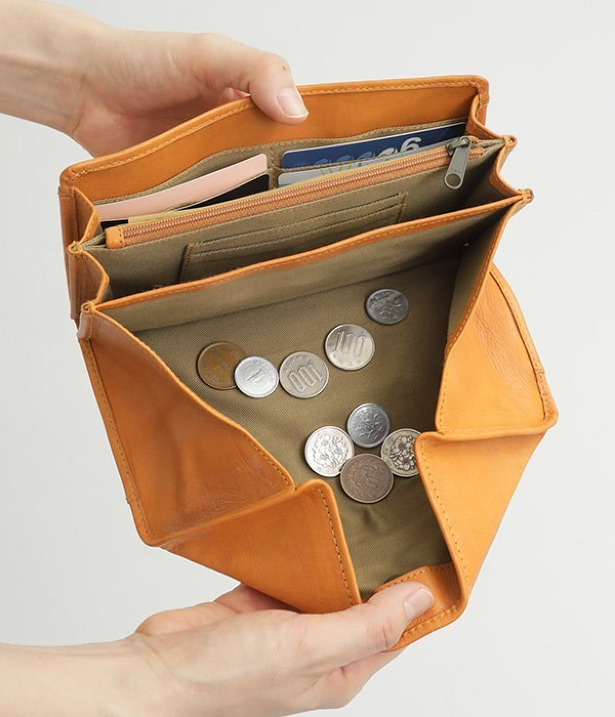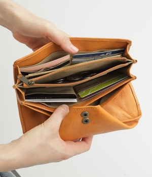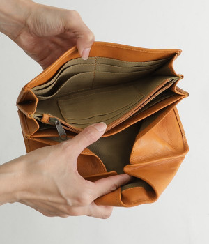 1枚ずつ手で染めては、天日で乾かすなどの工程を何度も繰り返して仕上げたヌメ革を使用した長財布です。そもそもヌメ革は、タンニン(植物の渋)でなめし、人工的に染料や塗料で仕上げないナチュラルレザーのこと。傷やなめしムラなどの失敗を染料で隠せないので、なめす前の原皮から、良い素材が使われているこだわりようです。ナチュラルでいて上質感があり、暖かな手触りをもつ革らしい革です。