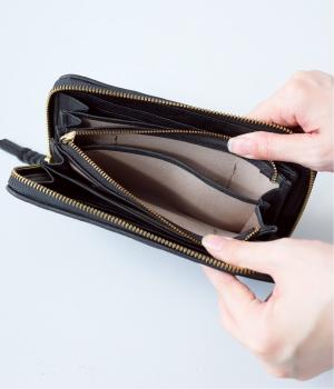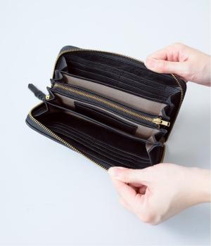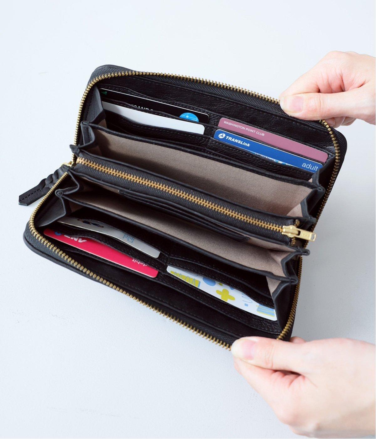 スリムな形のラウンド長財布。カードスロットは充実の14ヵ所、ほかにお札やレシート入れとしても自由に使える収納スペースを6つ完備。小銭などを収納できるファスナーポケットもついて抜群の収納力が魅力です。
