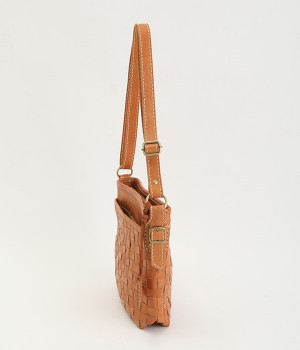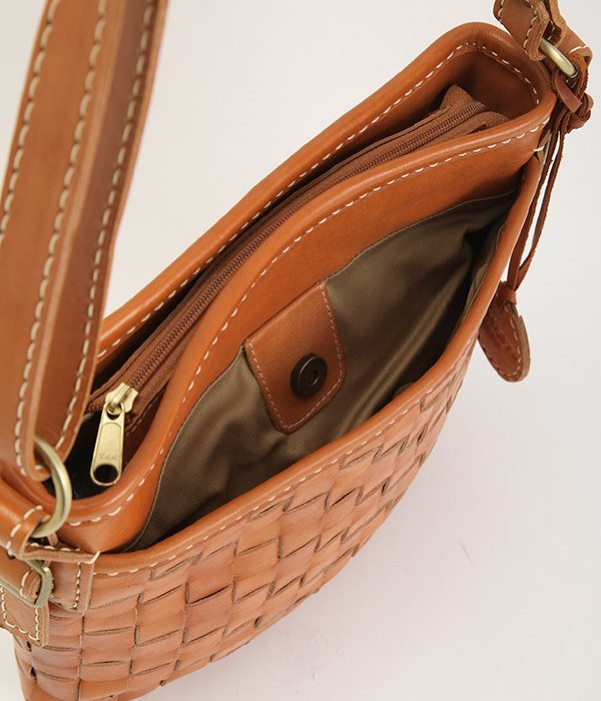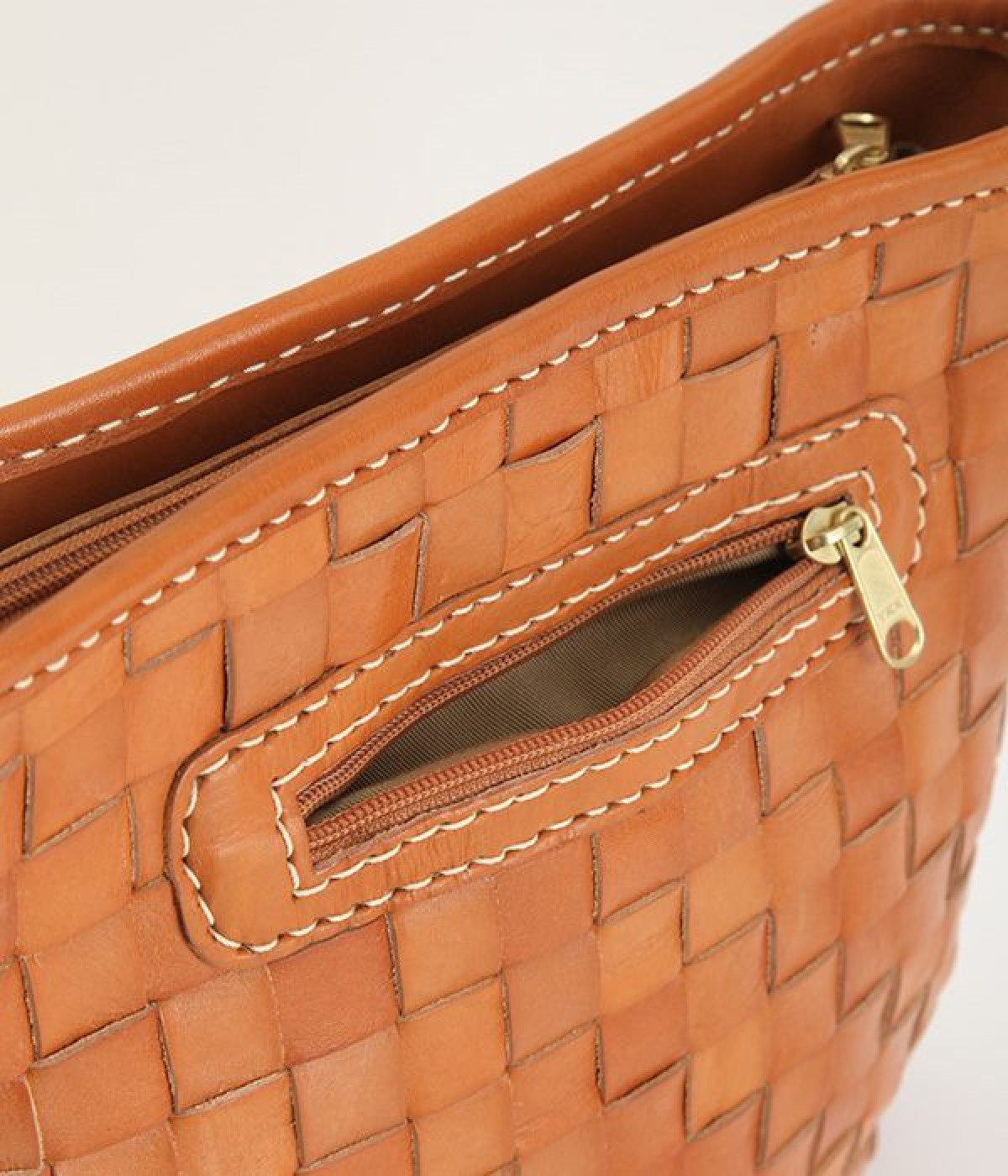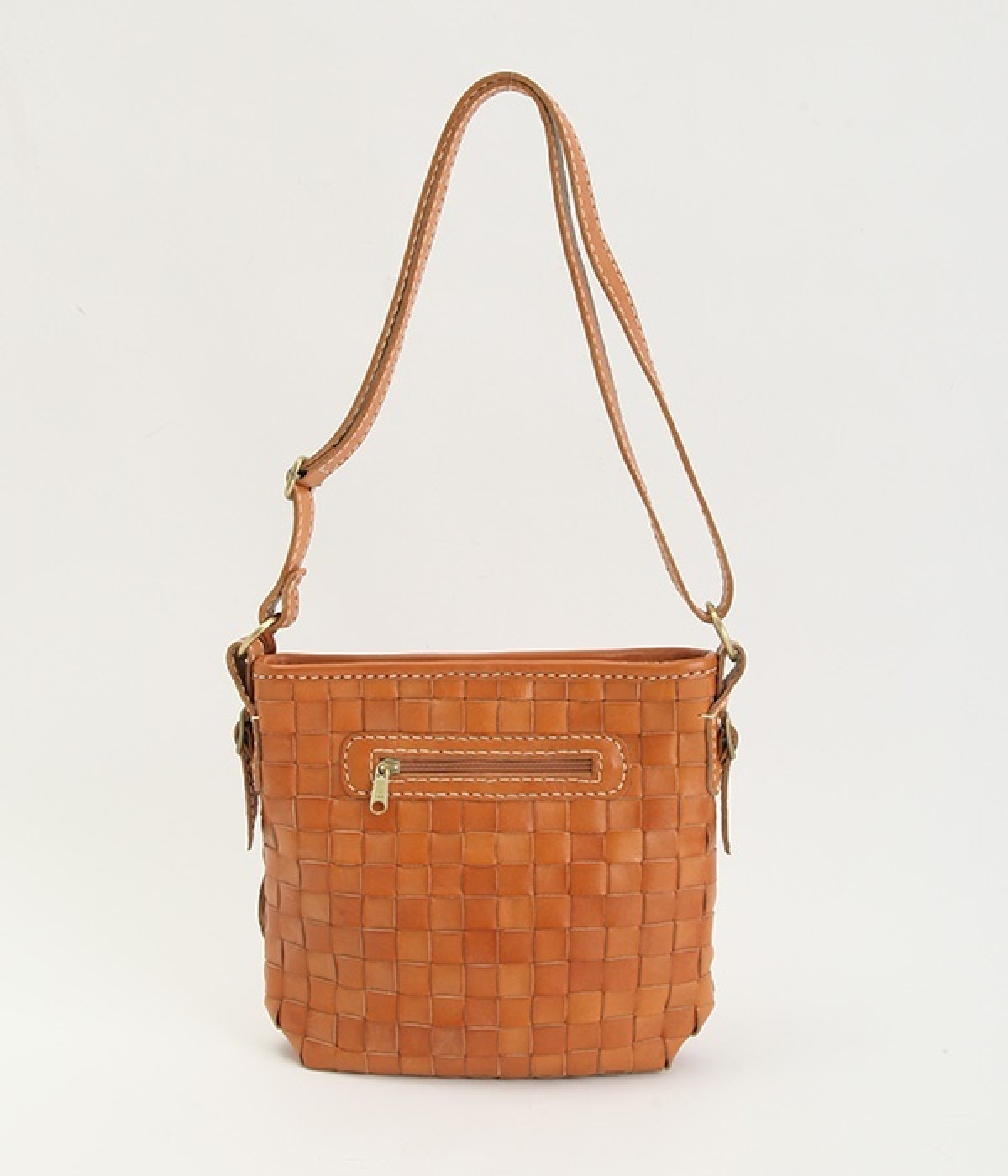 しっかりとしたハリのあるカウレザーを使用したメッシュのショルダーバッグ。職人の手によってメッシュを格子状に1本1本手編みして縫製しています。レザー本来持っている、色の濃淡が使い込むほどに風合いとしてソフトになり、持つ人に馴染んでくるので愛着が湧いてきます。また、外側にも内側にもポケットが付いているので生理整頓して使うことができます。