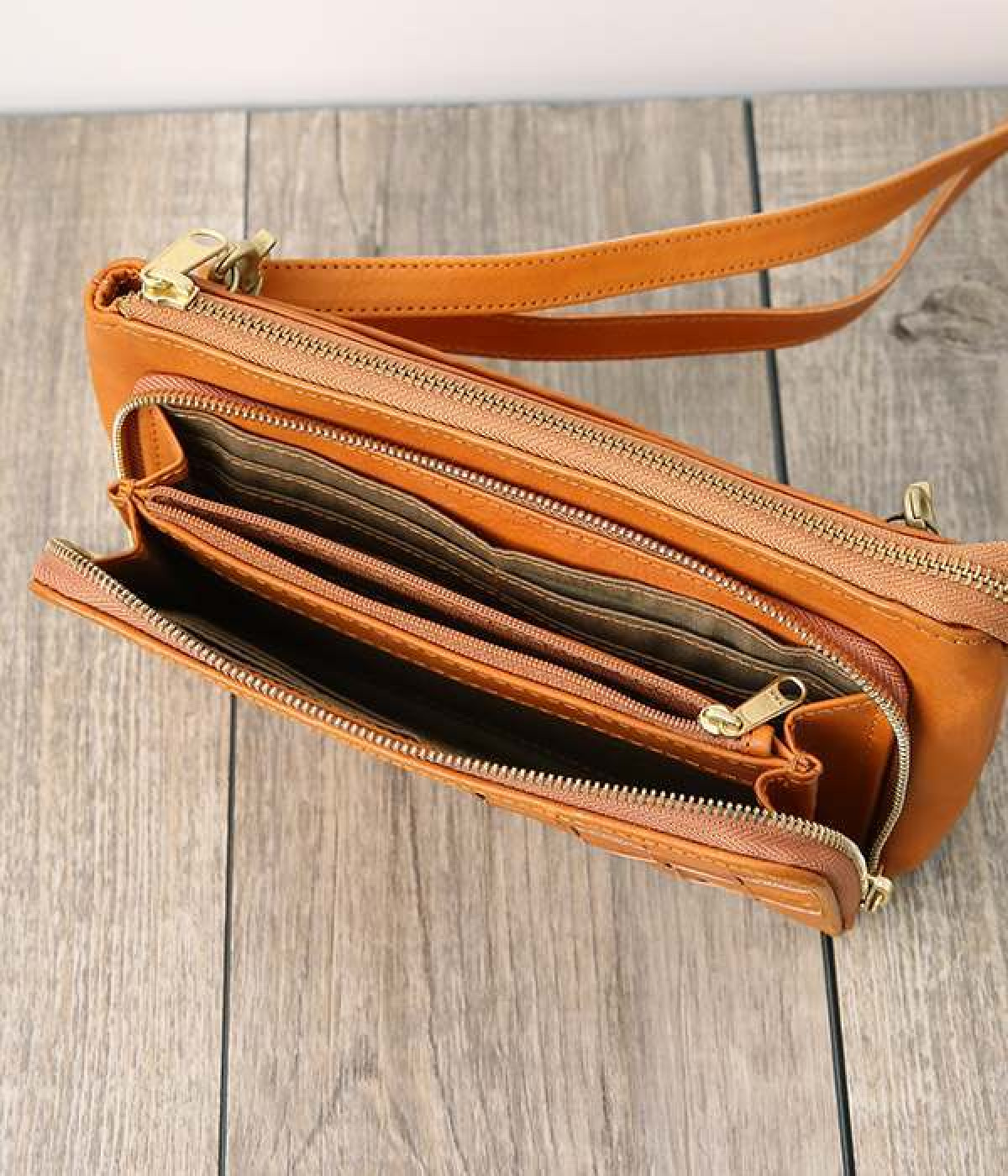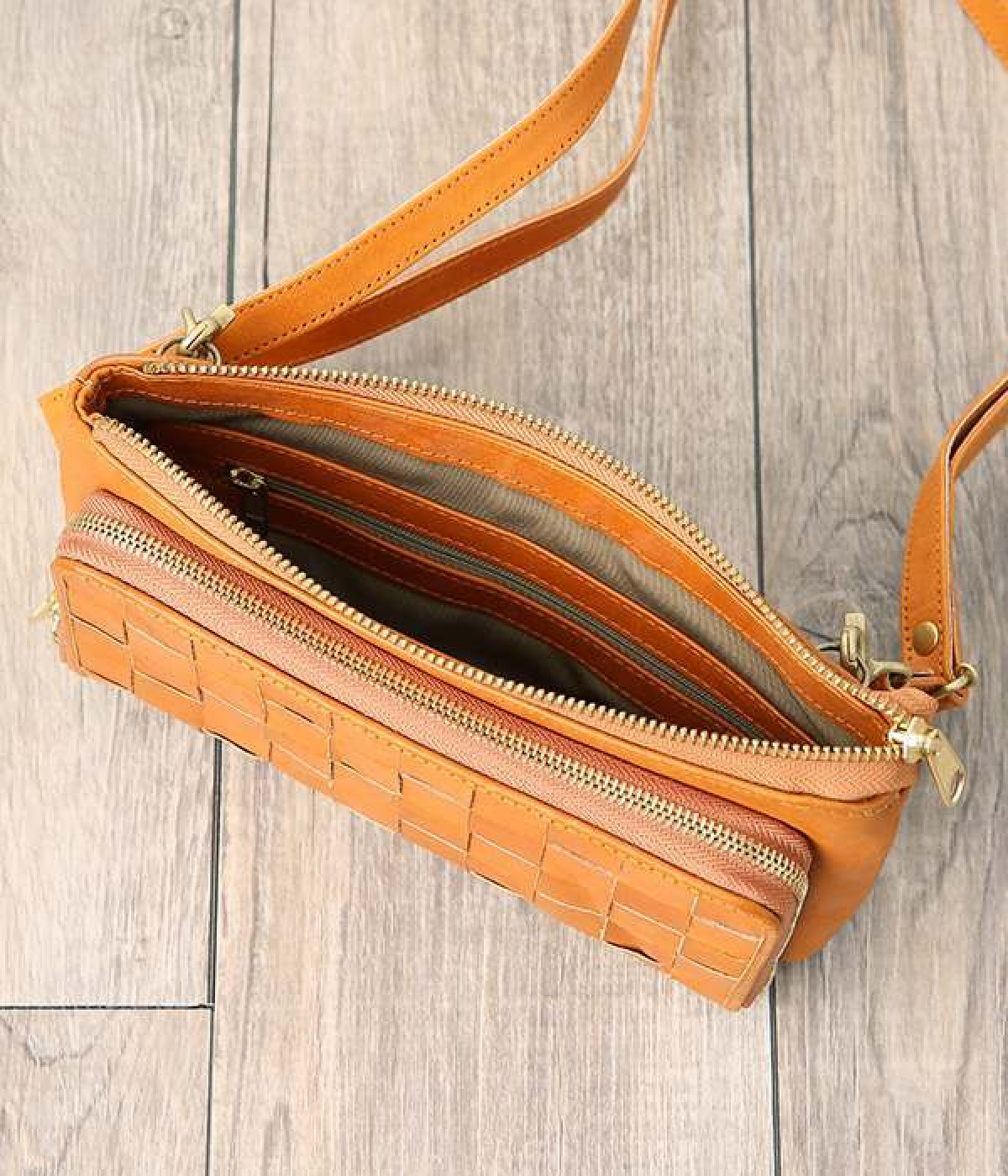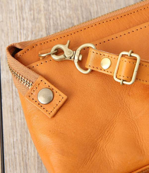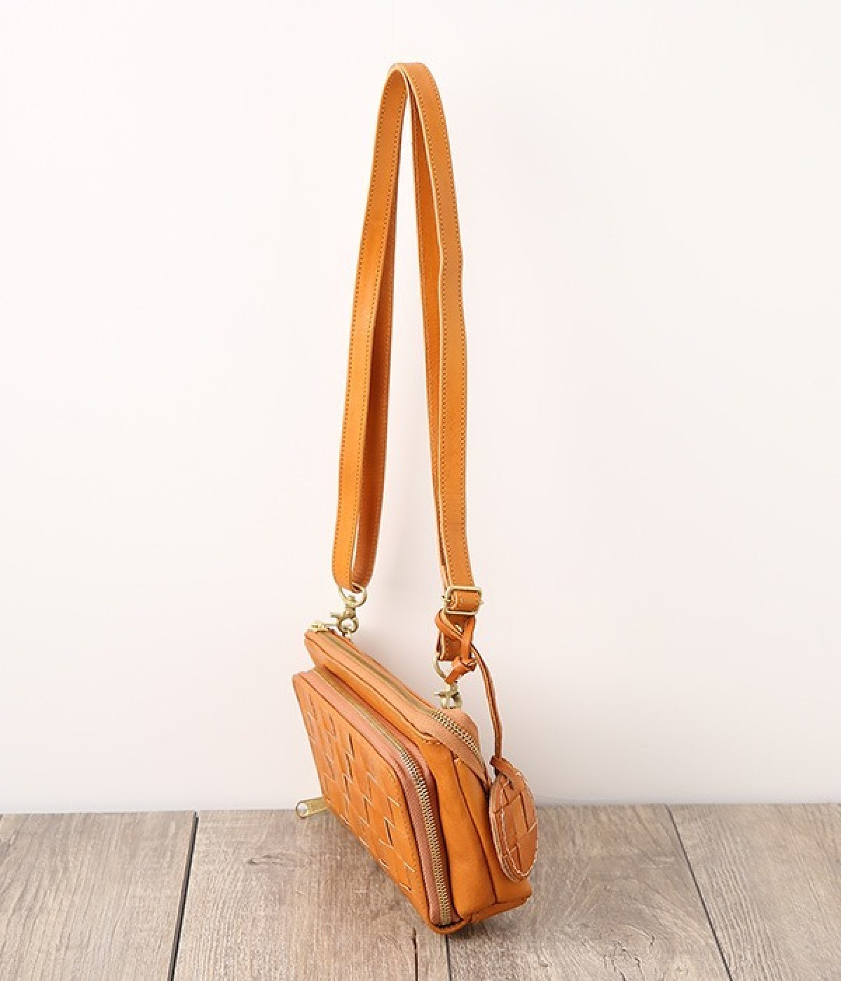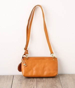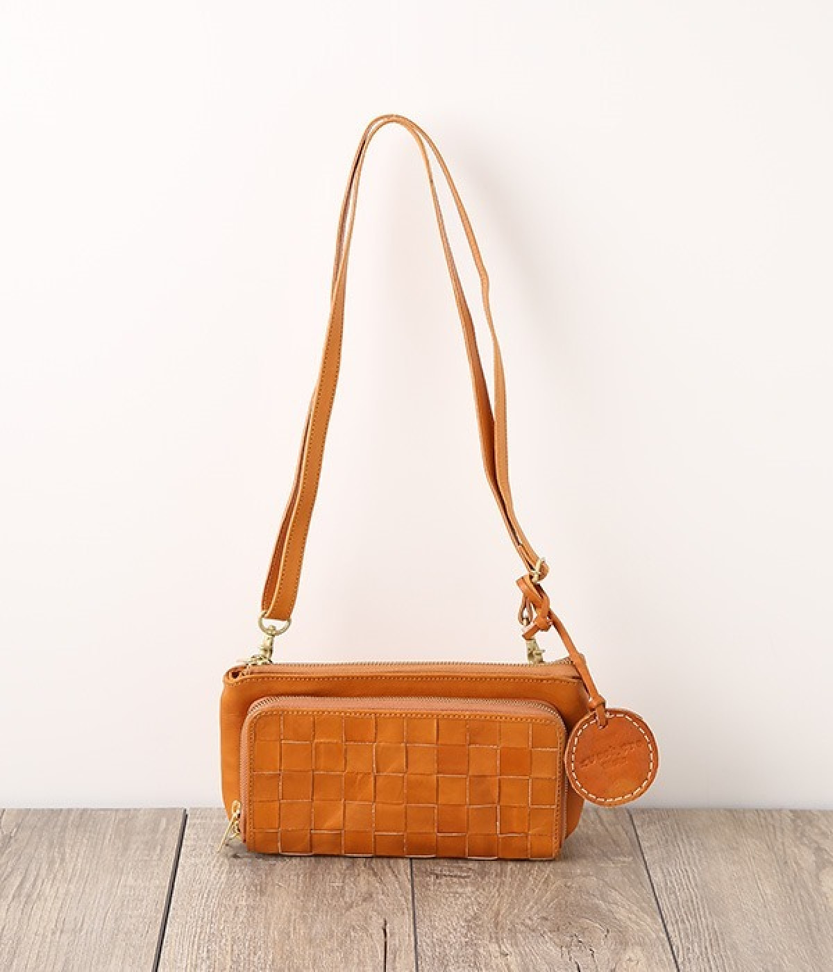 一枚ずつ手で染めては天日で乾かすなどの工程を、何度も繰り返して仕上げたカウレザーで仕立てられたショルダーバッグです。フロントのファスナーポケット部分がお財布になった、一体型のバッグになっています。本体部分もスマートフォンやリップなど必要最低限な物がしっかり入るので、ちょっとしたお出掛けや旅先でも大活躍。ナチュラルながらもこなれ感のある雰囲気が魅力的で、使うほどに手に馴染み味わいが深まる、永く愛用できるアイテムです。ショルダーベルトは取り外し可能です。