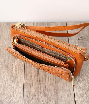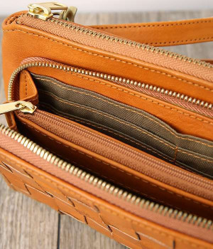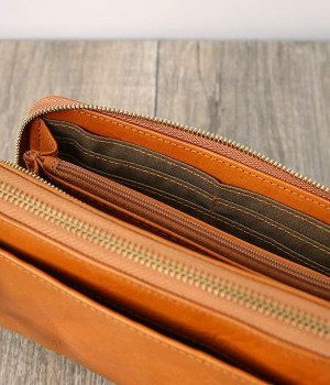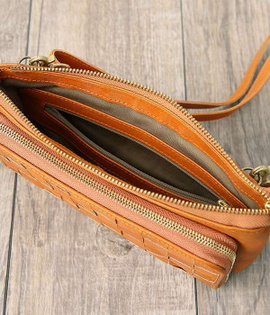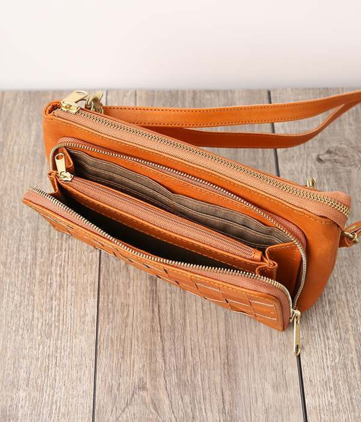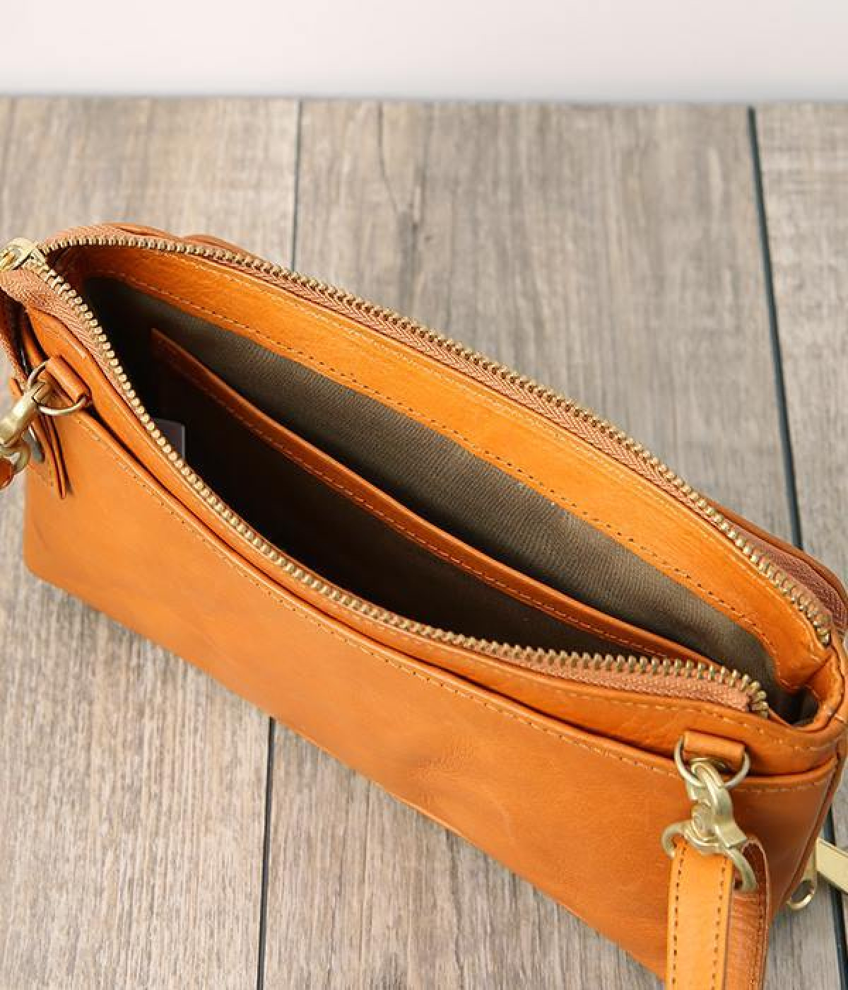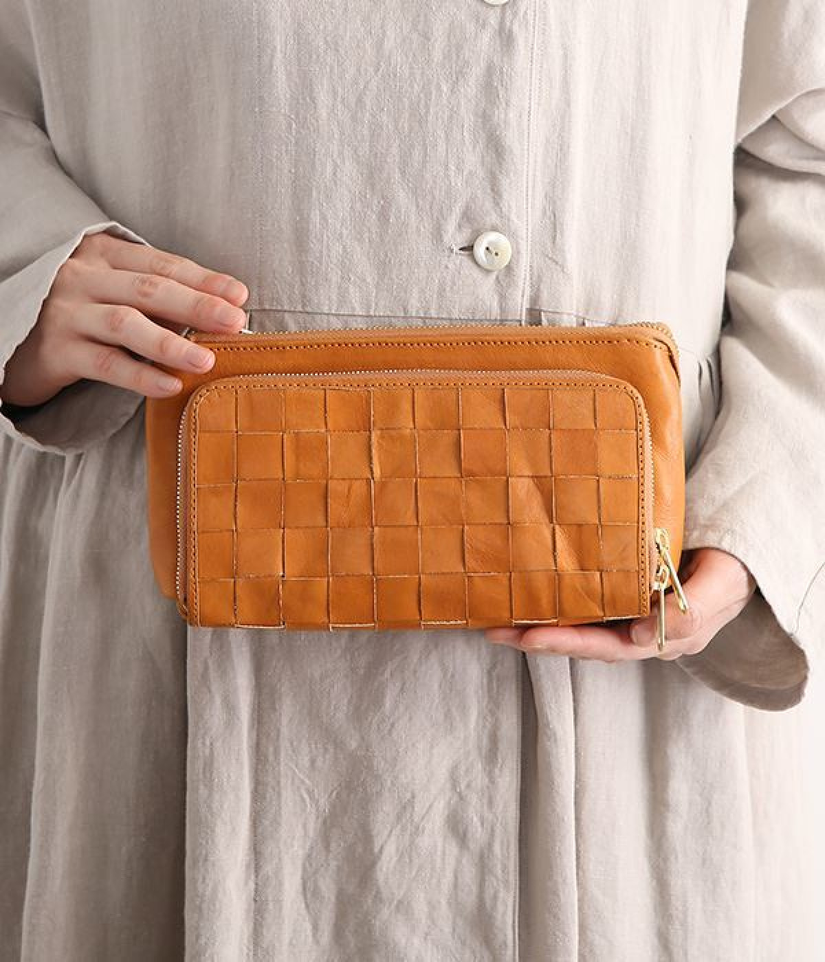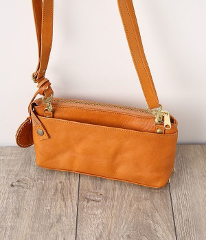 一枚ずつ手で染めては天日で乾かすなどの工程を、何度も繰り返して仕上げたカウレザーで仕立てられたショルダーバッグです。フロントのファスナーポケット部分がお財布になった、一体型のバッグになっています。本体部分もスマートフォンやリップなど必要最低限な物がしっかり入るので、ちょっとしたお出掛けや旅先でも大活躍。ナチュラルながらもこなれ感のある雰囲気が魅力的で、使うほどに手に馴染み味わいが深まる、永く愛用できるアイテムです。ショルダーベルトは取り外し可能です。