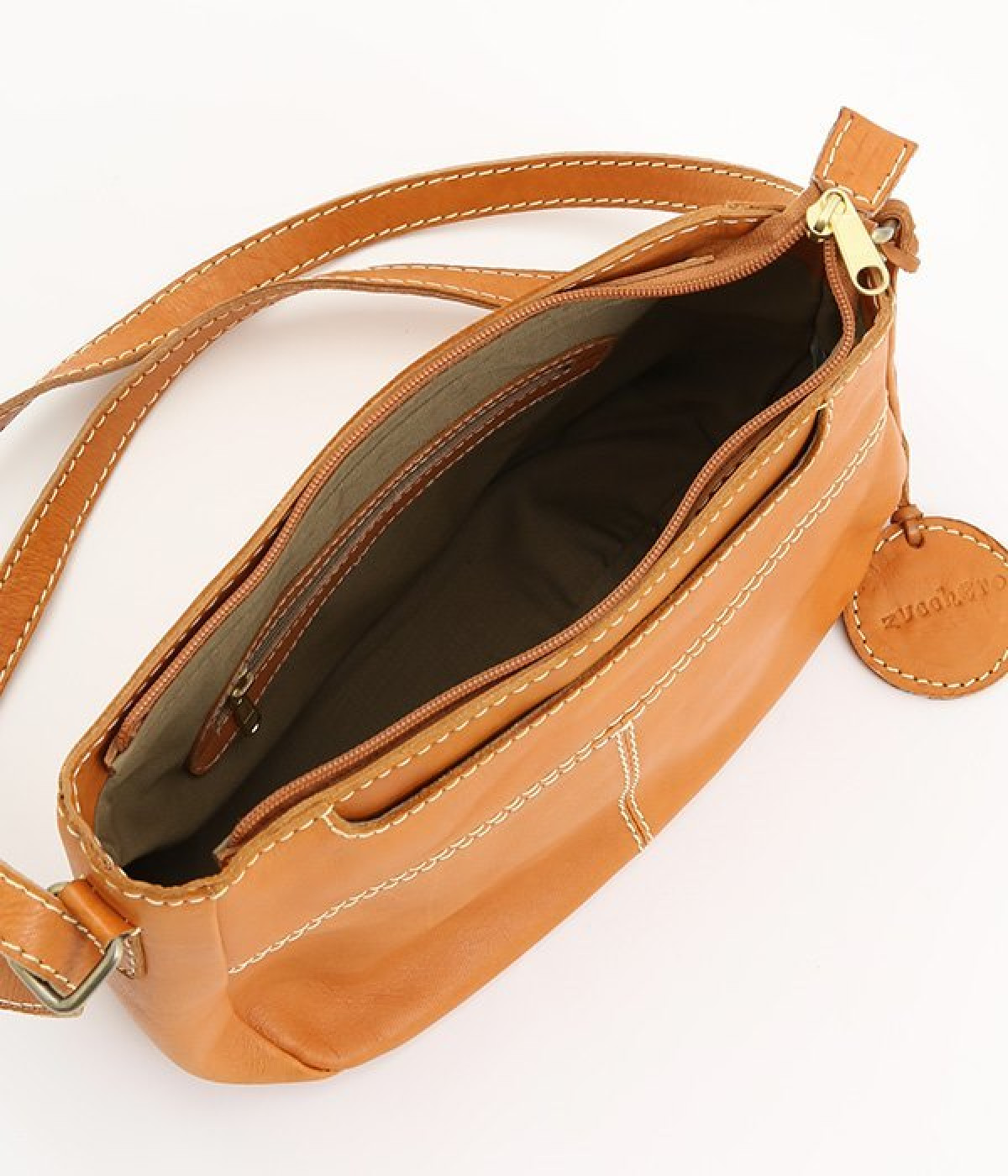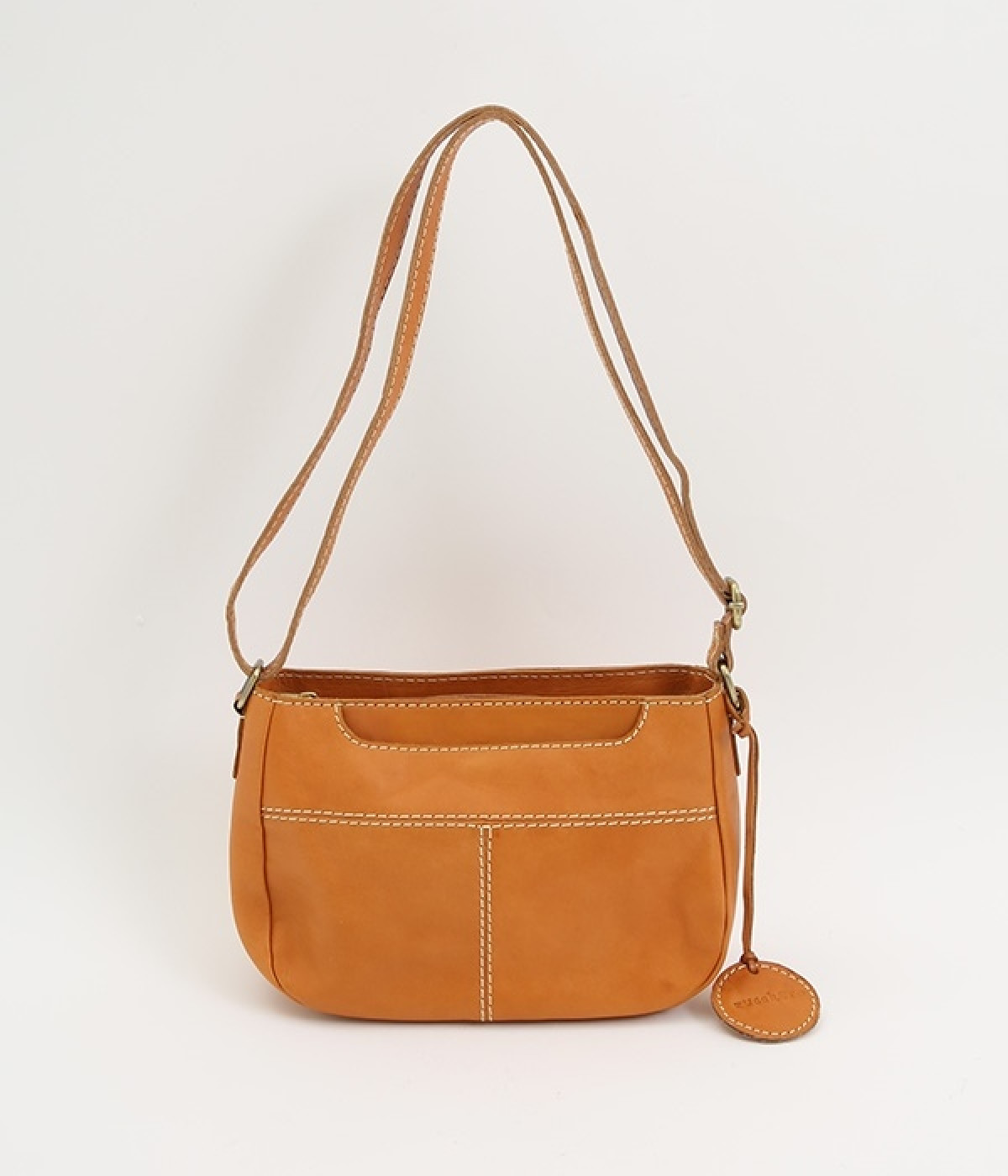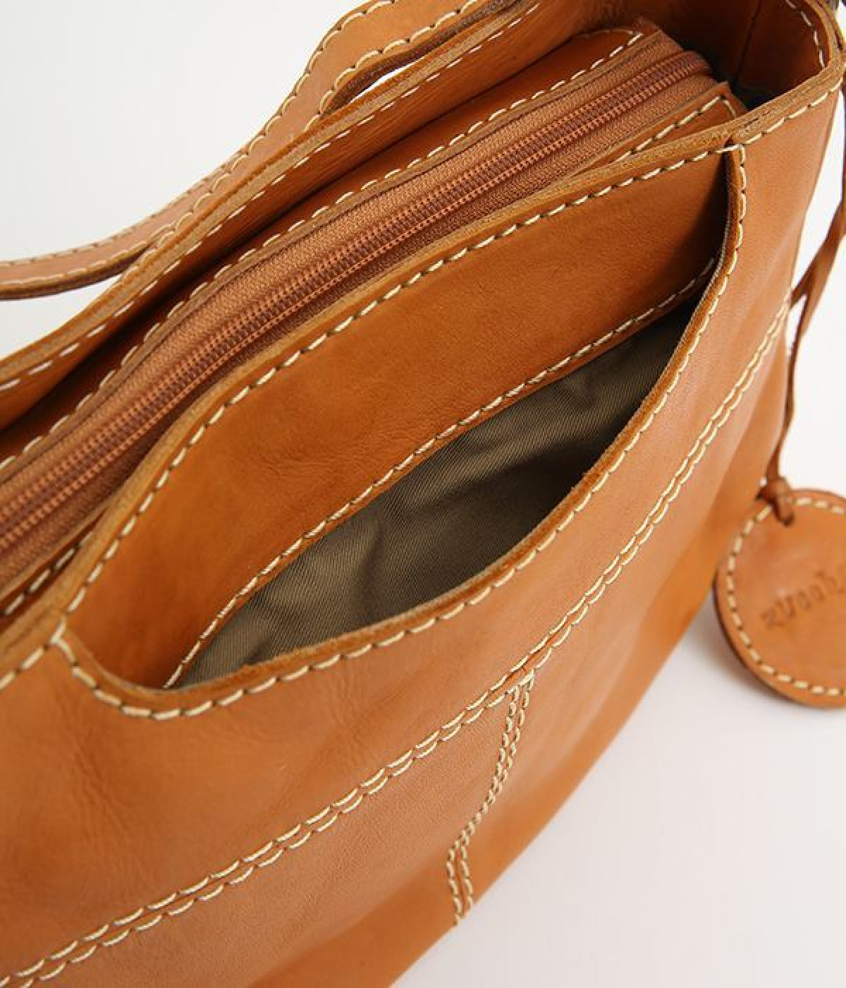 しっとりとした質感のカウレザーに配色違いのステッチがアクセントになるショルダーバッグです。ちょっとしたお出かけにぴったりなサイズはデイリーユースにぴったり。ファスナー開閉で荷物を取り出しやすく、使い勝手も◎。ショルダー部分は長さ調節が可能です。
