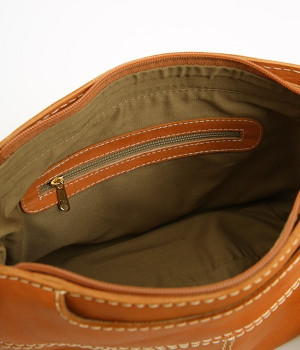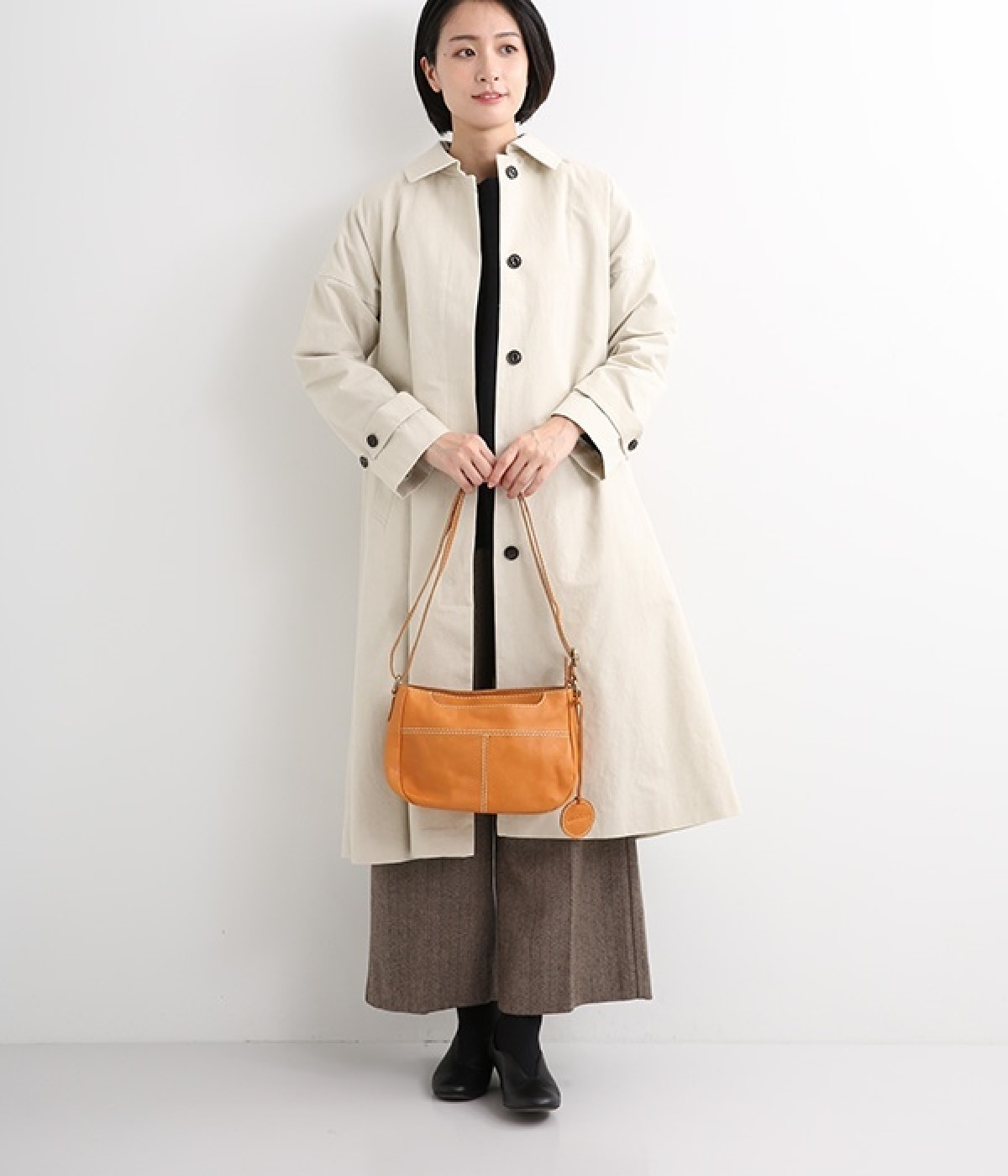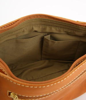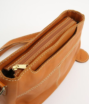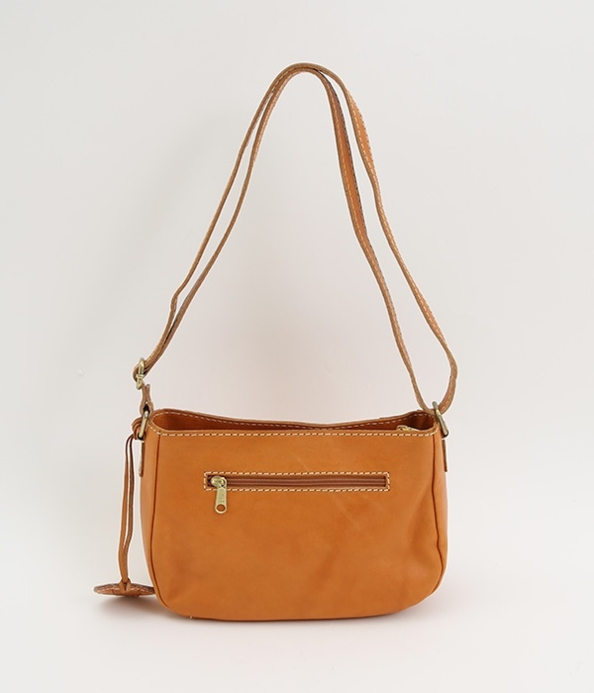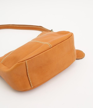 しっとりとした質感のカウレザーに配色違いのステッチがアクセントになるショルダーバッグです。ちょっとしたお出かけにぴったりなサイズはデイリーユースにぴったり。ファスナー開閉で荷物を取り出しやすく、使い勝手も◎。ショルダー部分は長さ調節が可能です。