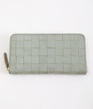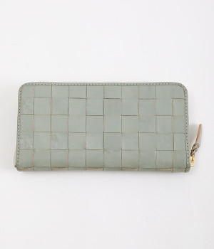 丁寧に手編みで縫製したメッシュデザインの長財布です。ヌメ革に塗料を吹きかけ、ドラム(太鼓)でまわすことにより、アンティークのような風合いを表現しました。センターに小銭入れを配置し、その両サイドに多数のカード入れ&札入れをセットした利便性が考えられたつくり。ジャバラ式で大きく開き、中身を取り出しやすく見渡しやすいのが特徴です。