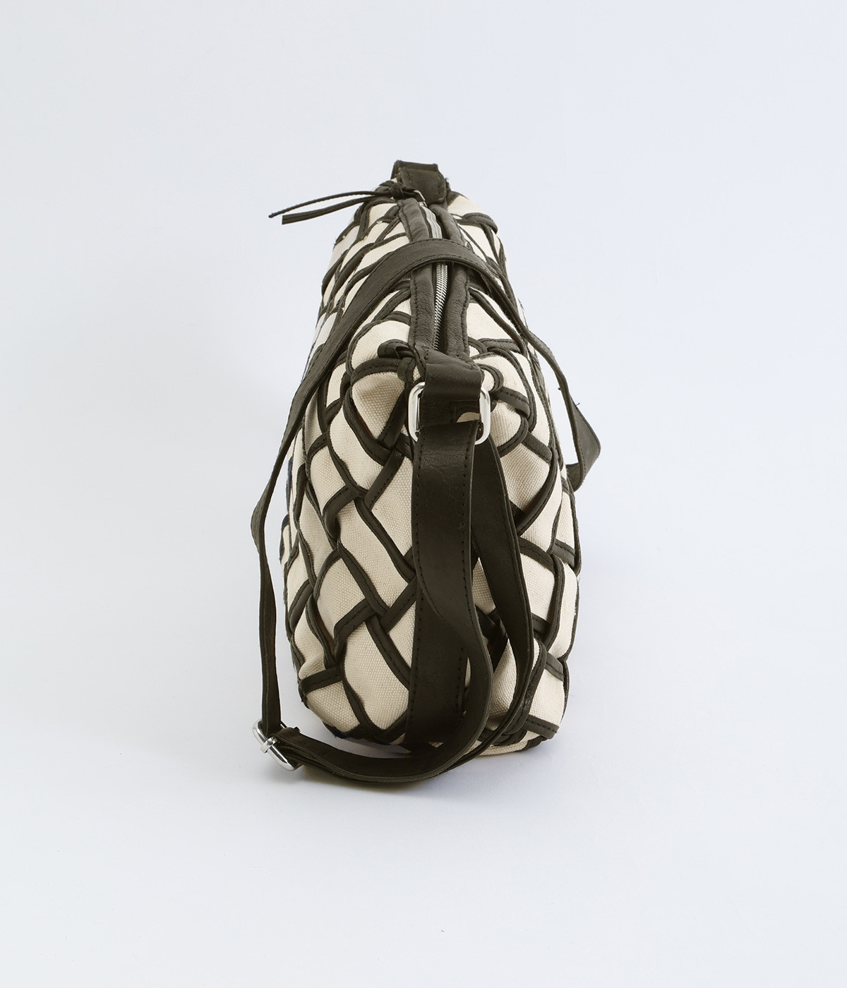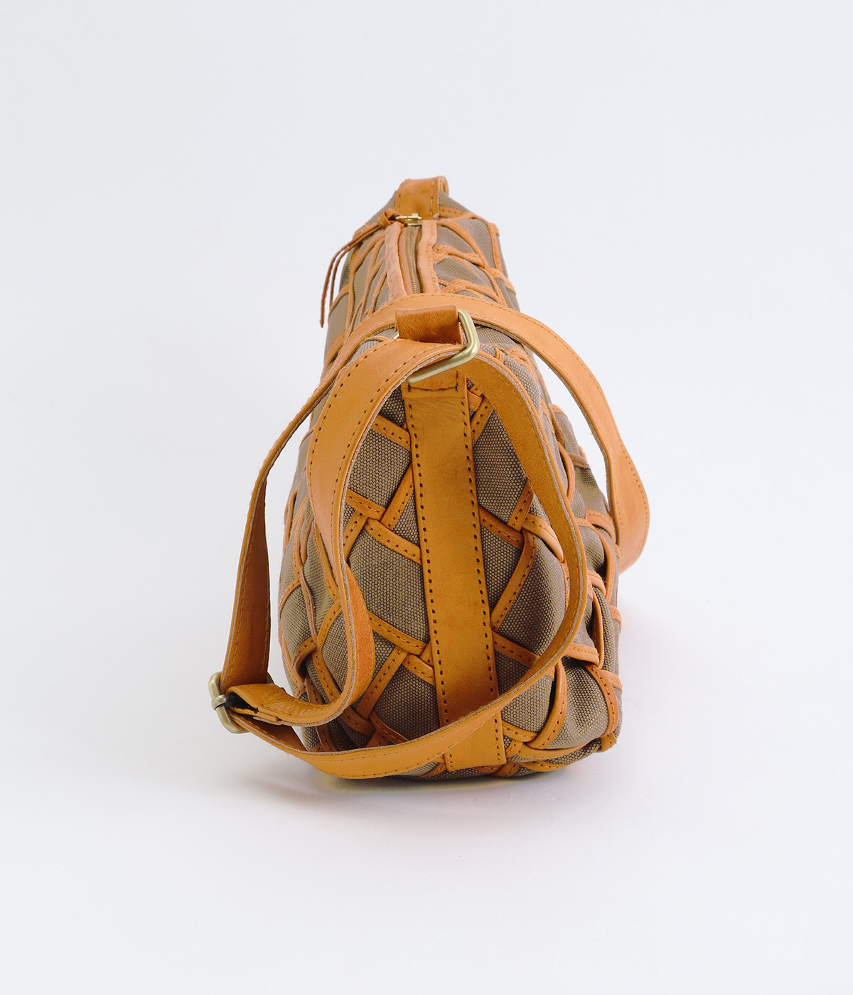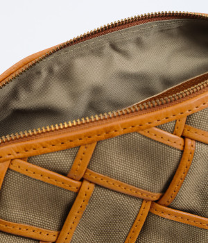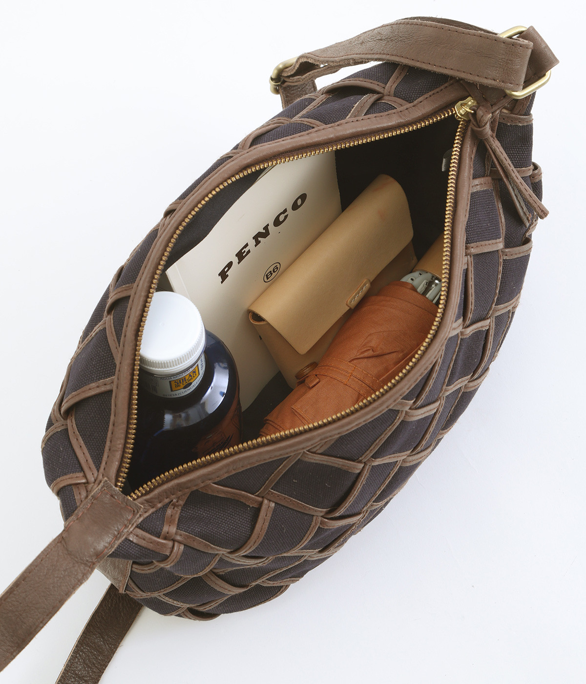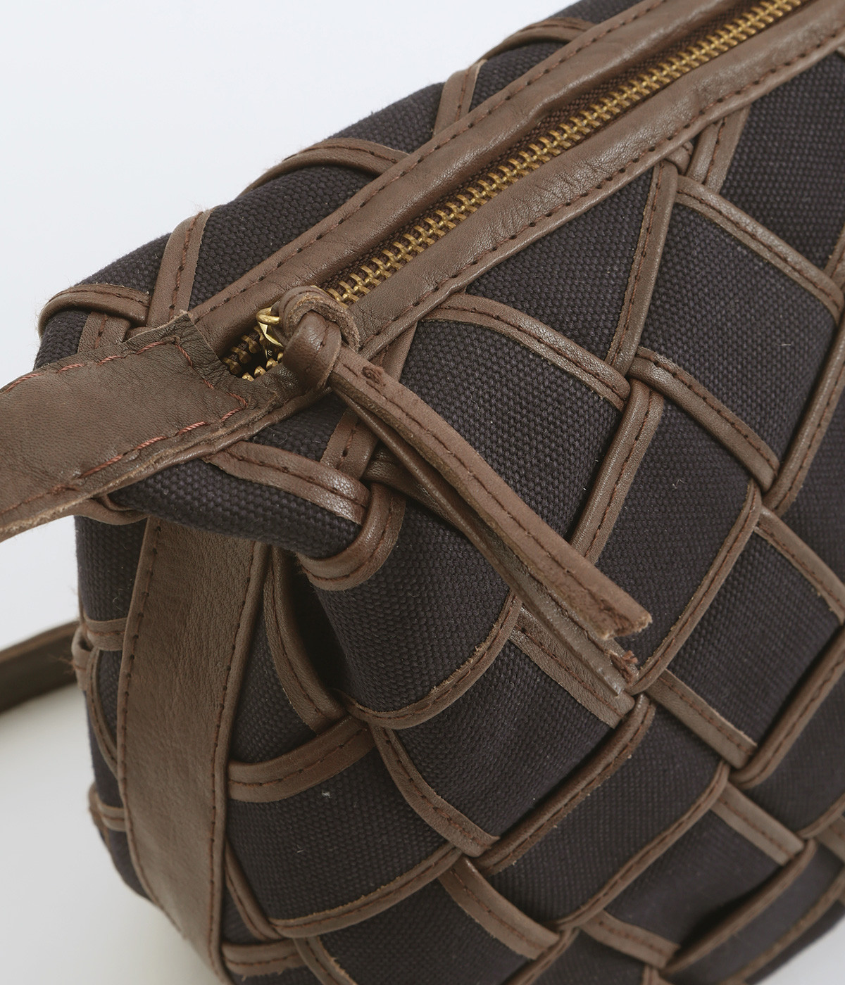 しっかりとしたコットンキャンバスを牛革でトリミングし、メッシュ状に編み立て。キャンバスのナチュラルさと、レザーの落ち着いた印象をあわせ持っています。ほのかにツヤのあるレザーが品のいい仕上がりです。