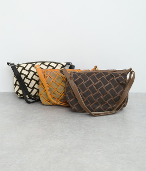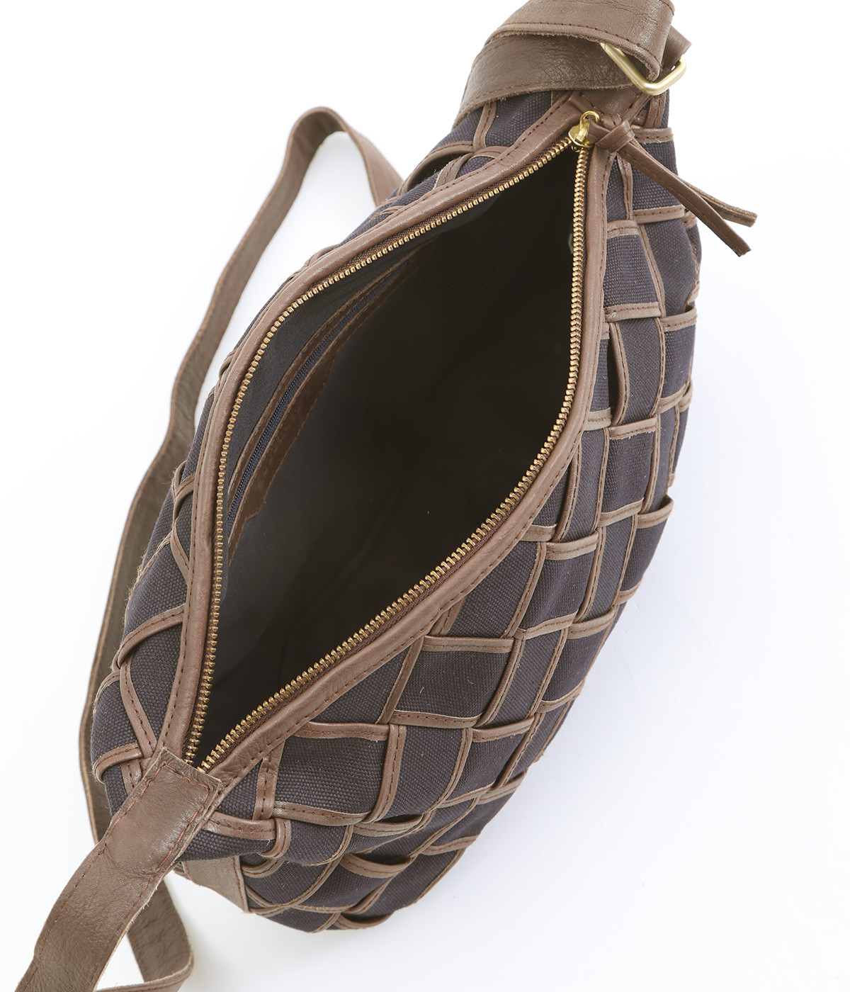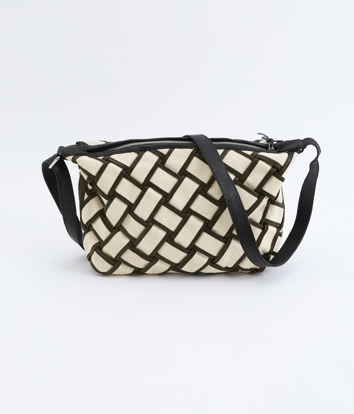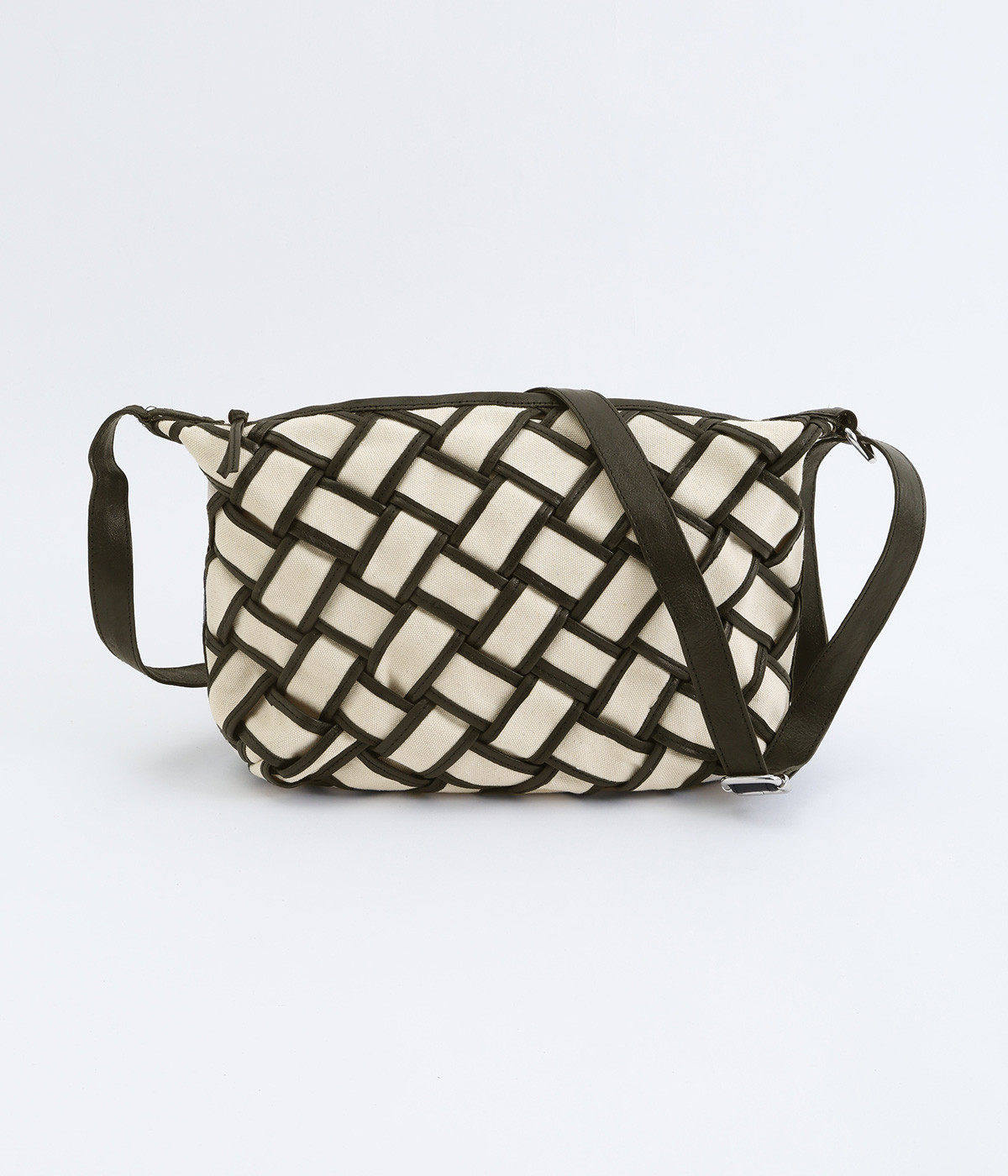 しっかりとしたコットンキャンバスを牛革でトリミングし、メッシュ状に編み立て。キャンバスのナチュラルさと、レザーの落ち着いた印象をあわせ持っています。ほのかにツヤのあるレザーが品のいい仕上がりです。