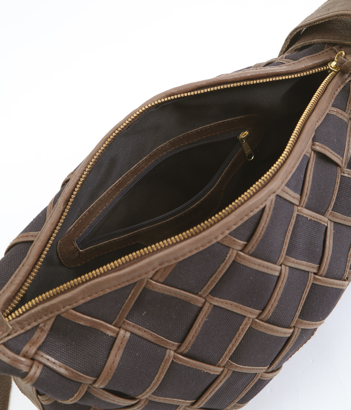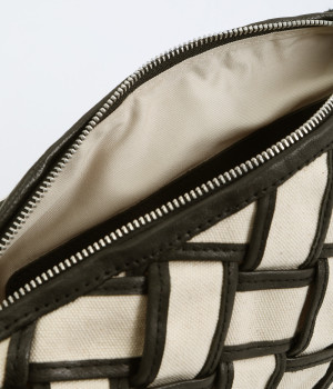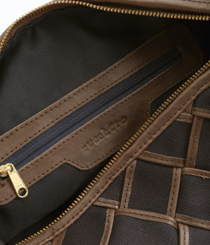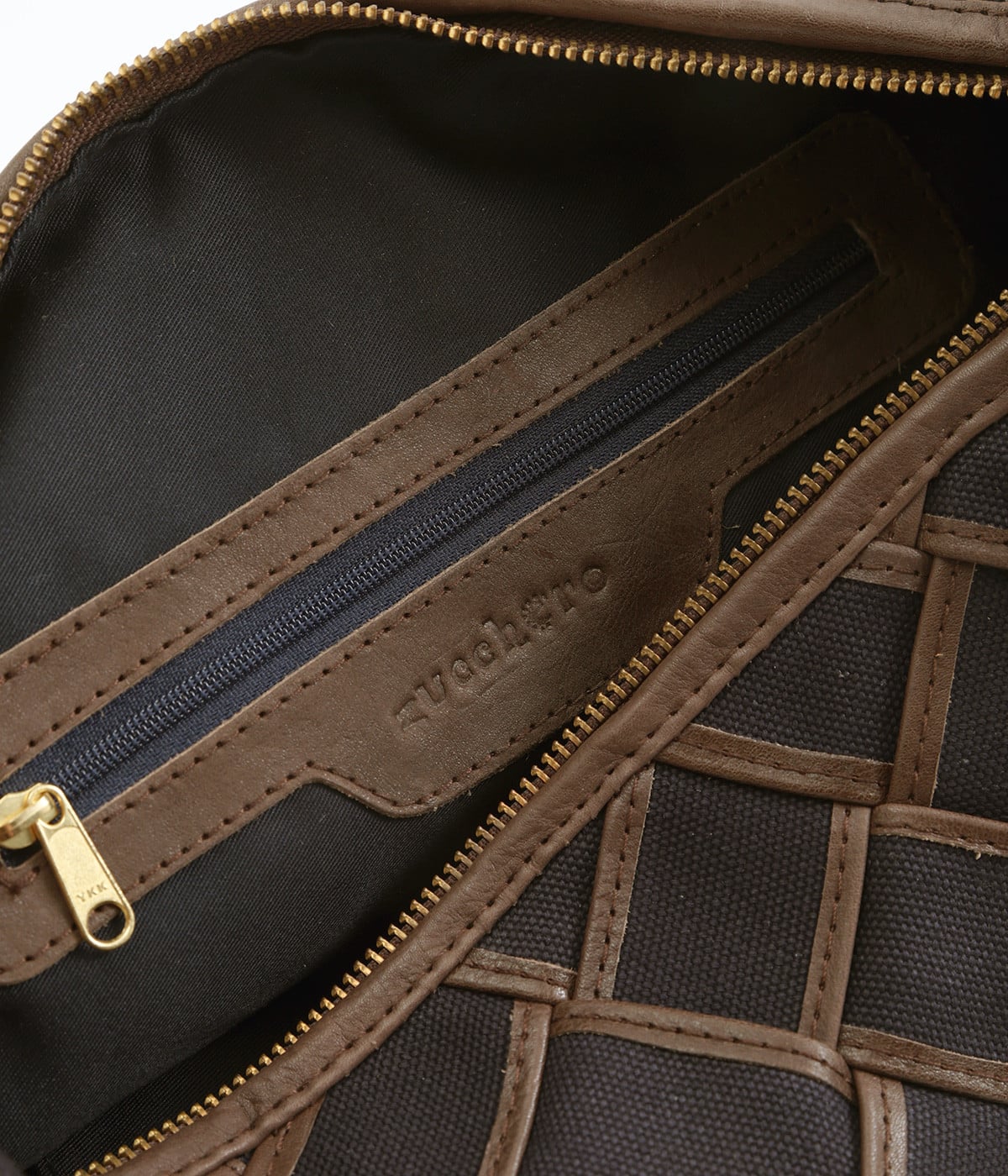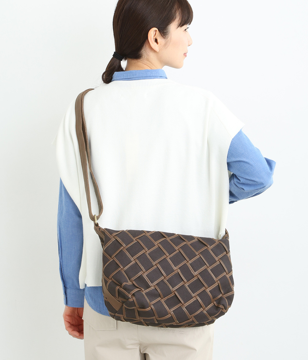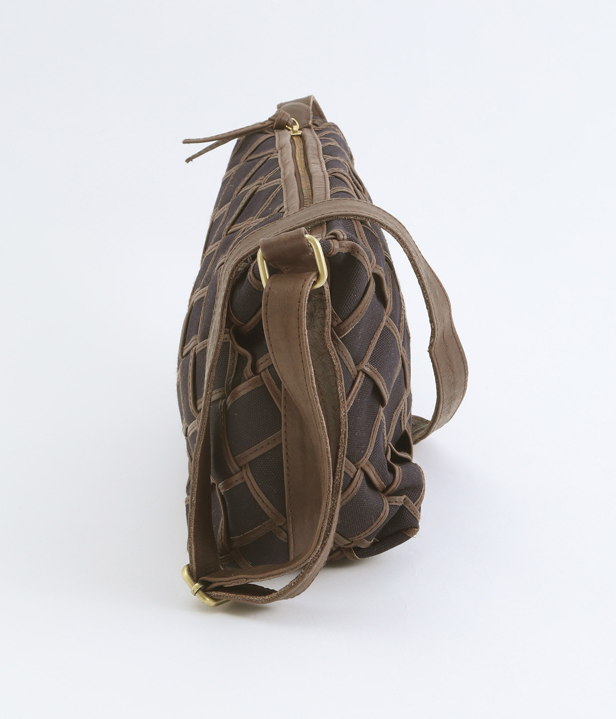 しっかりとしたコットンキャンバスを牛革でトリミングし、メッシュ状に編み立て。キャンバスのナチュラルさと、レザーの落ち着いた印象をあわせ持っています。ほのかにツヤのあるレザーが品のいい仕上がりです。